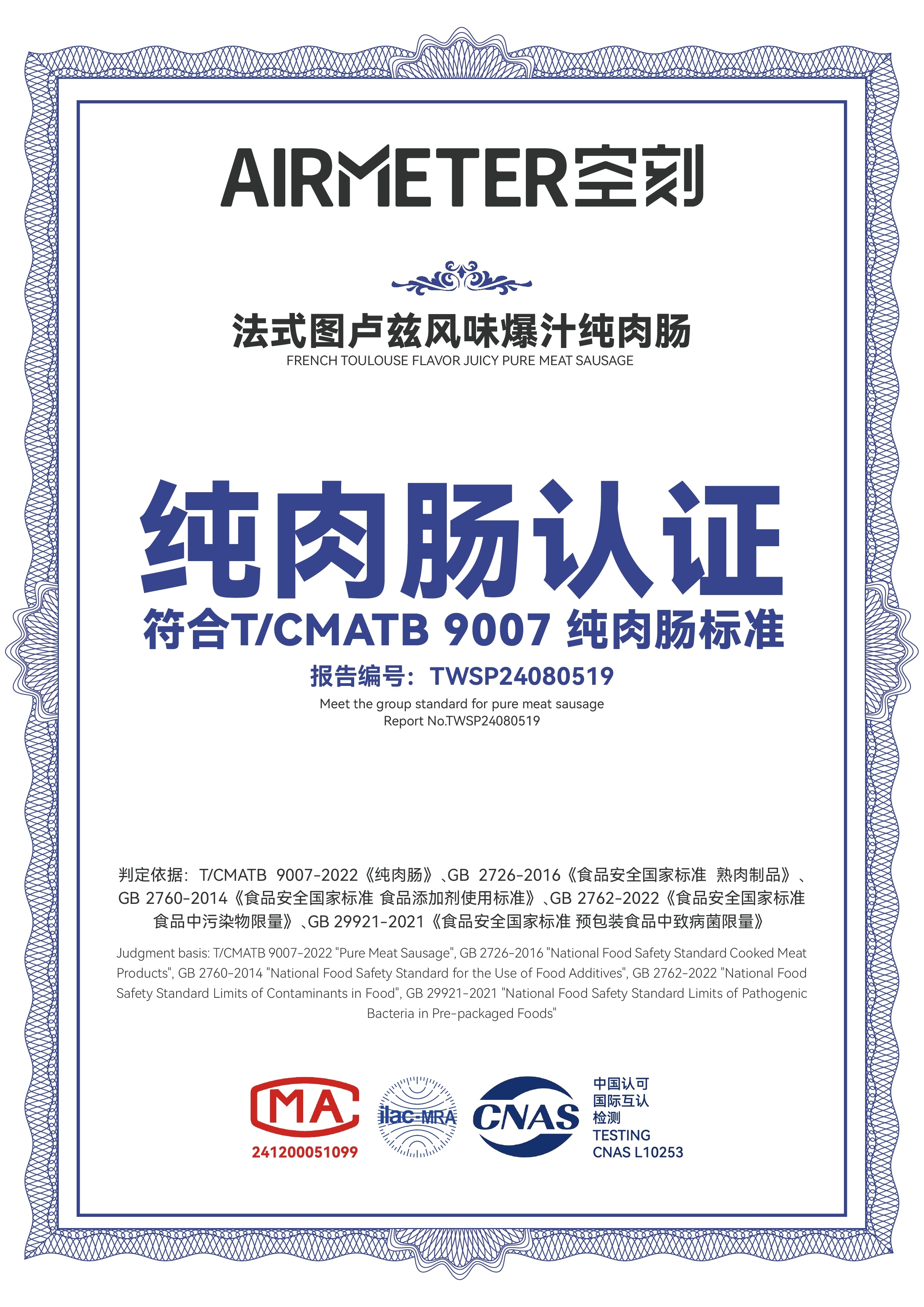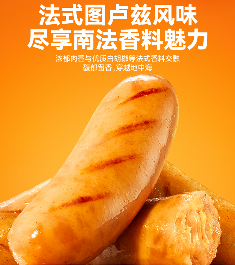 【品名】:法式图卢兹风味爆汁纯肉肠