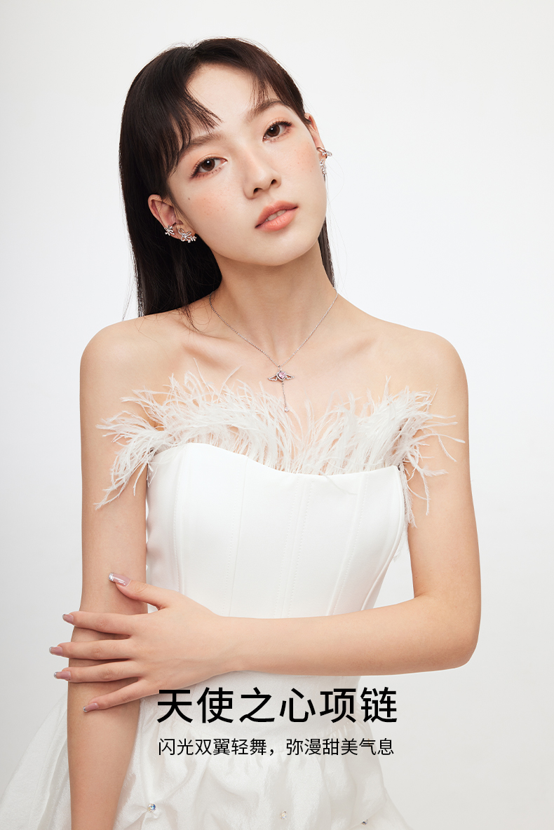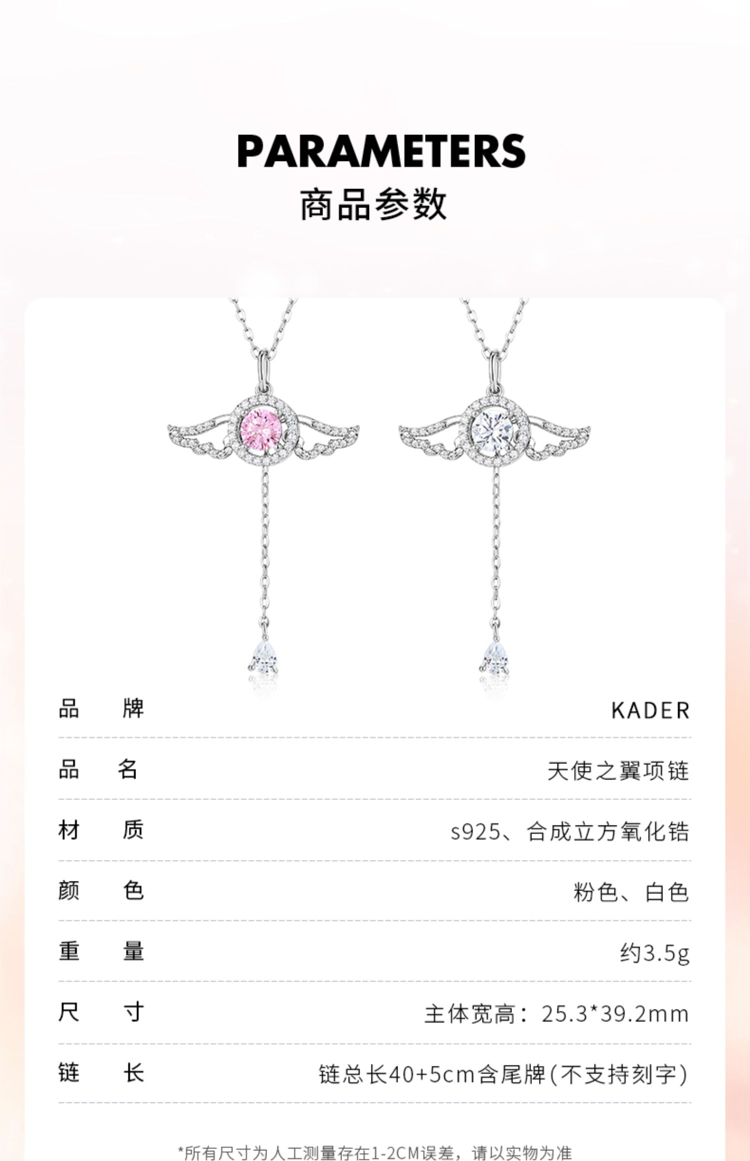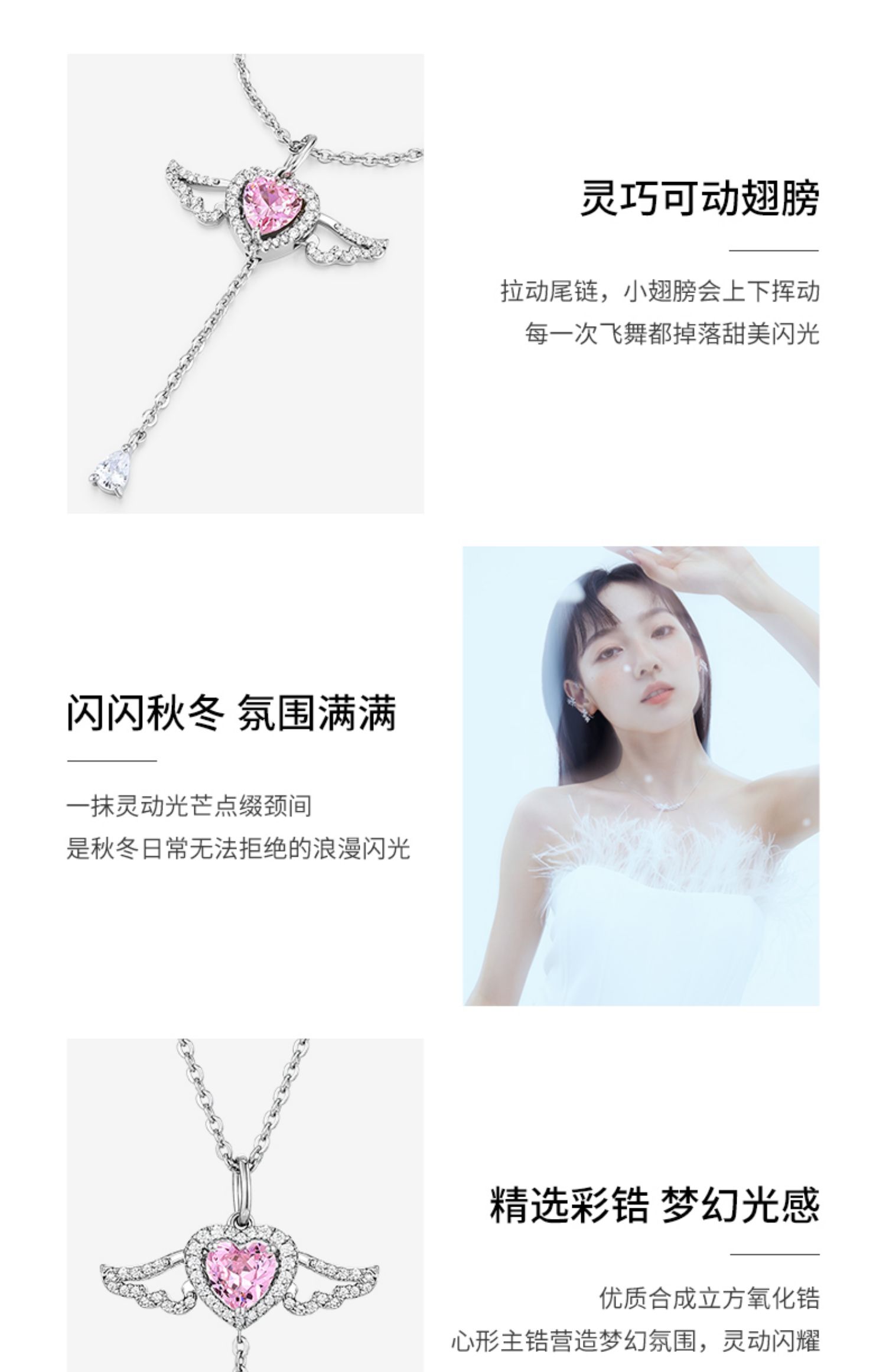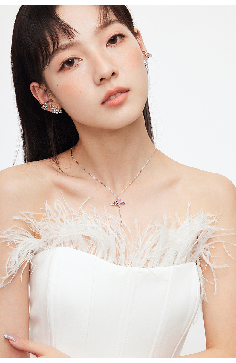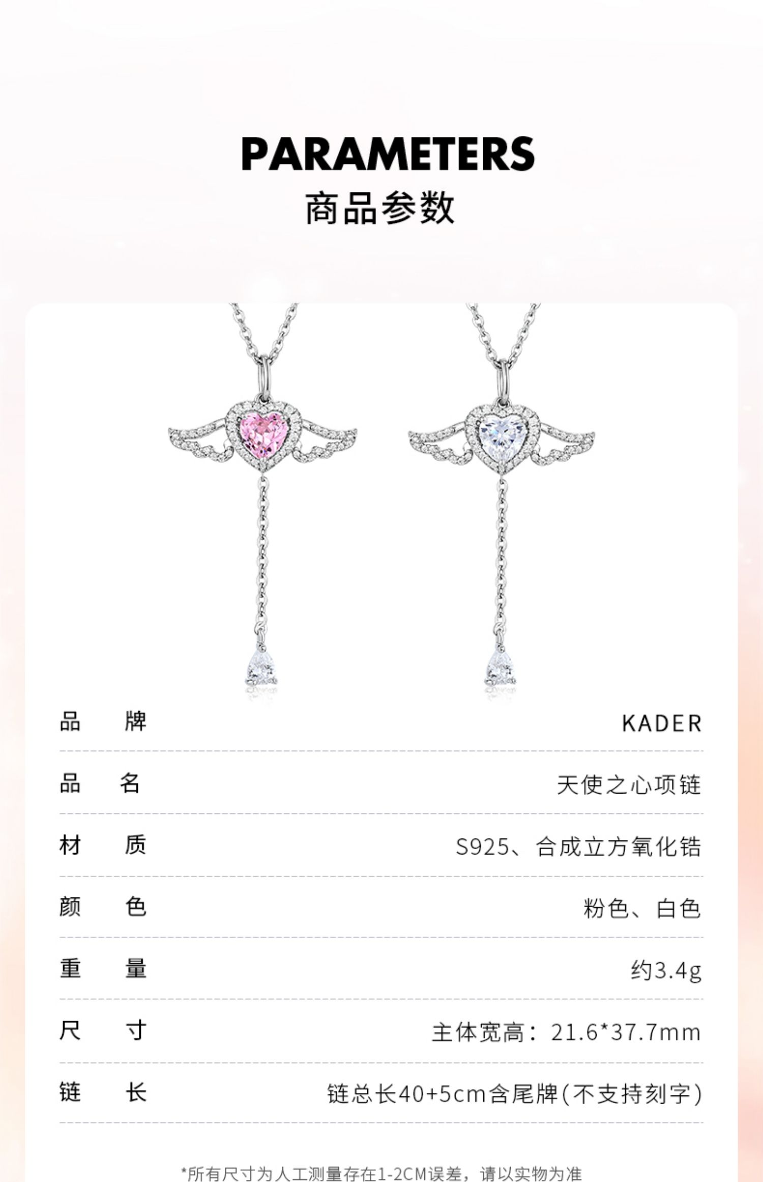 卡蒂罗天使之翼/丘比特之心项链女纯银轻奢小众饰品爱心锁骨毛衣链送女友礼物