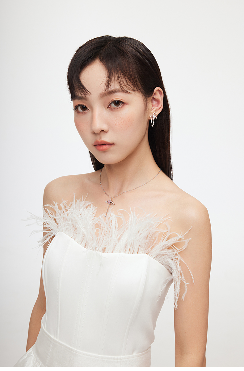 KADER卡蒂罗 缎带结耳钉 925银经典蝴蝶结造型设计甜美耳饰 璀璨闪耀甜美可爱配饰梦幻精致 送女生闺蜜礼物