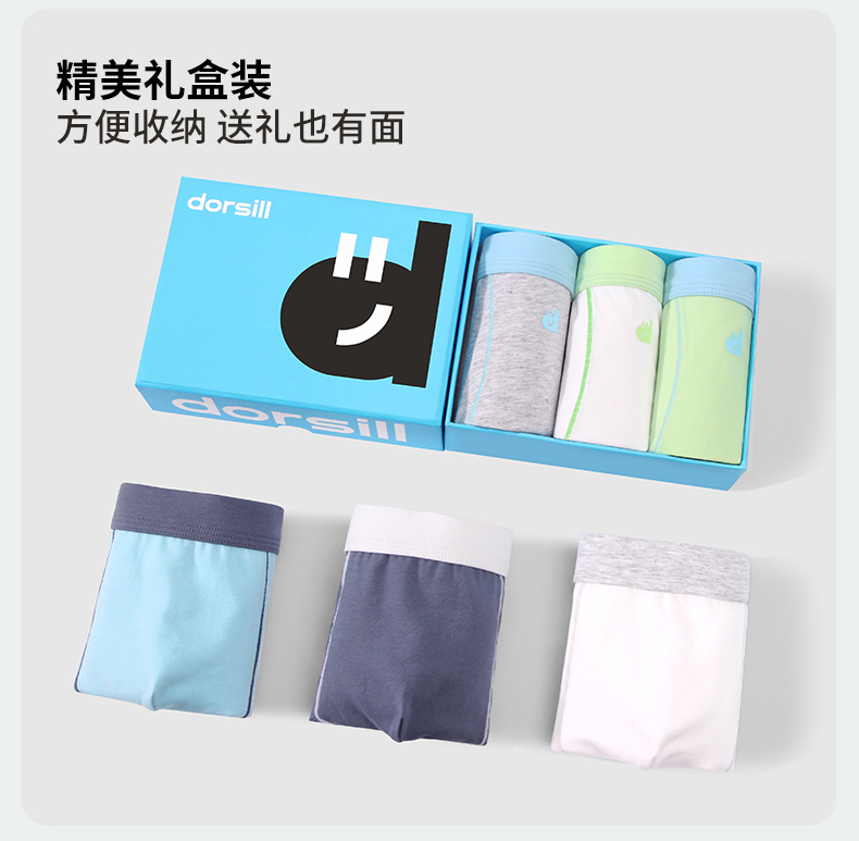 朵熙儿新款儿童纯棉内裤3条礼盒装 男女童小孩宝宝短裤头A类
