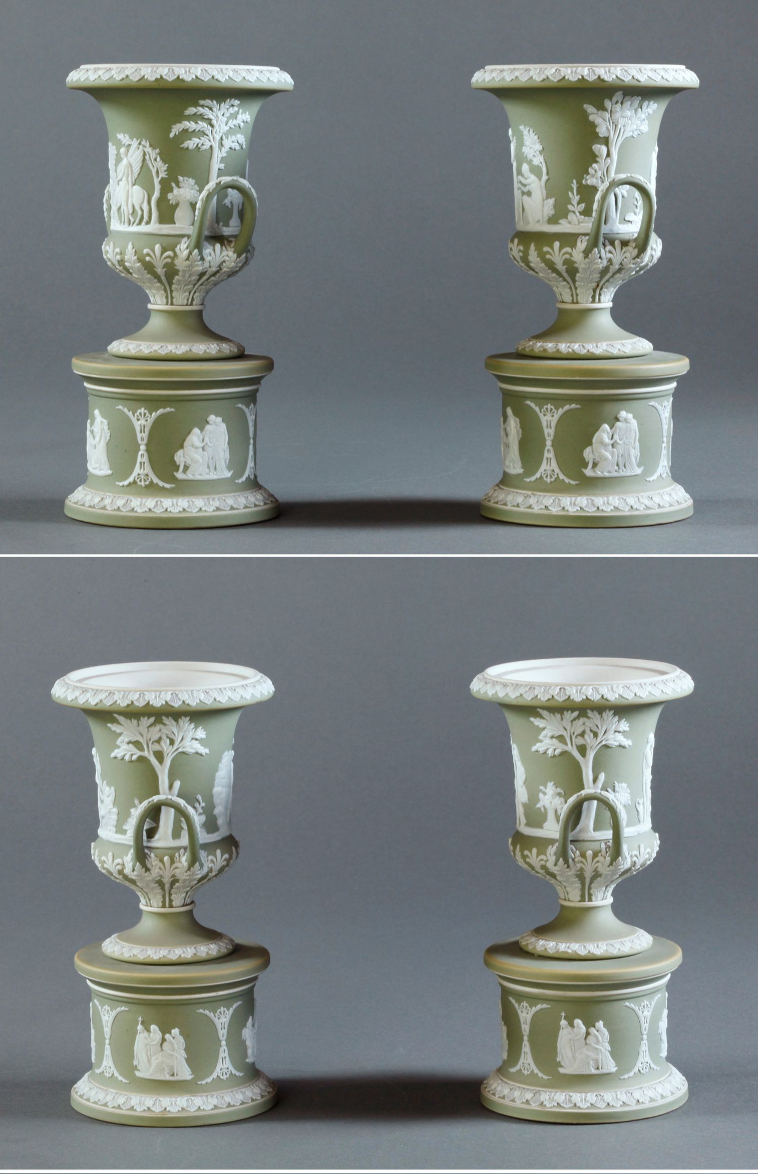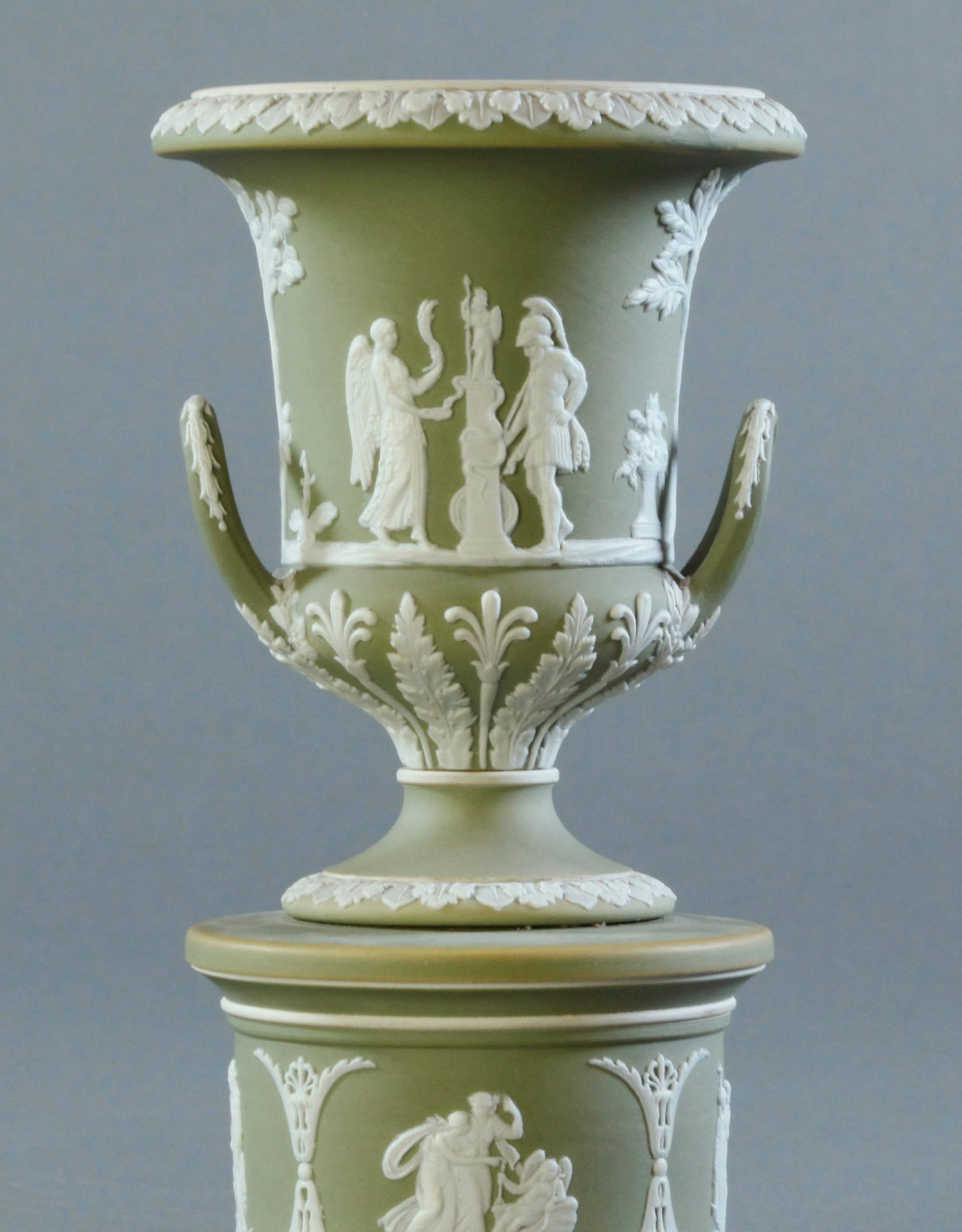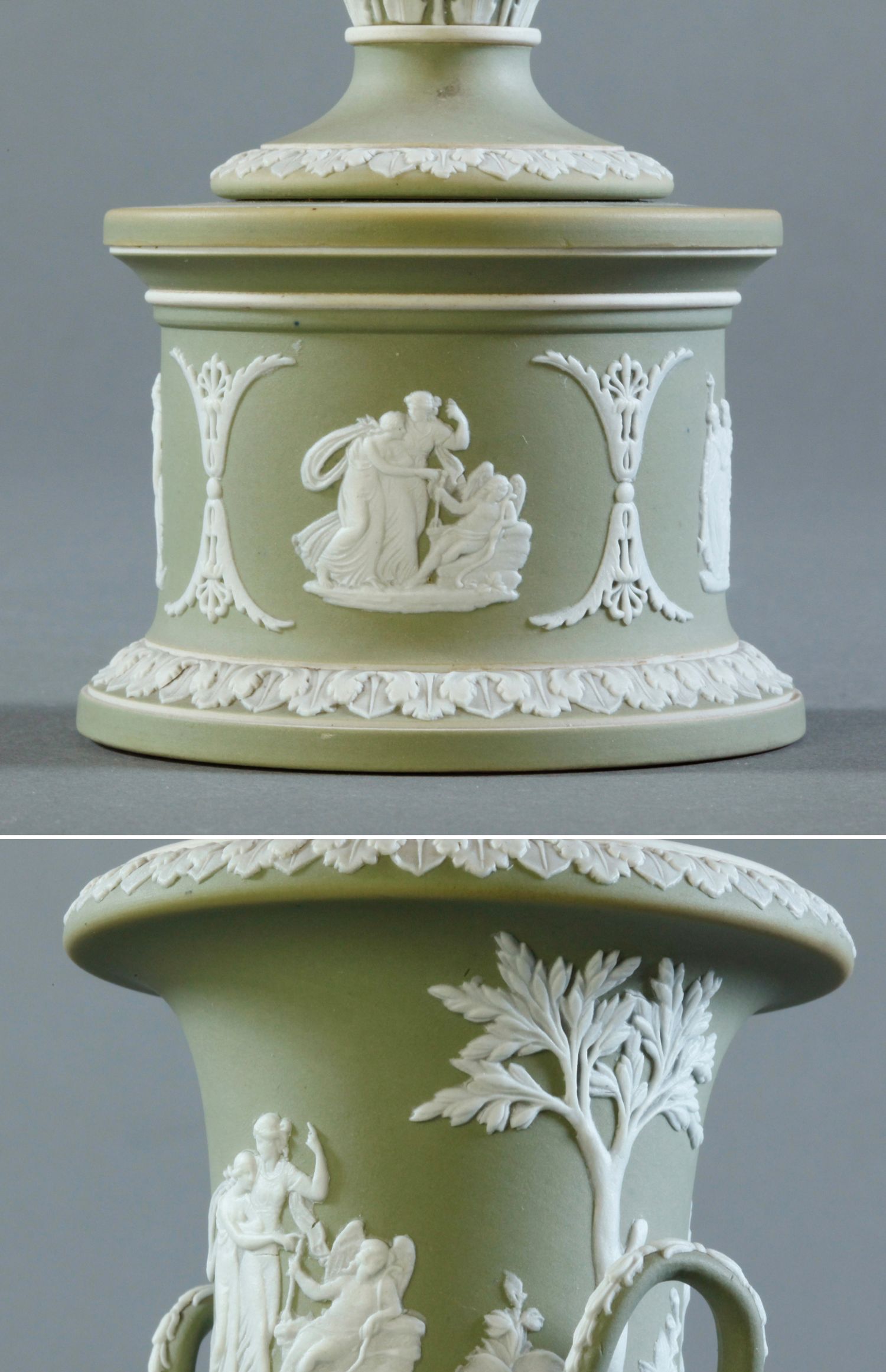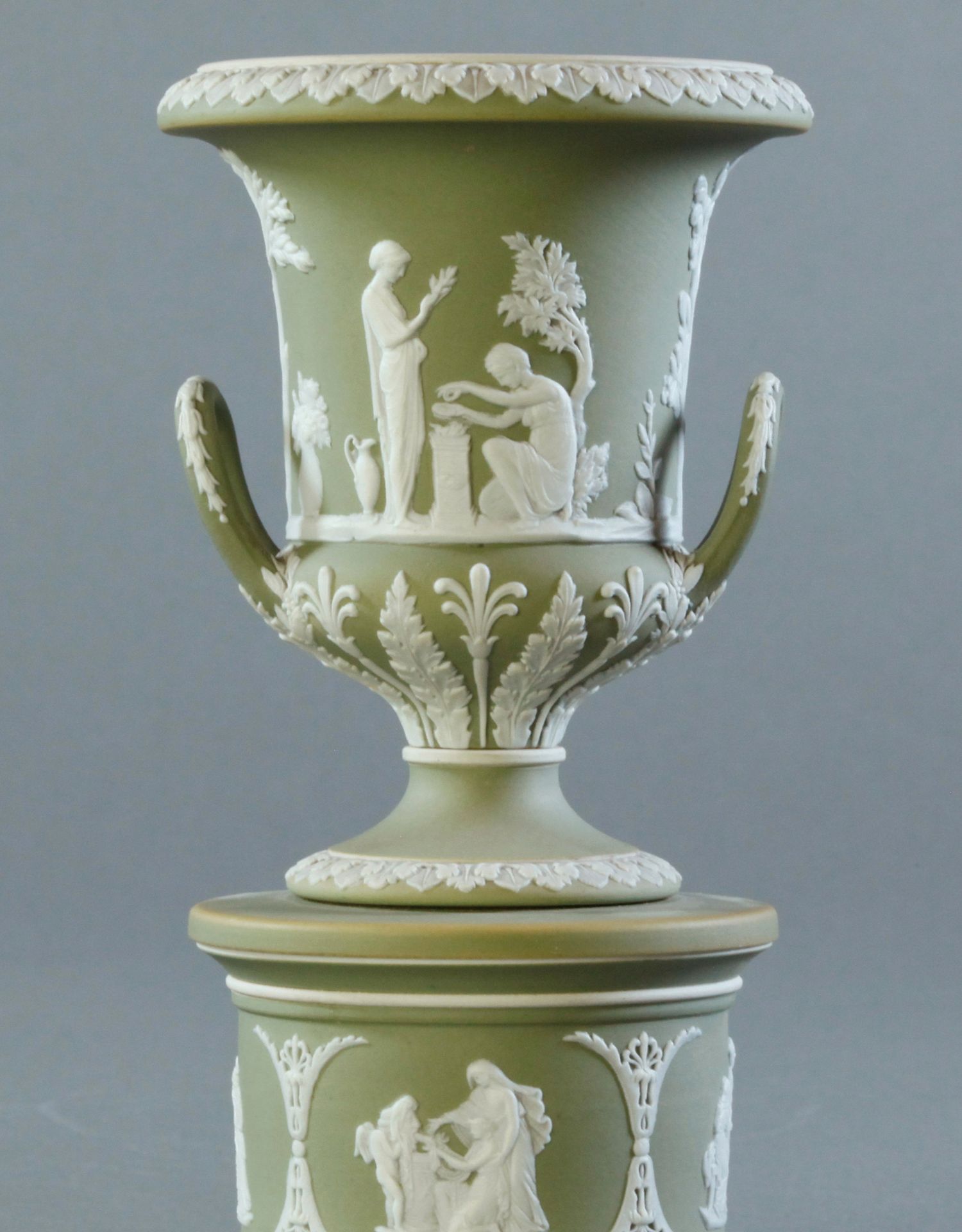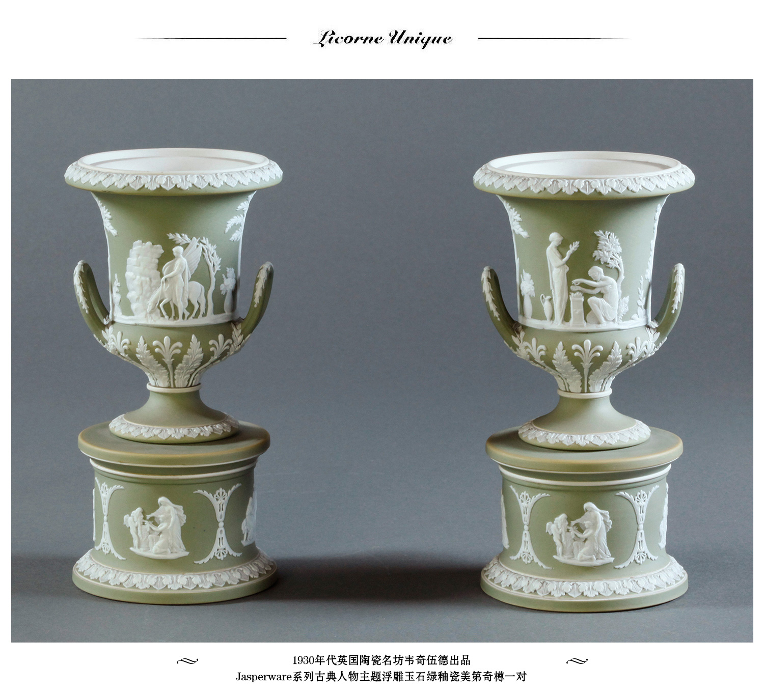 独角鹿西洋古董陶瓷名坊韦奇伍德古典人物浮雕玉石绿釉瓷美第奇樽