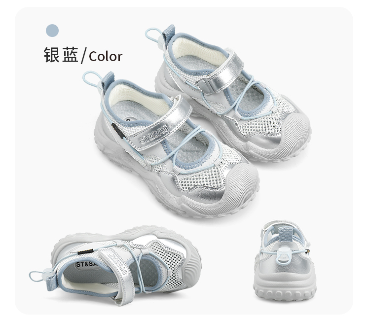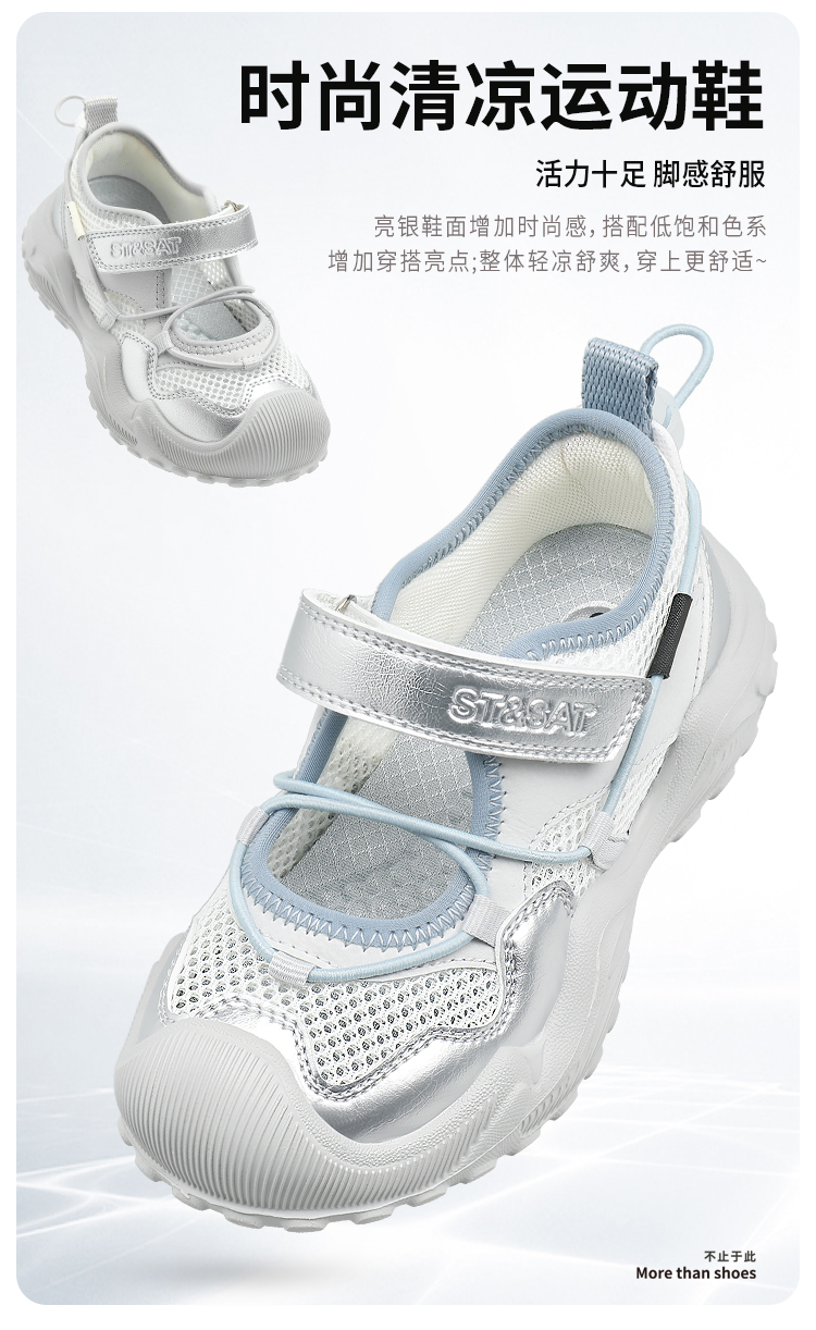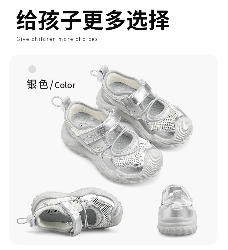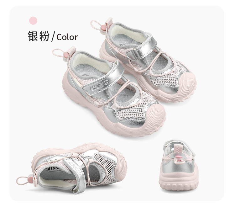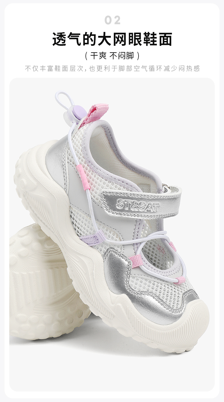 【童鞋】星期六时髦幻银网面透气男女童包头运动鞋SSD2191L5A