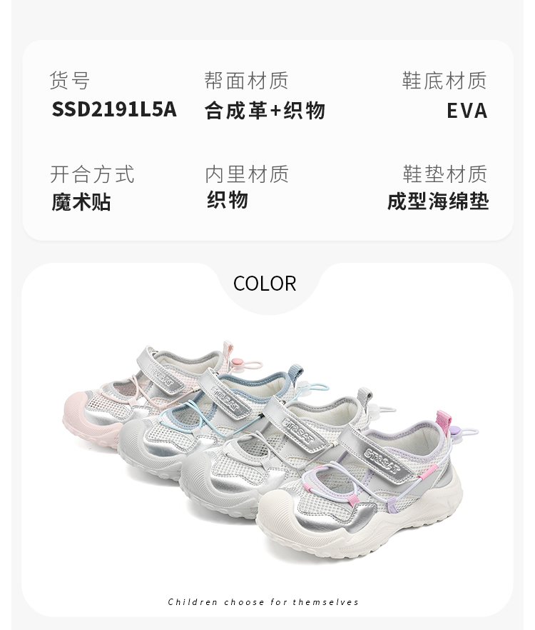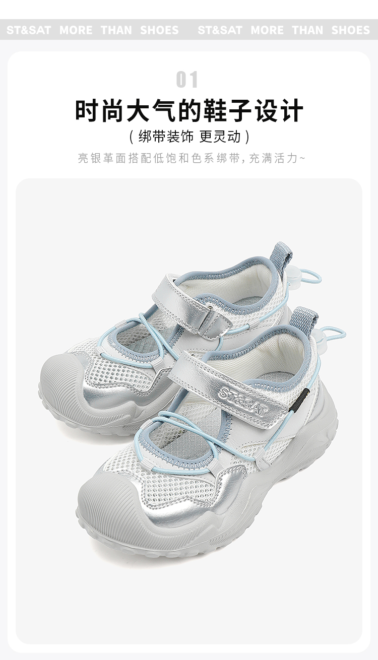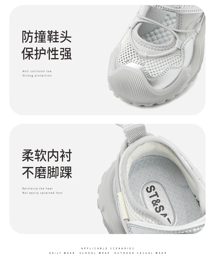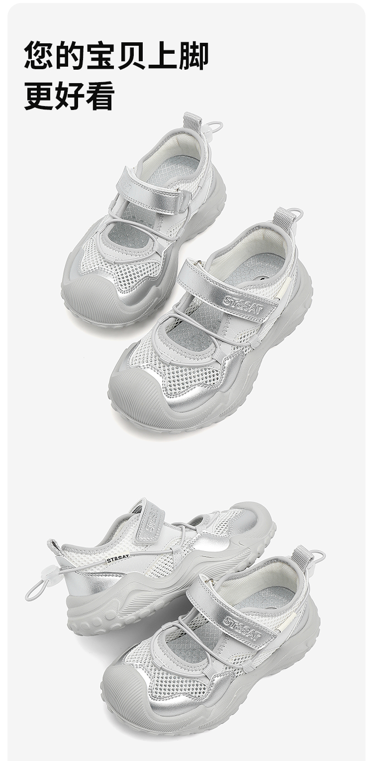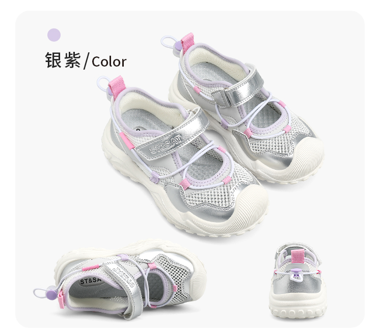 【童鞋】星期六时髦幻银网面透气男女童包头运动鞋SSD2191L5A
