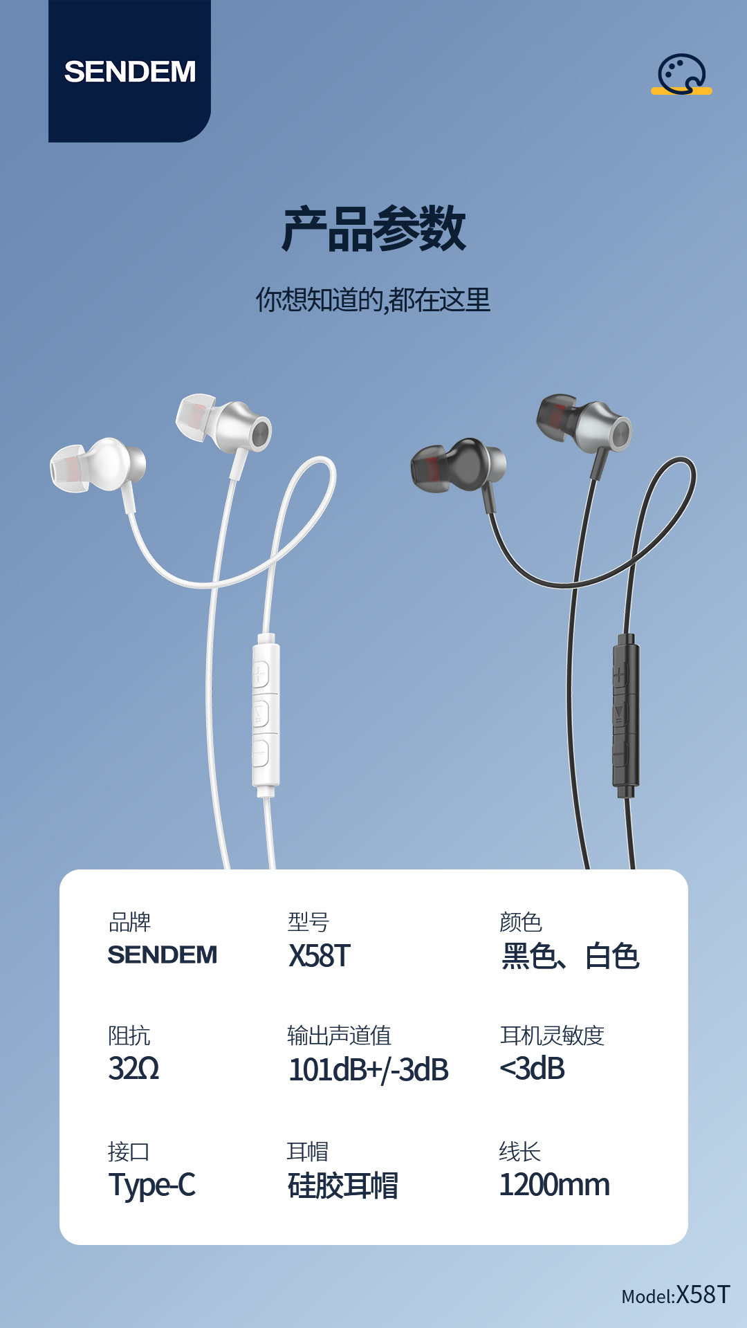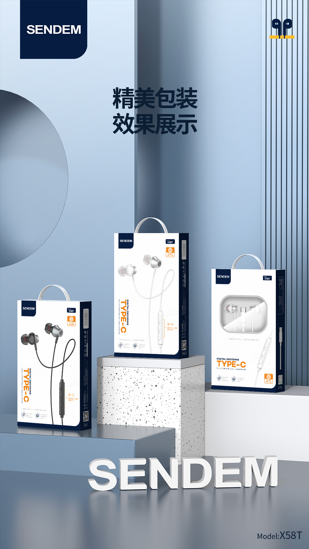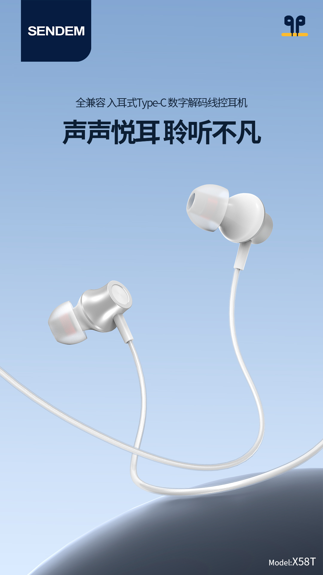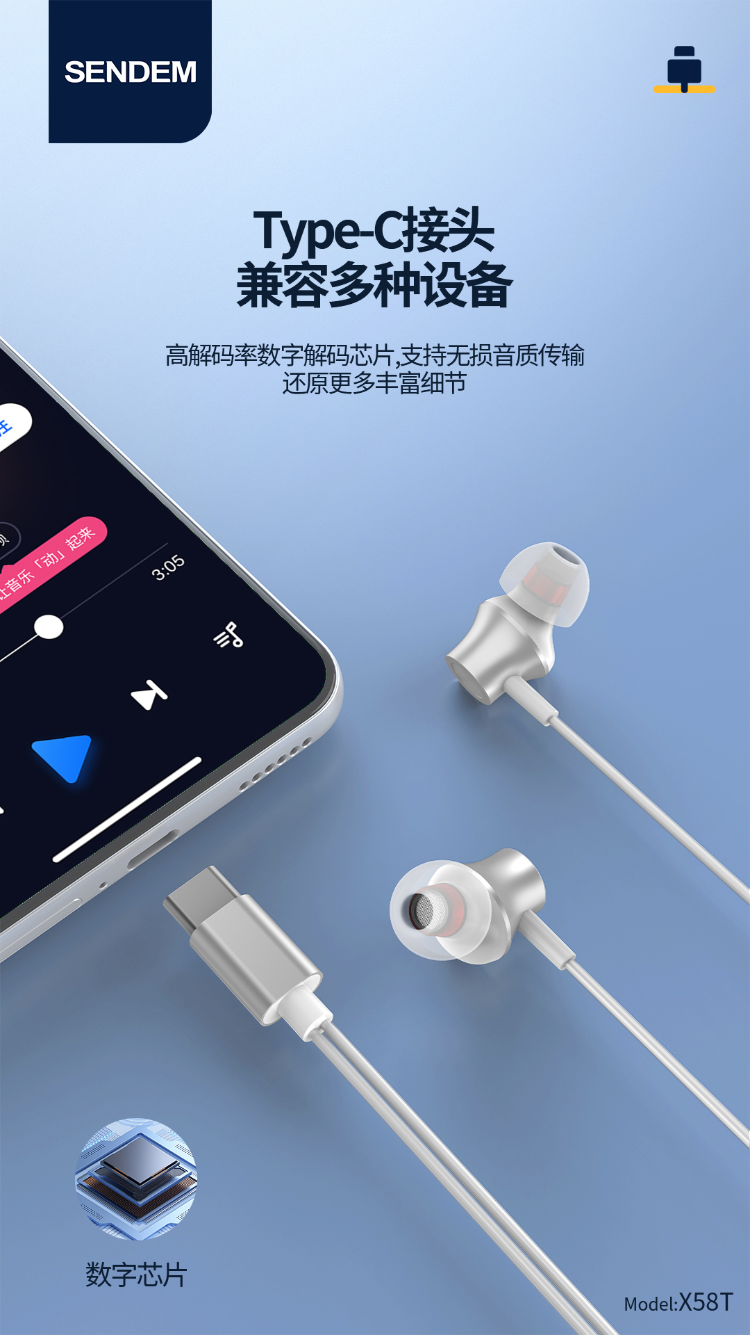 全兼容入耳式type-c耳机数字解码线控耳机x58t