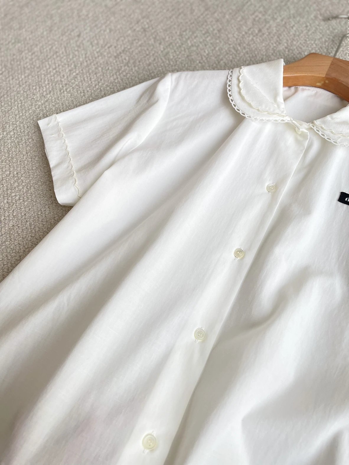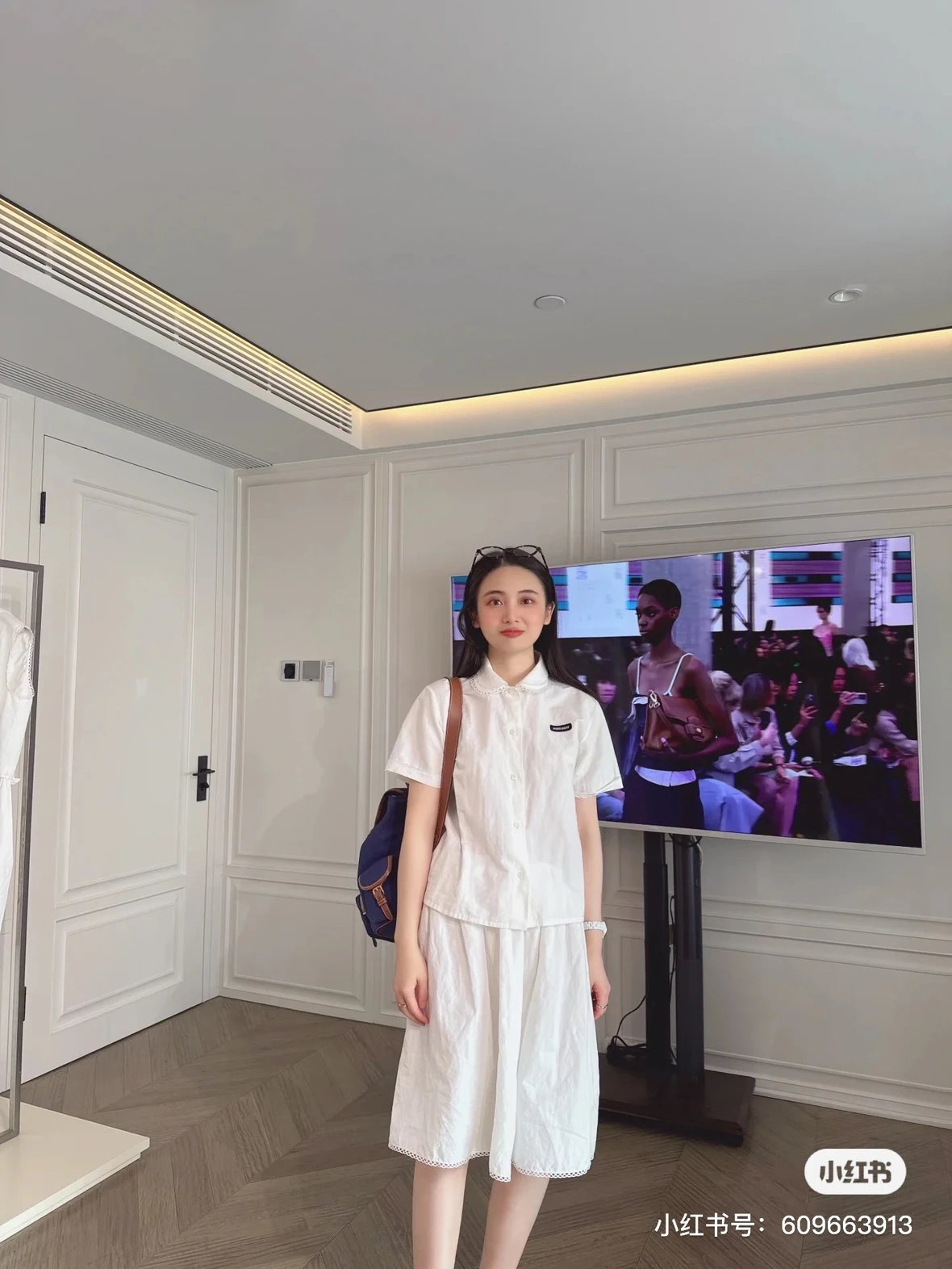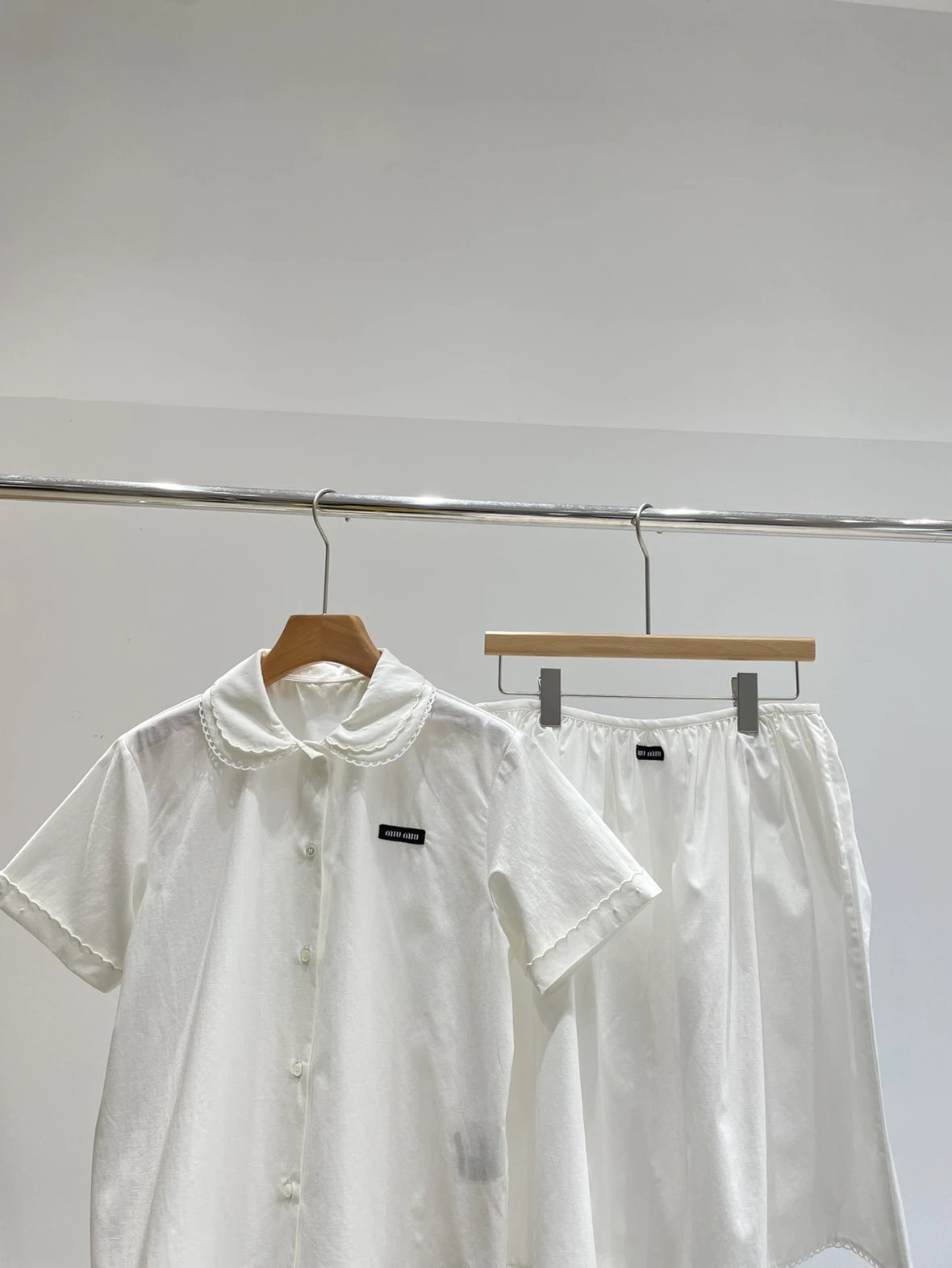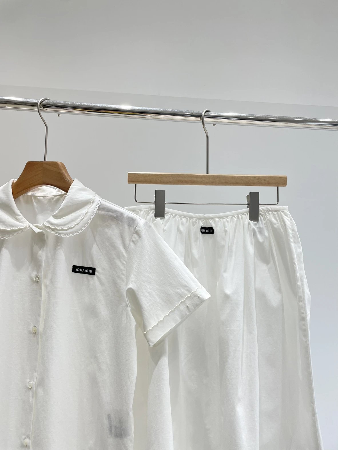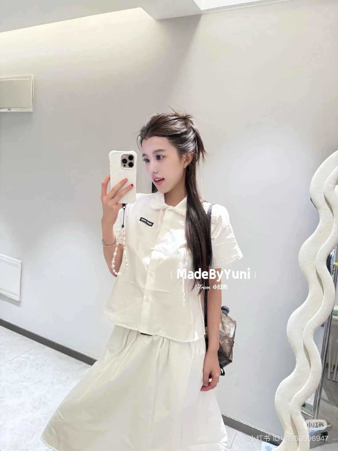 重磅推荐!miu花边学院风套装 蕾丝花边棉麻短袖衬衫+府绸竹节棉麻半裙