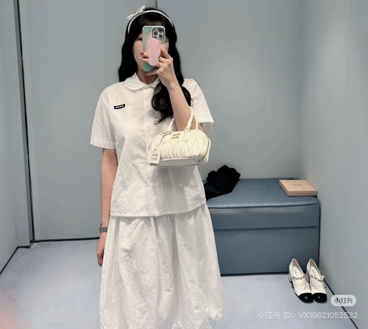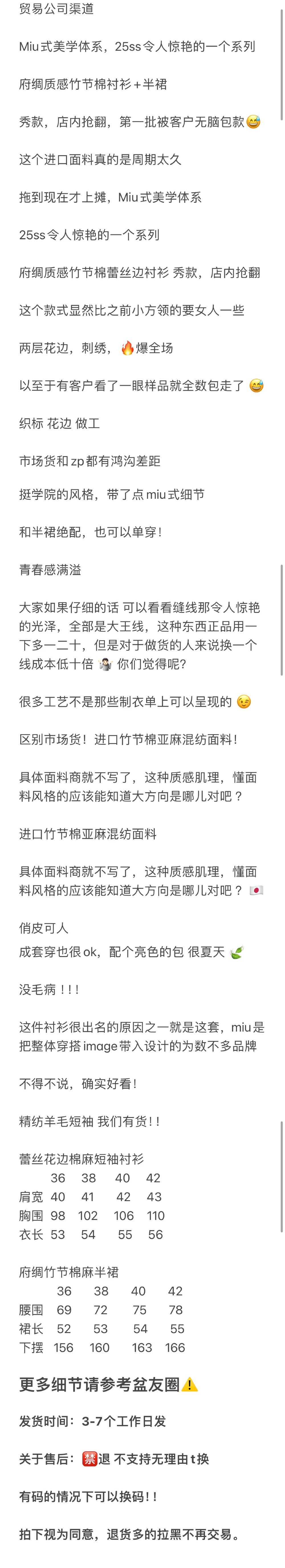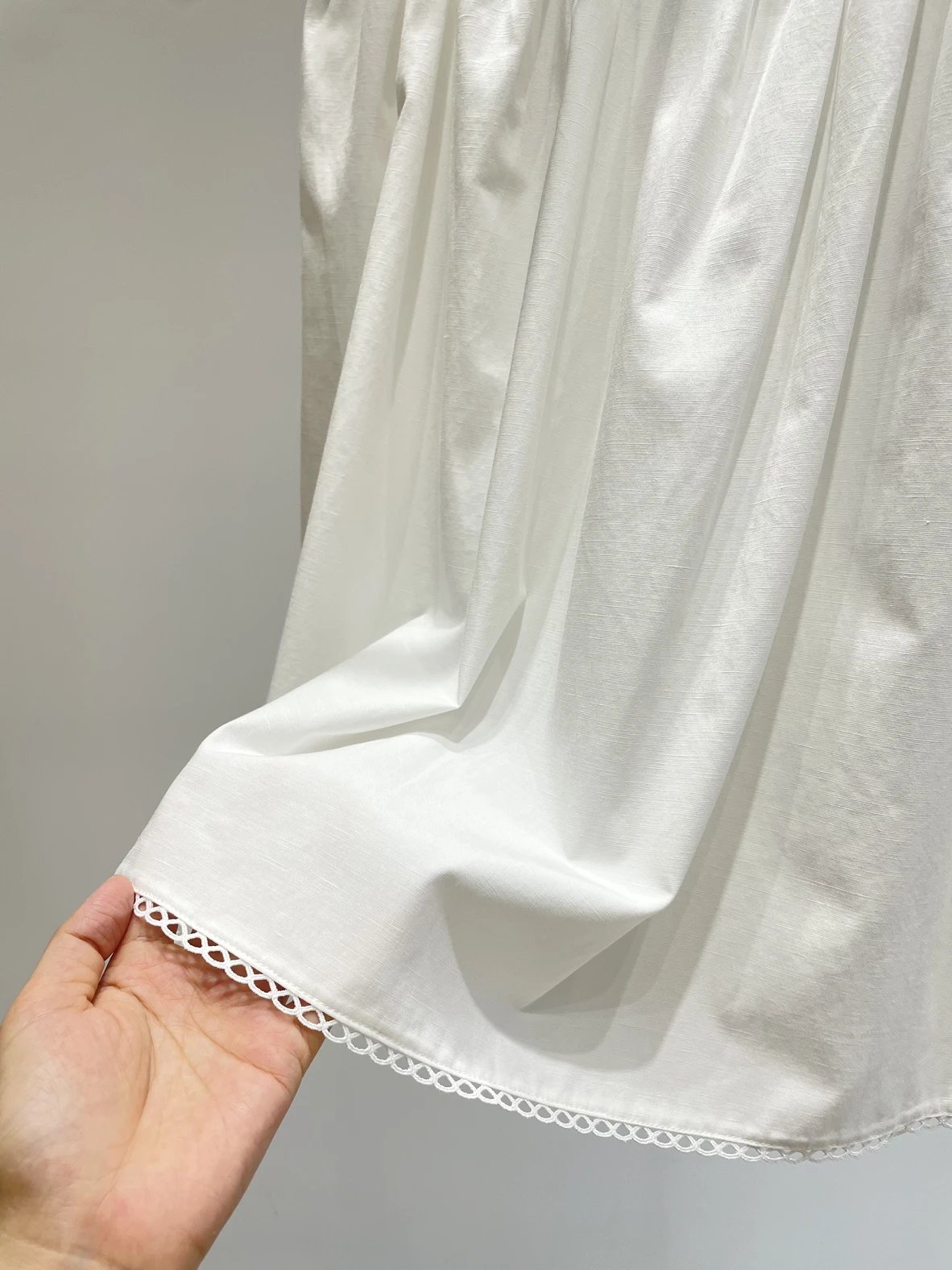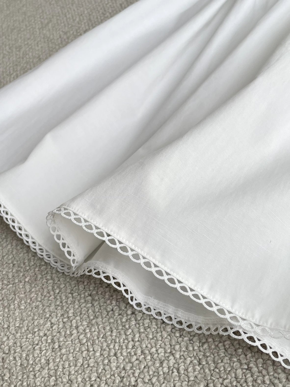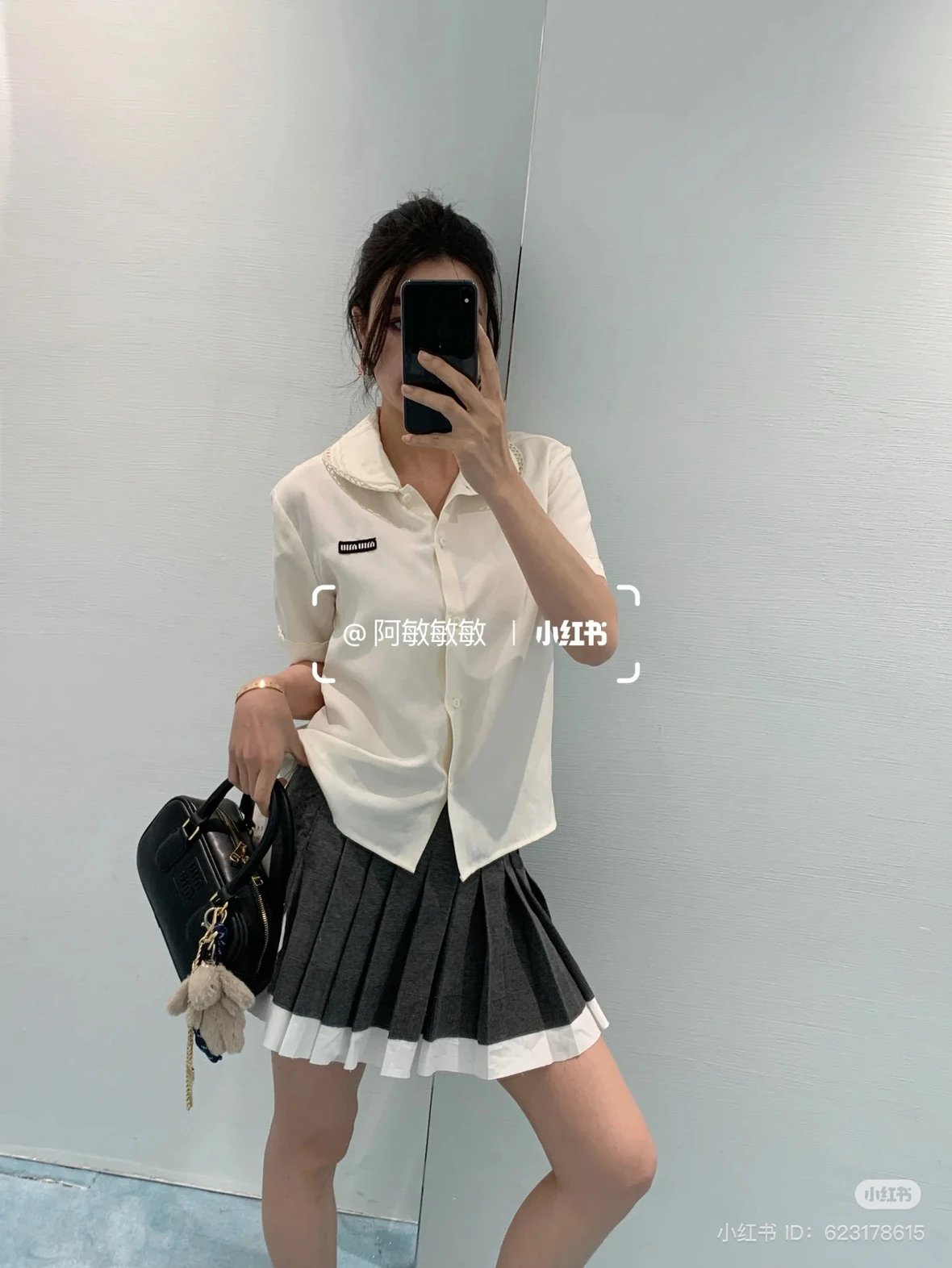 重磅推荐!miu花边学院风套装 蕾丝花边棉麻短袖衬衫+府绸竹节棉麻半裙