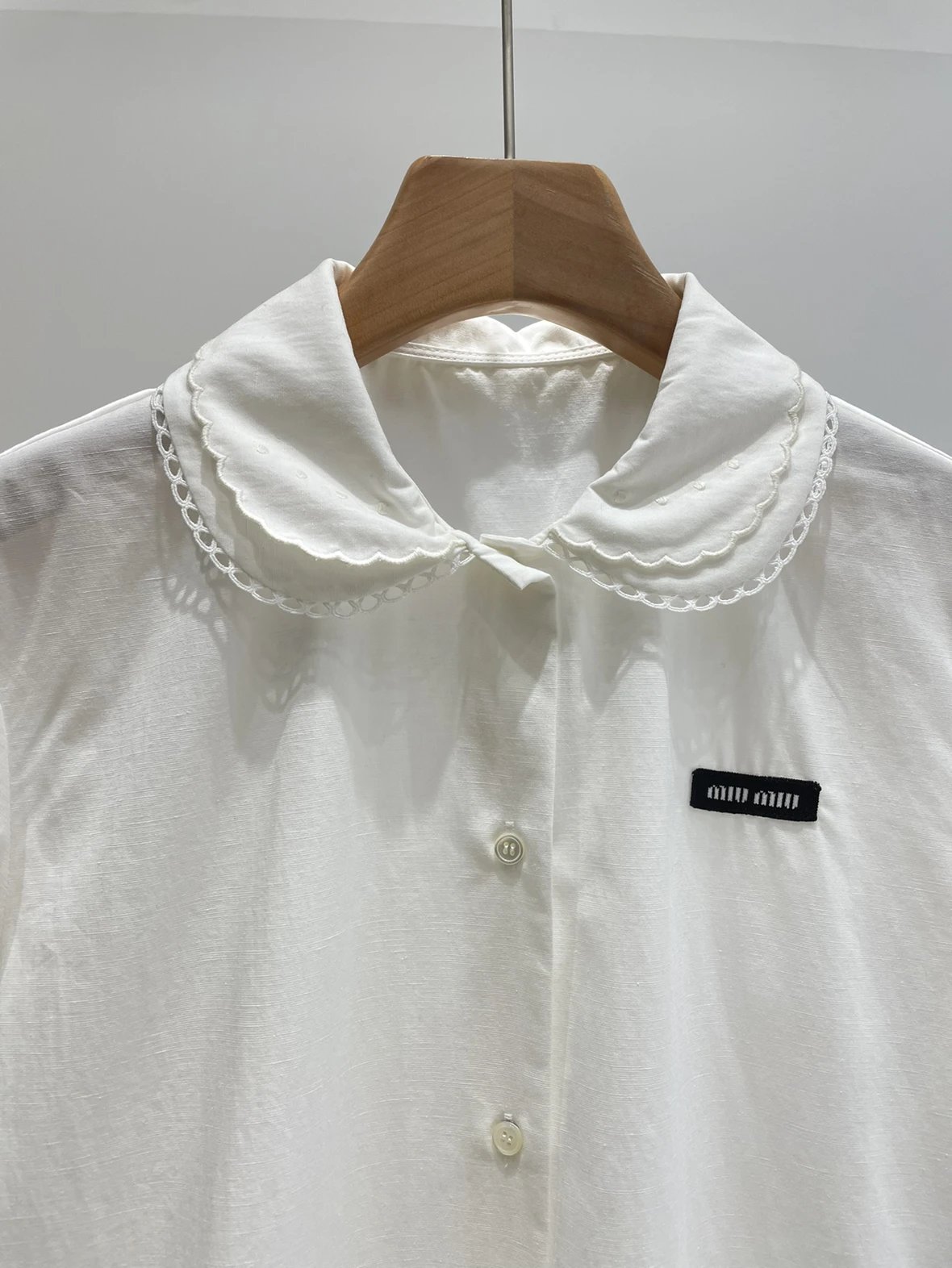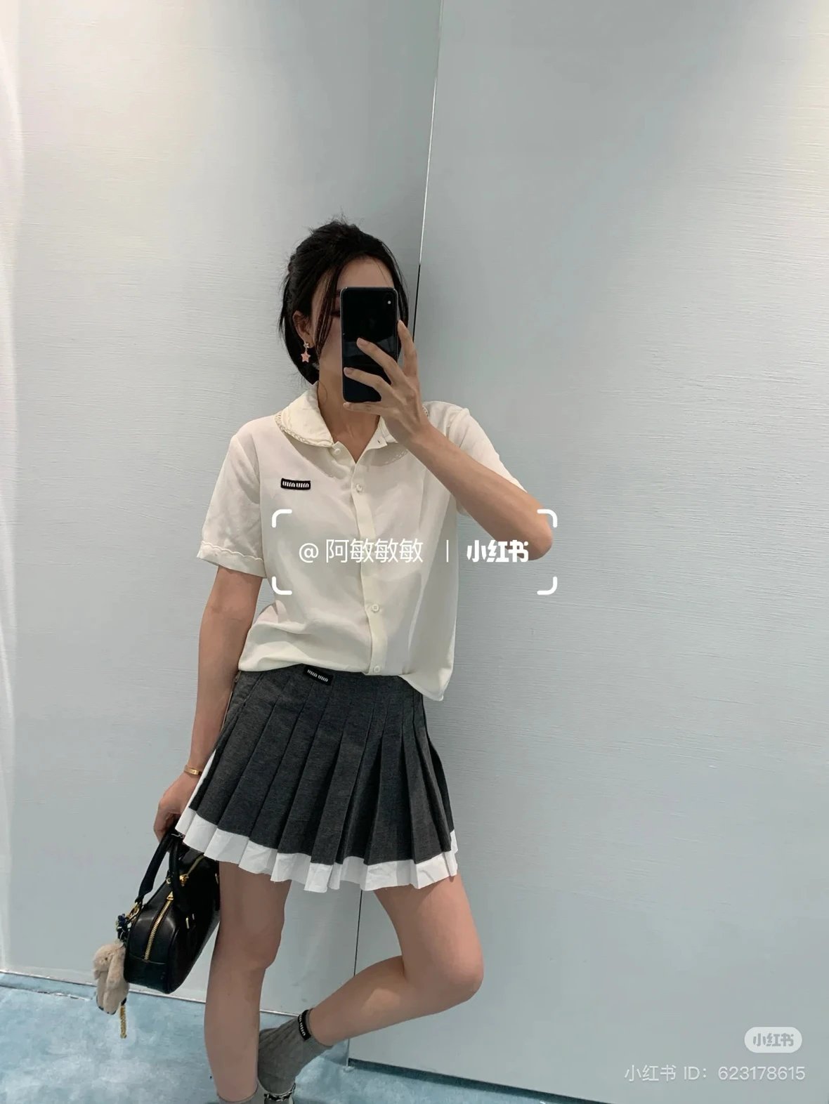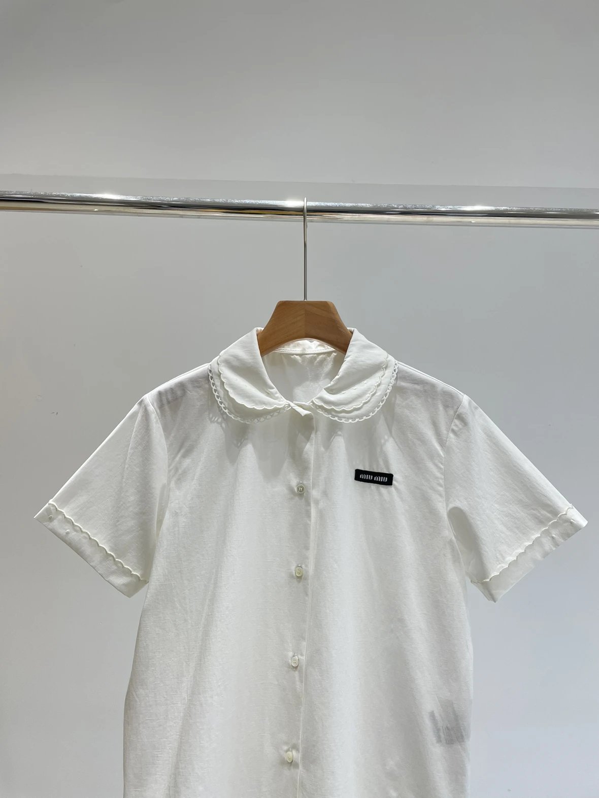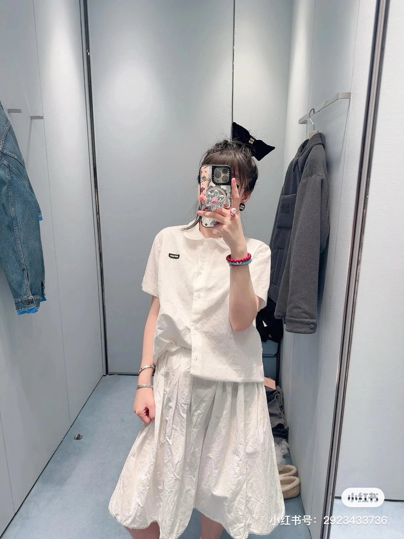 重磅推荐!miu花边学院风套装 蕾丝花边棉麻短袖衬衫+府绸竹节棉麻半裙