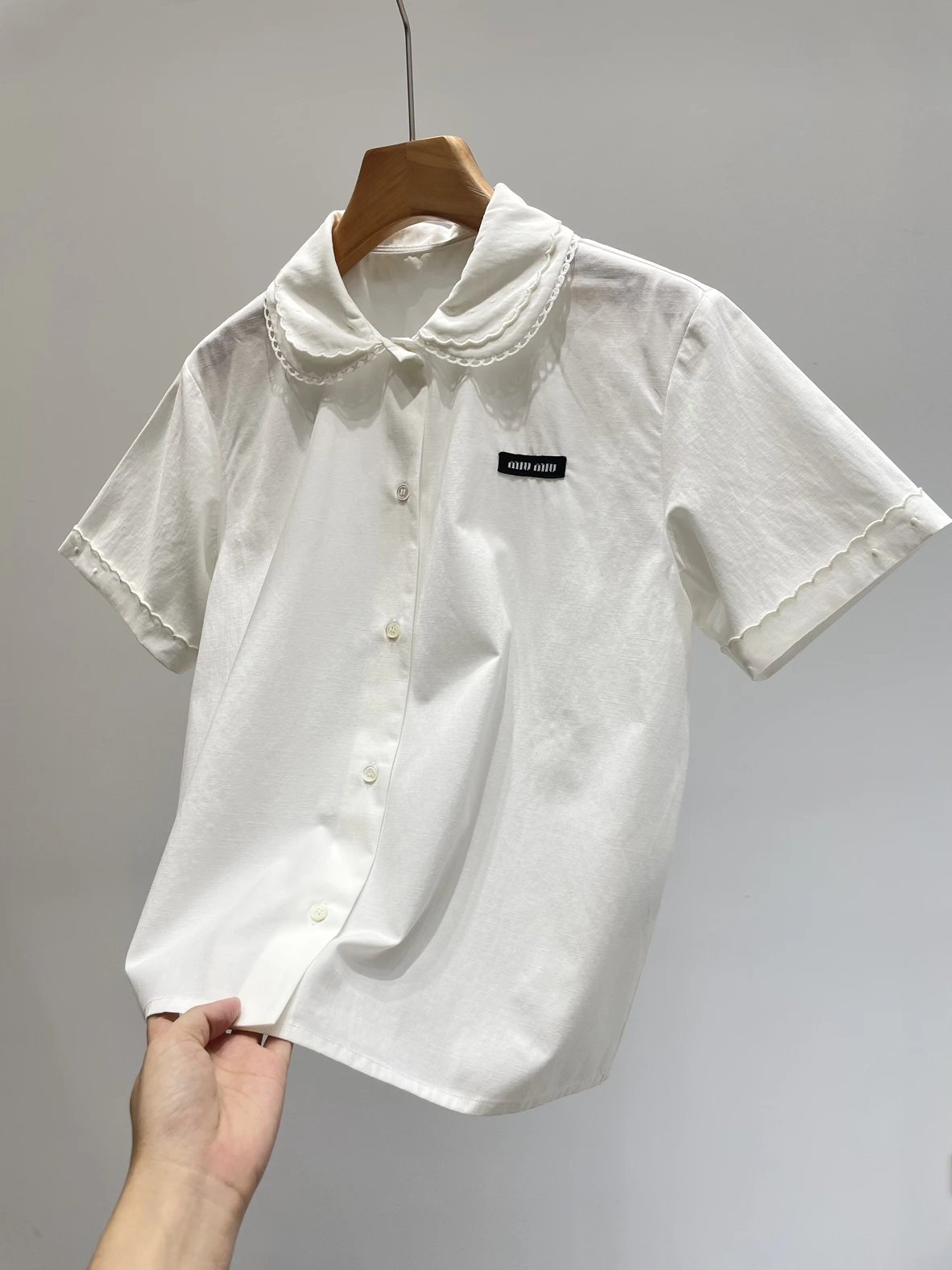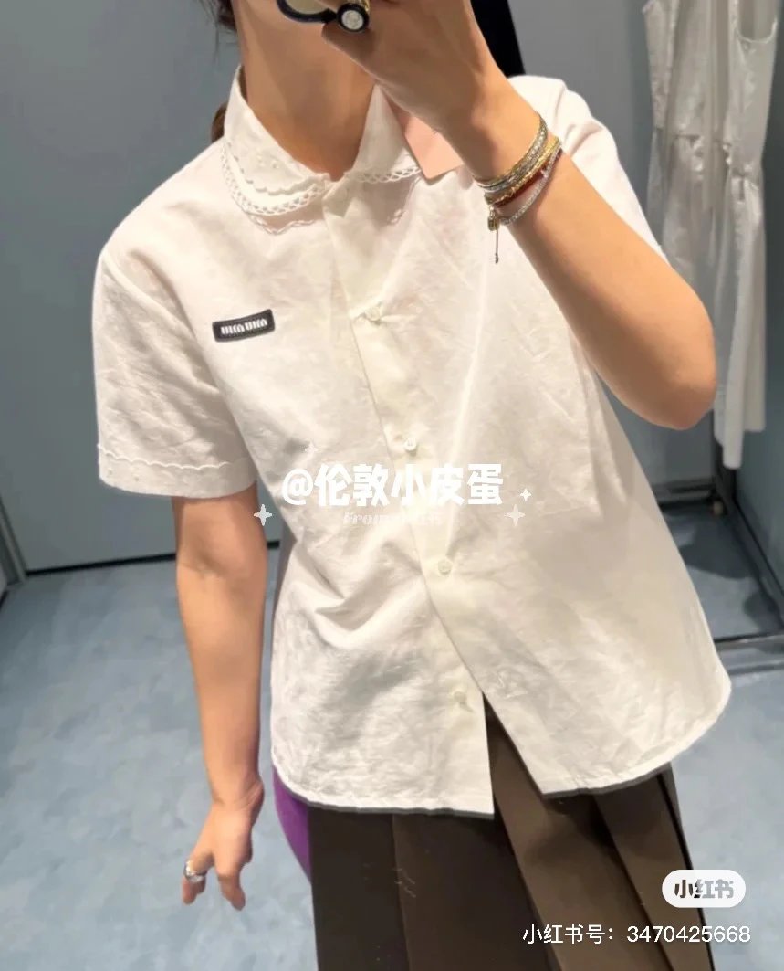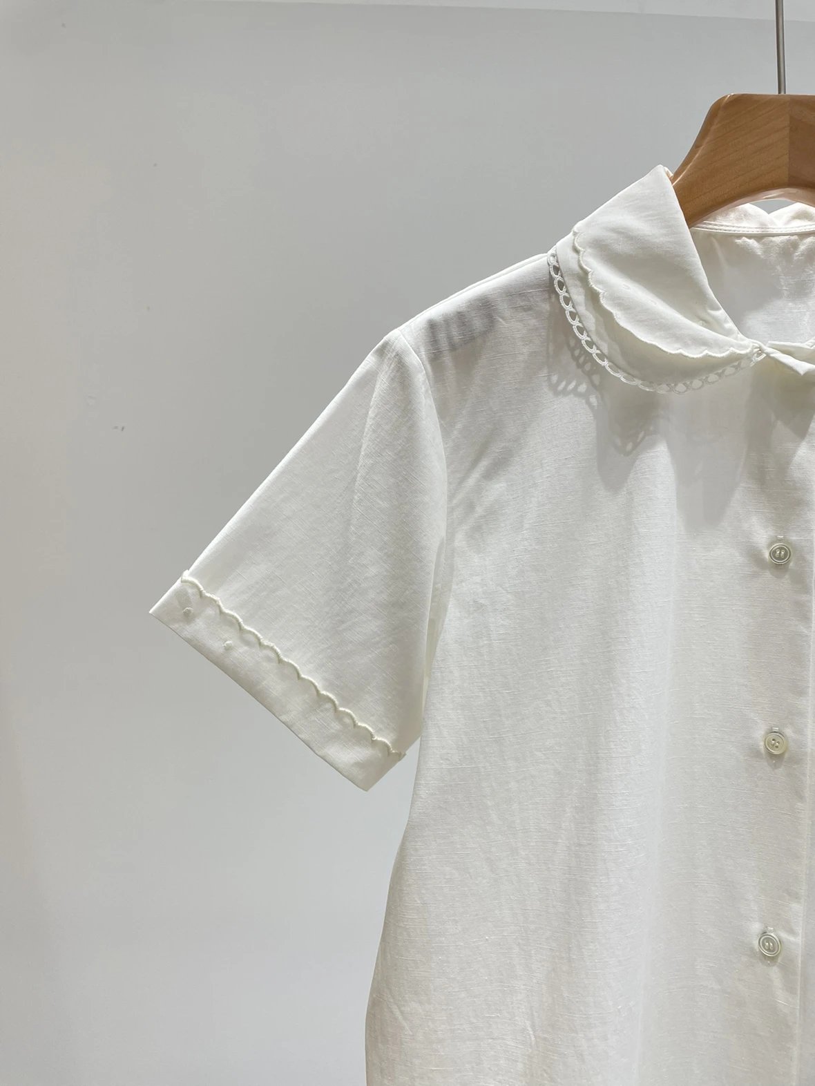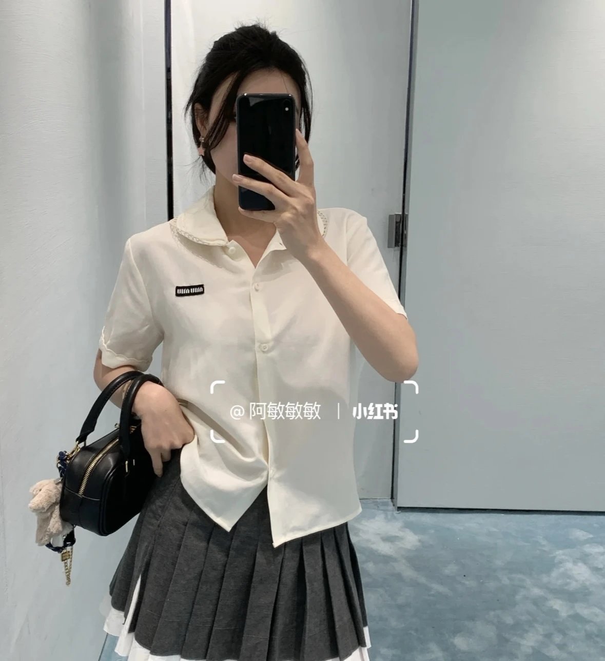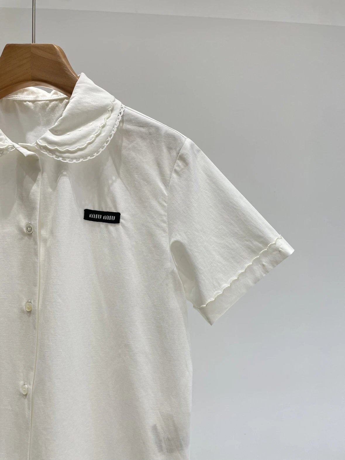 重磅推荐!miu花边学院风套装 蕾丝花边棉麻短袖衬衫+府绸竹节棉麻半裙