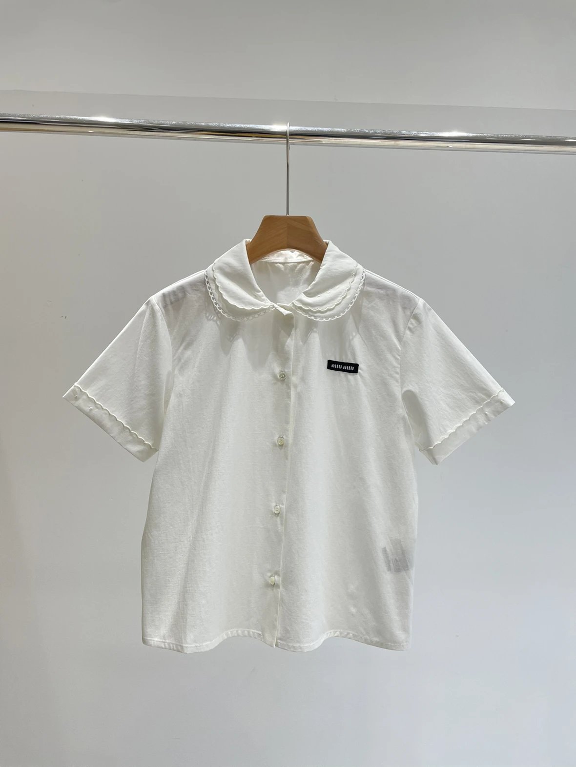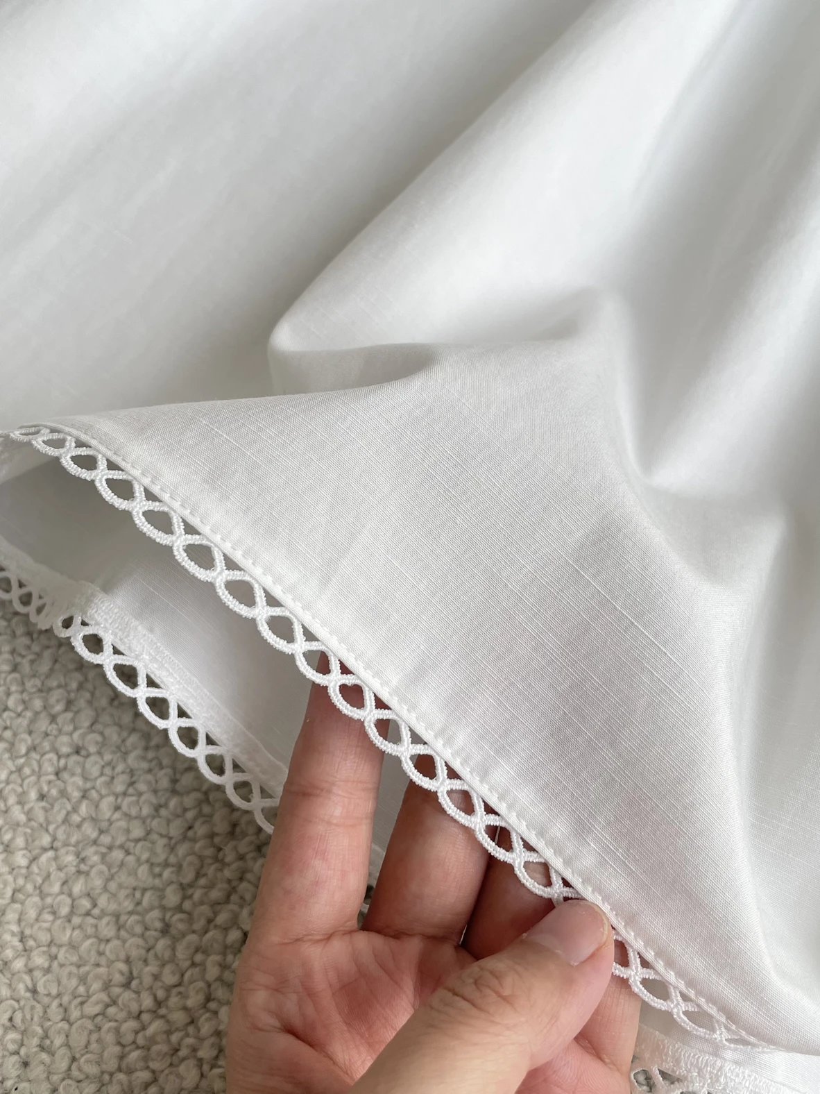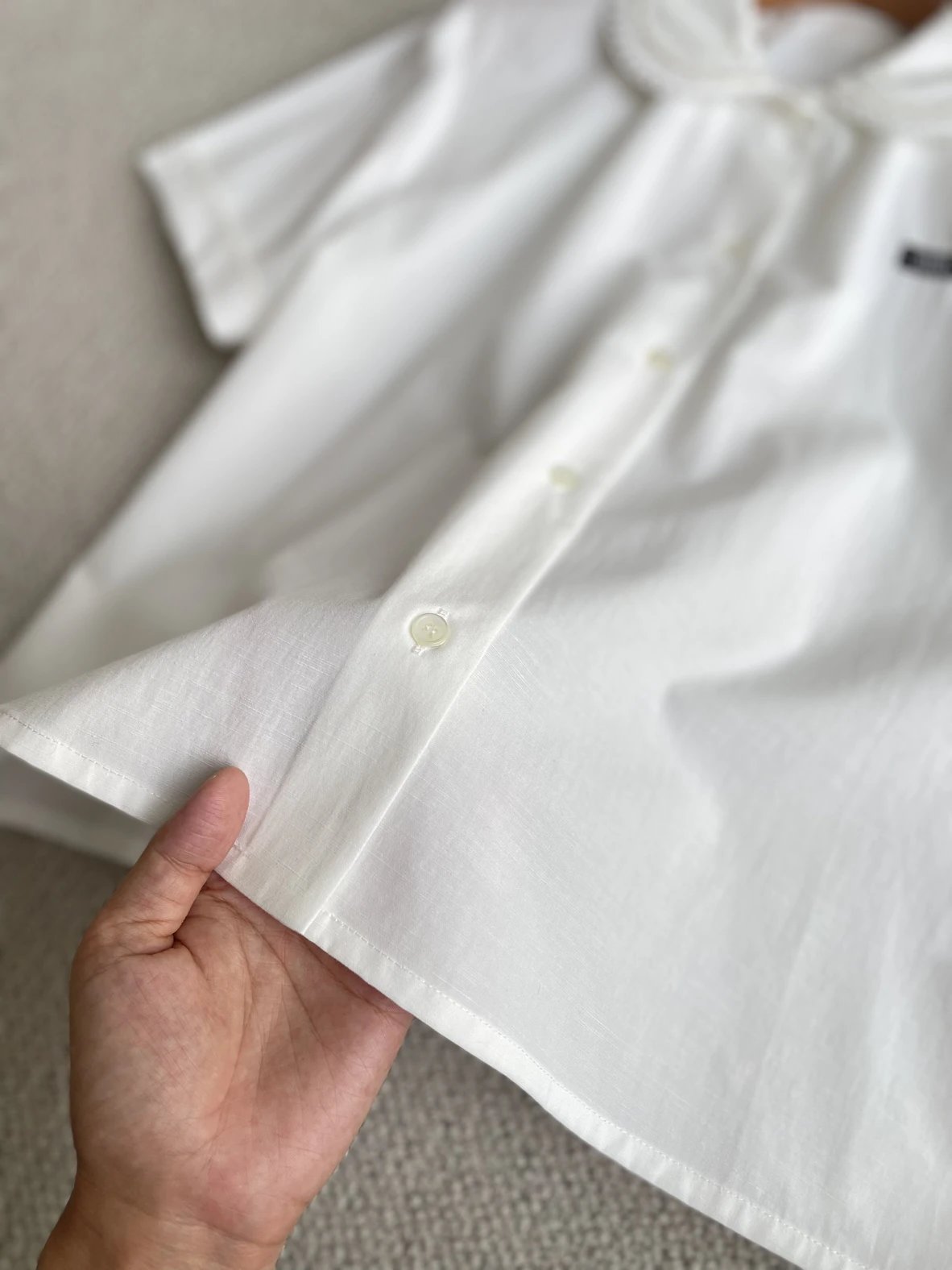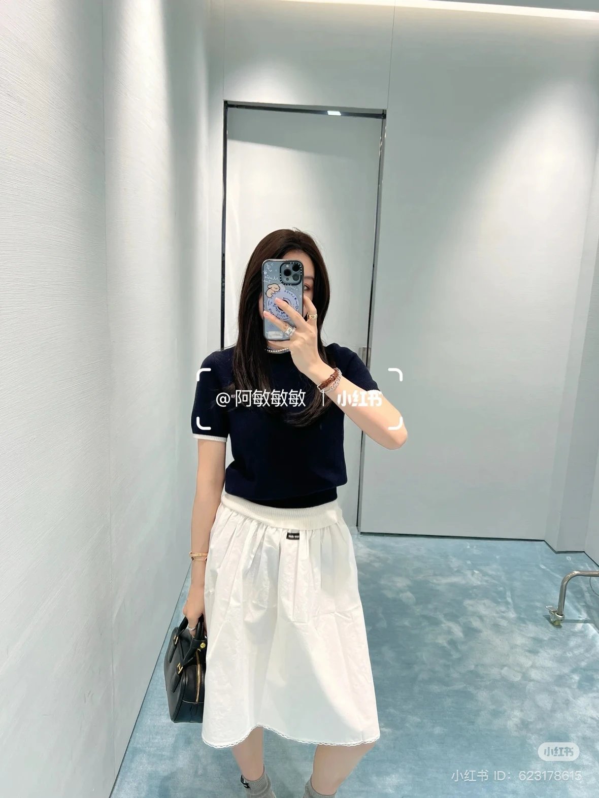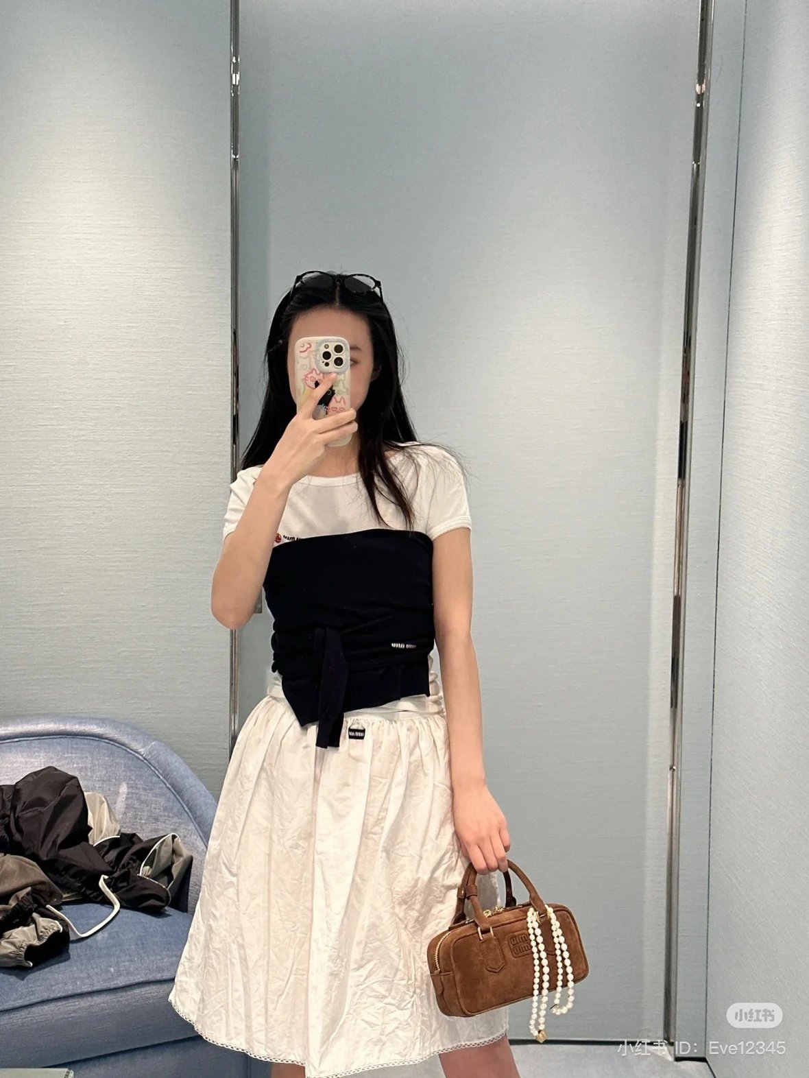 重磅推荐!miu花边学院风套装 蕾丝花边棉麻短袖衬衫+府绸竹节棉麻半裙