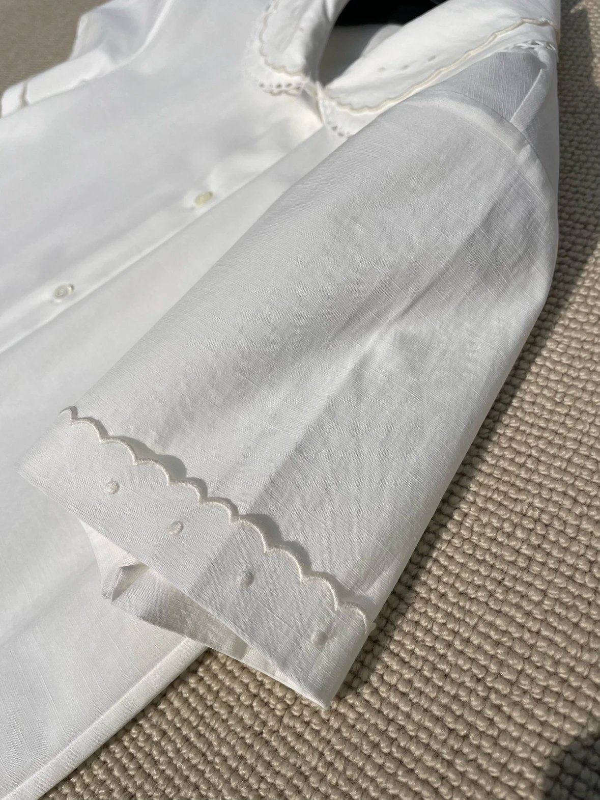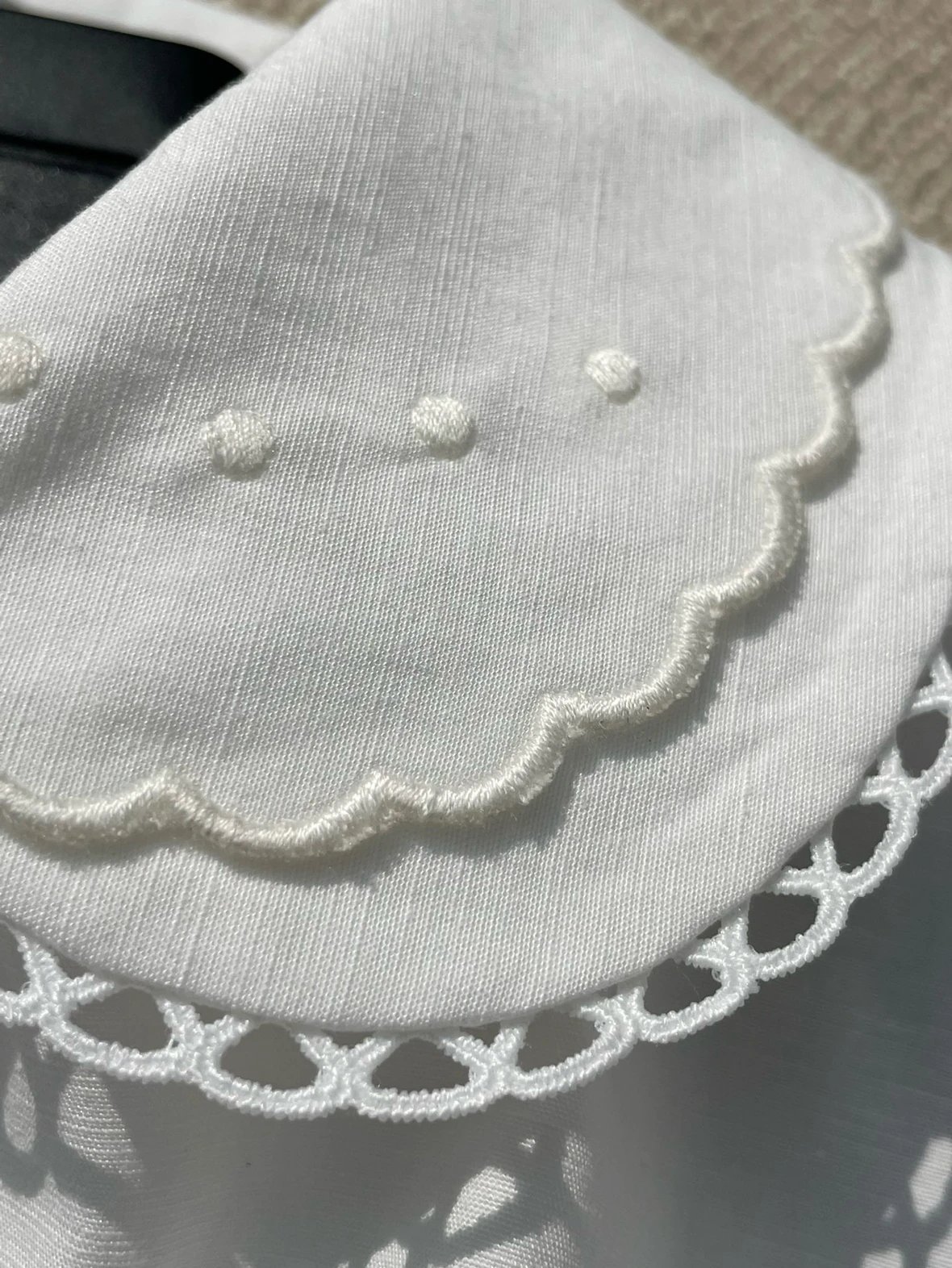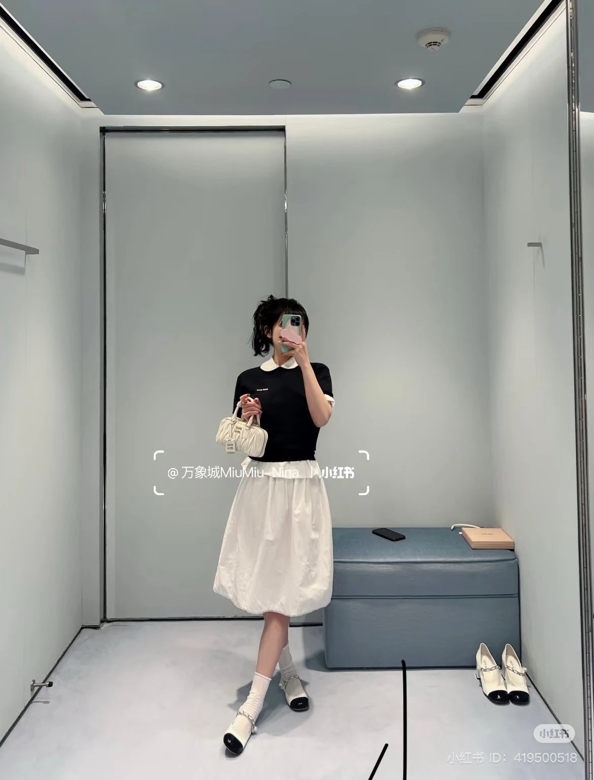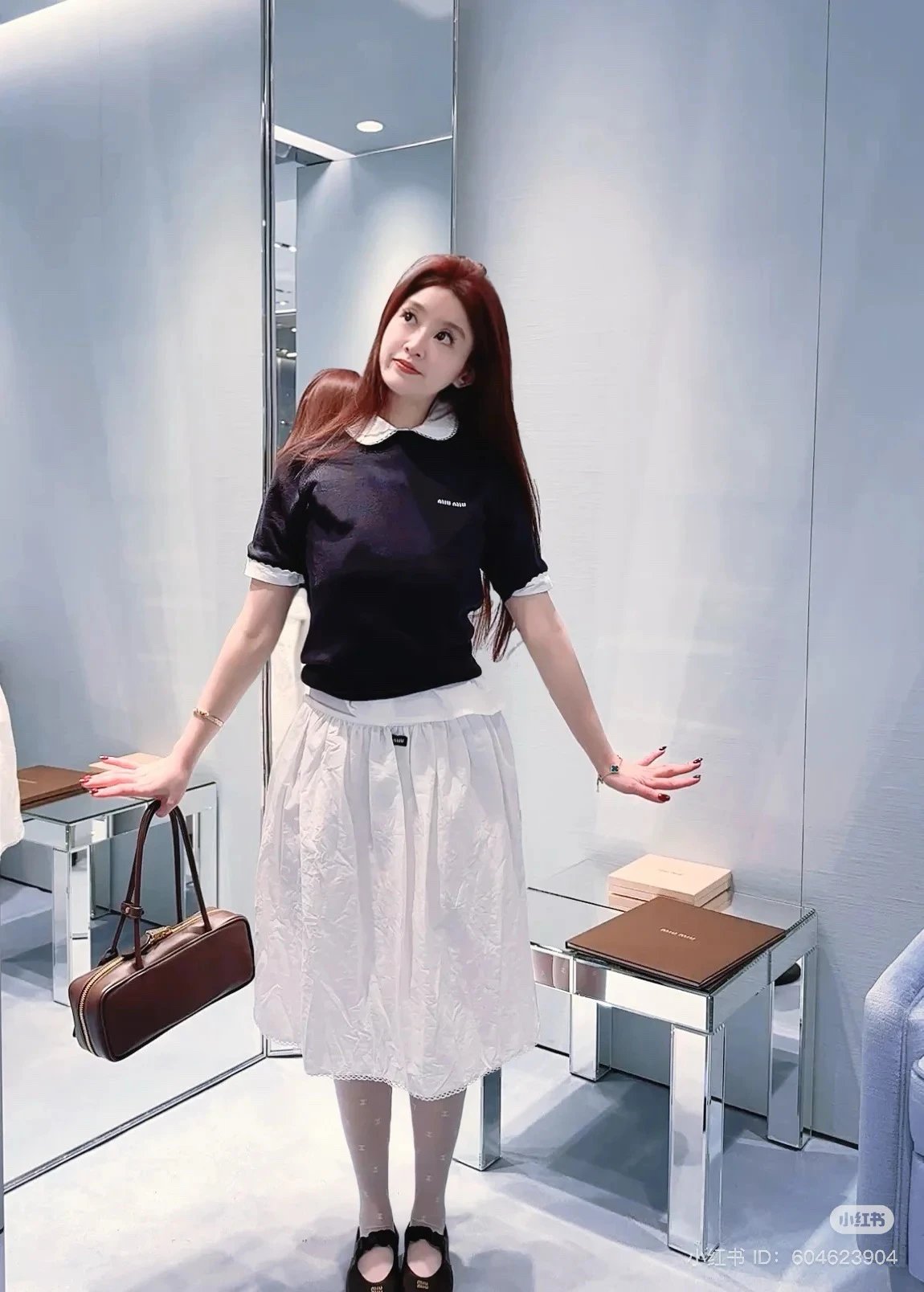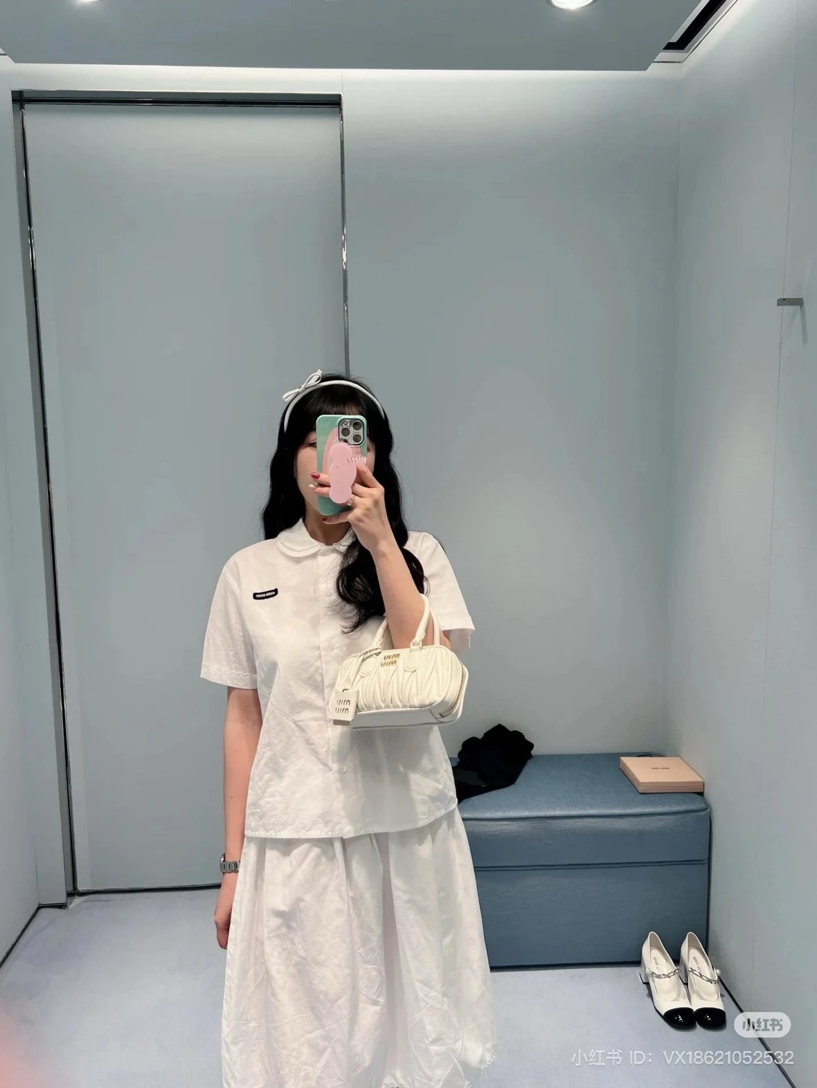 重磅推荐!miu花边学院风套装 蕾丝花边棉麻短袖衬衫+府绸竹节棉麻半裙