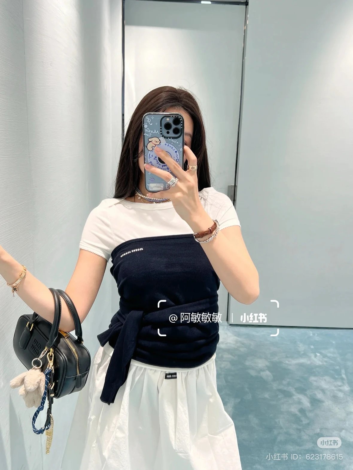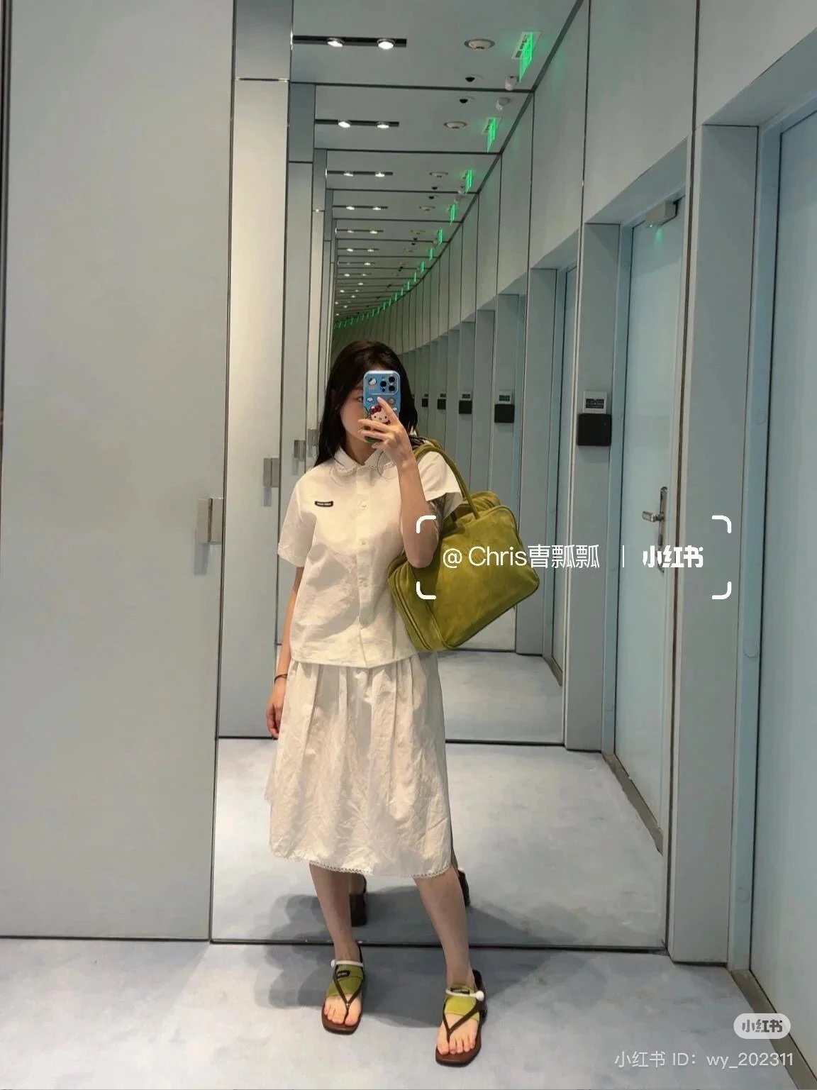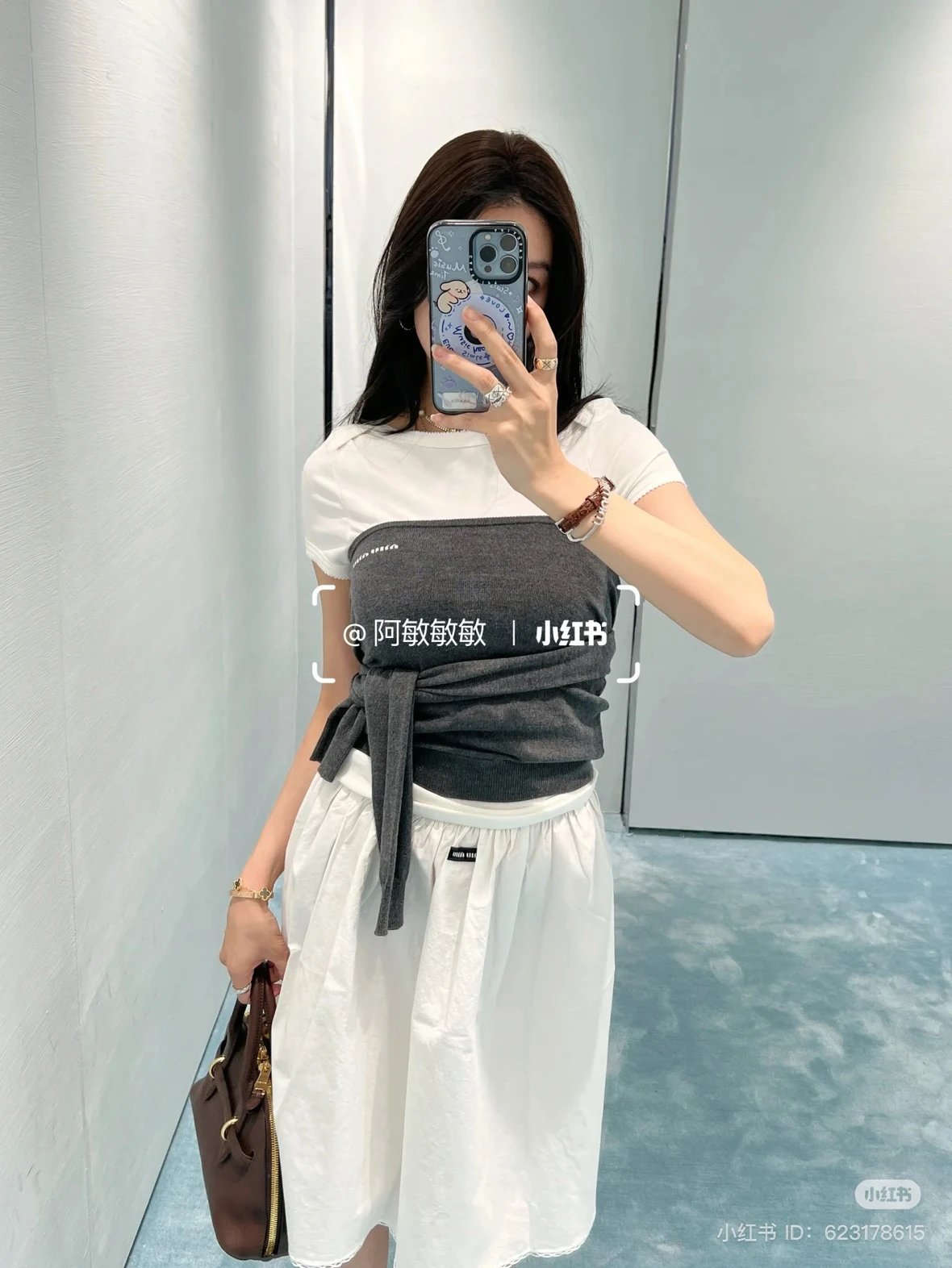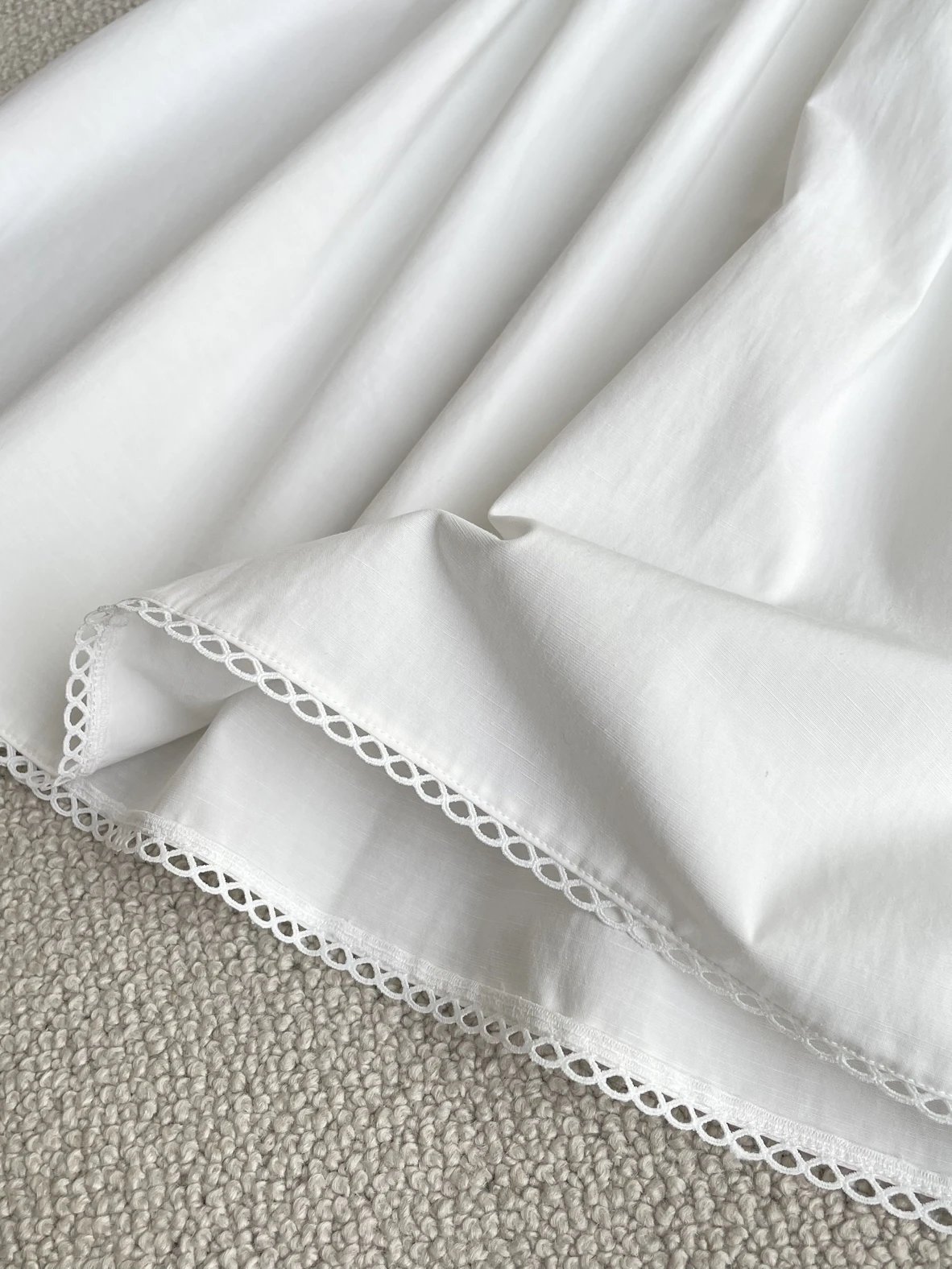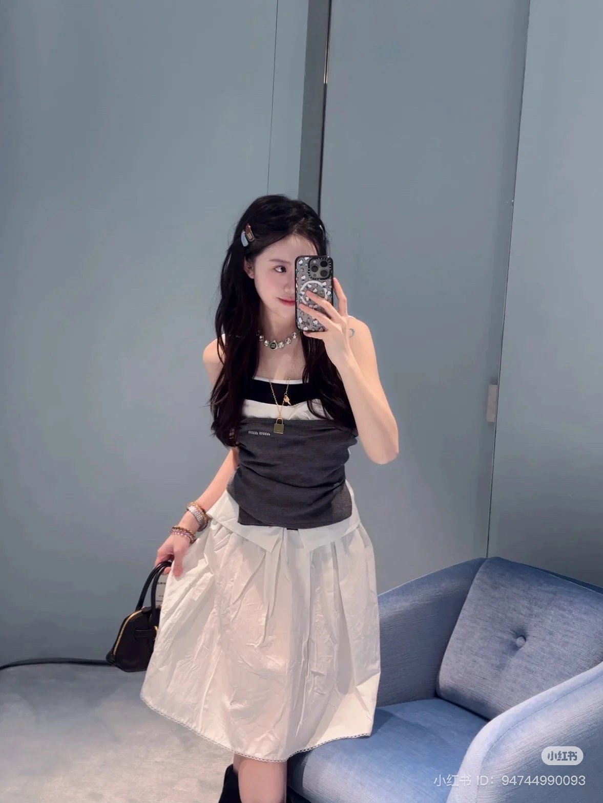 重磅推荐!miu花边学院风套装 蕾丝花边棉麻短袖衬衫+府绸竹节棉麻半裙