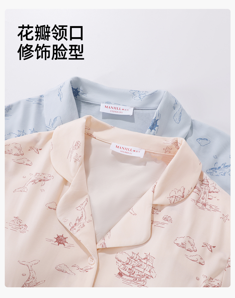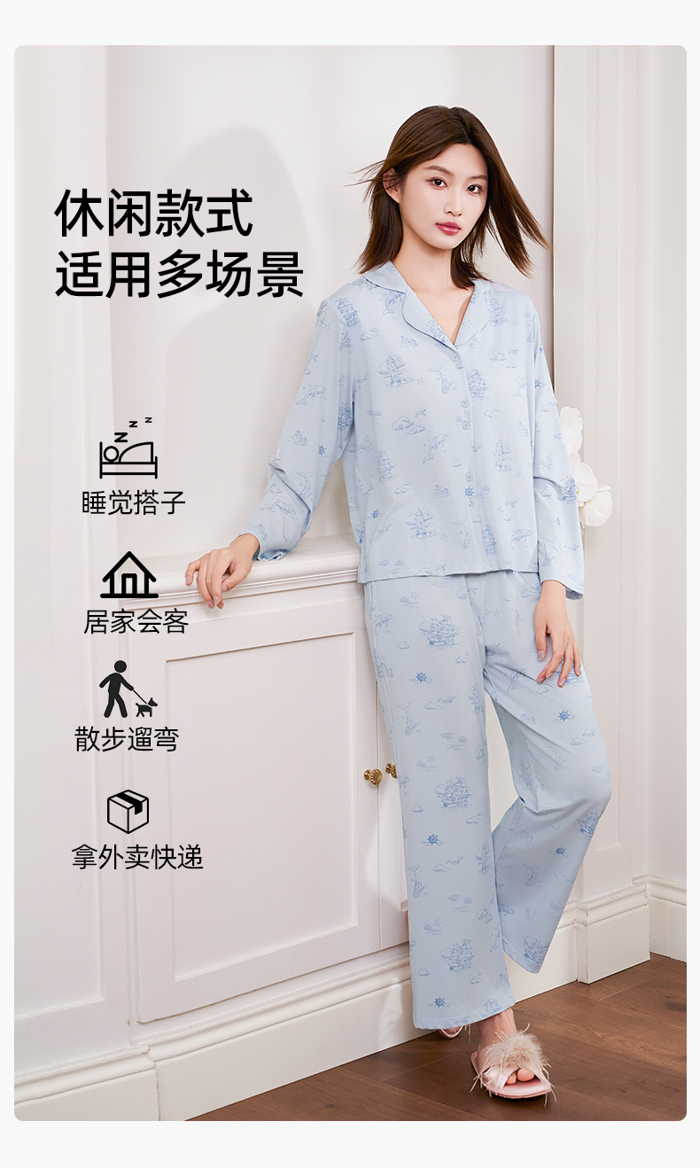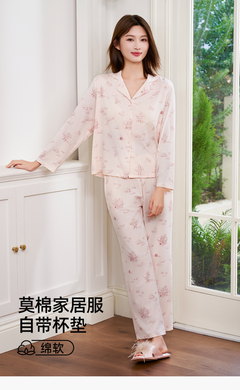【商场同款】【带杯垫】熳洁儿 早秋新款棉莫家居服开衫套装短上衣25703207