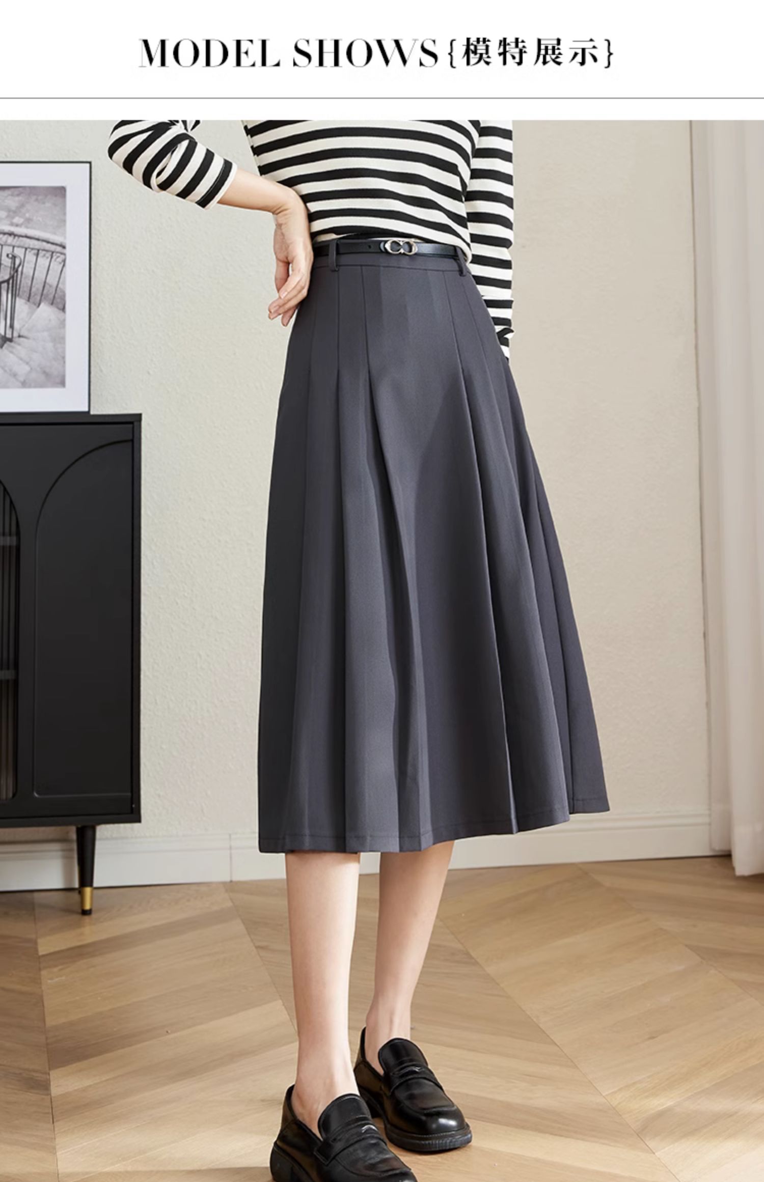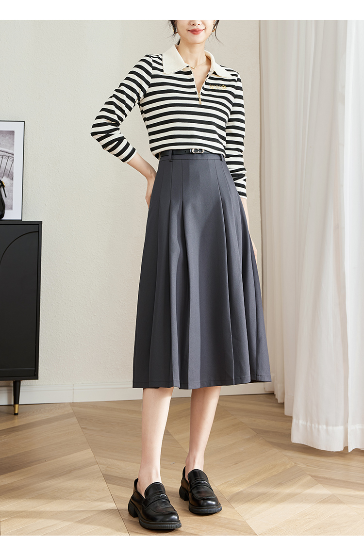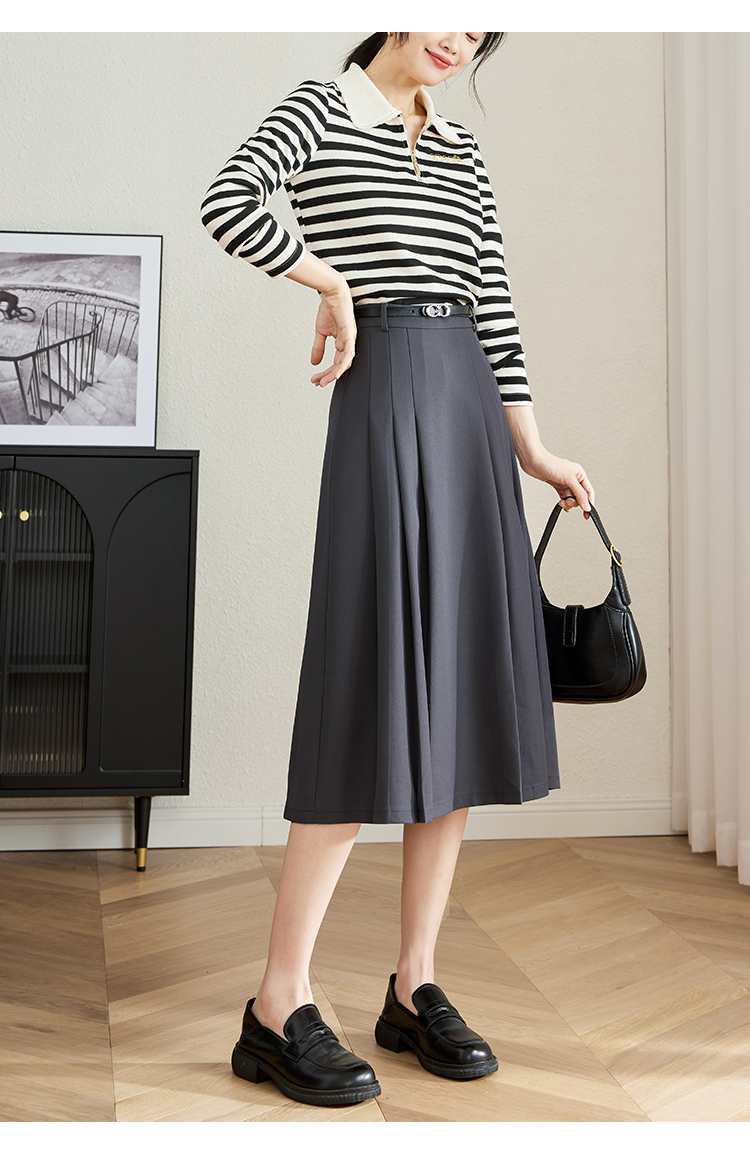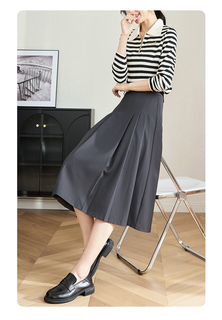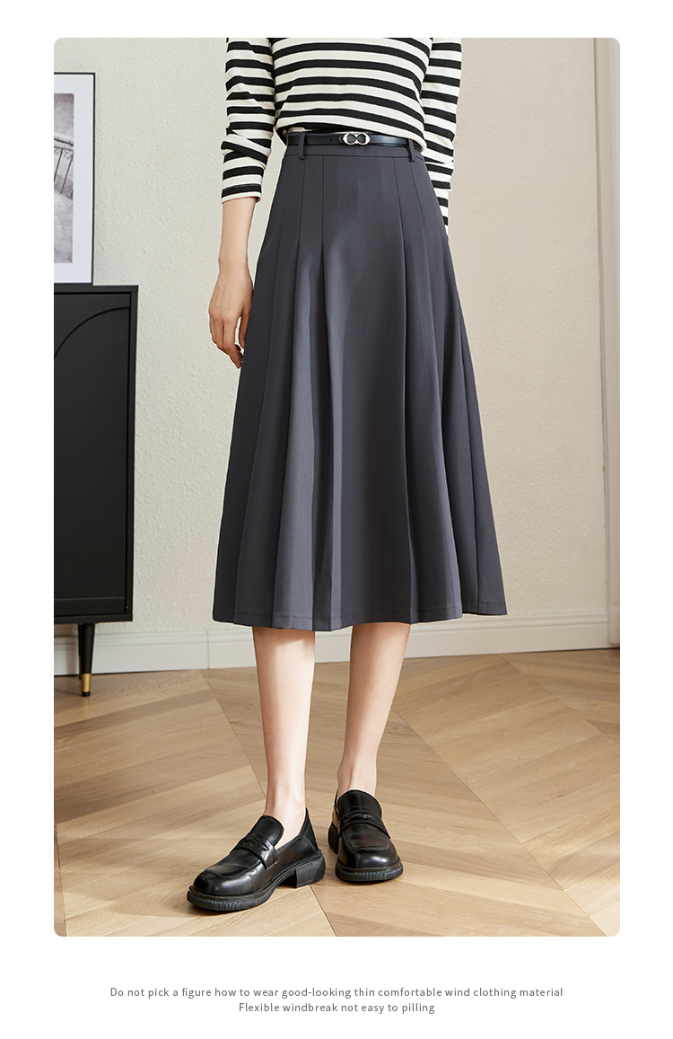 【专属特卖】熙世界灰色百褶半身裙子女秋2025年新款高腰显瘦垂感a字西装半裙