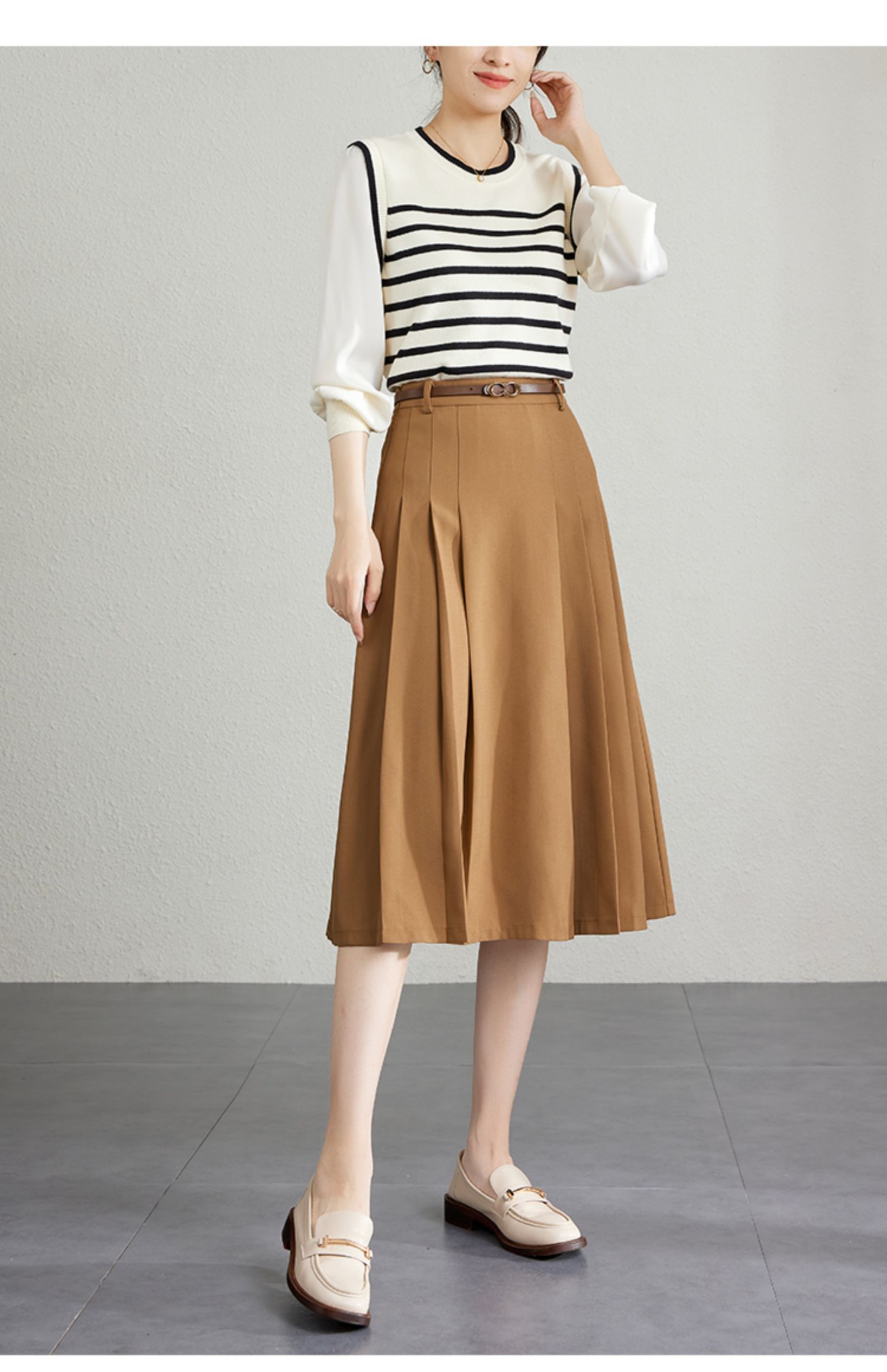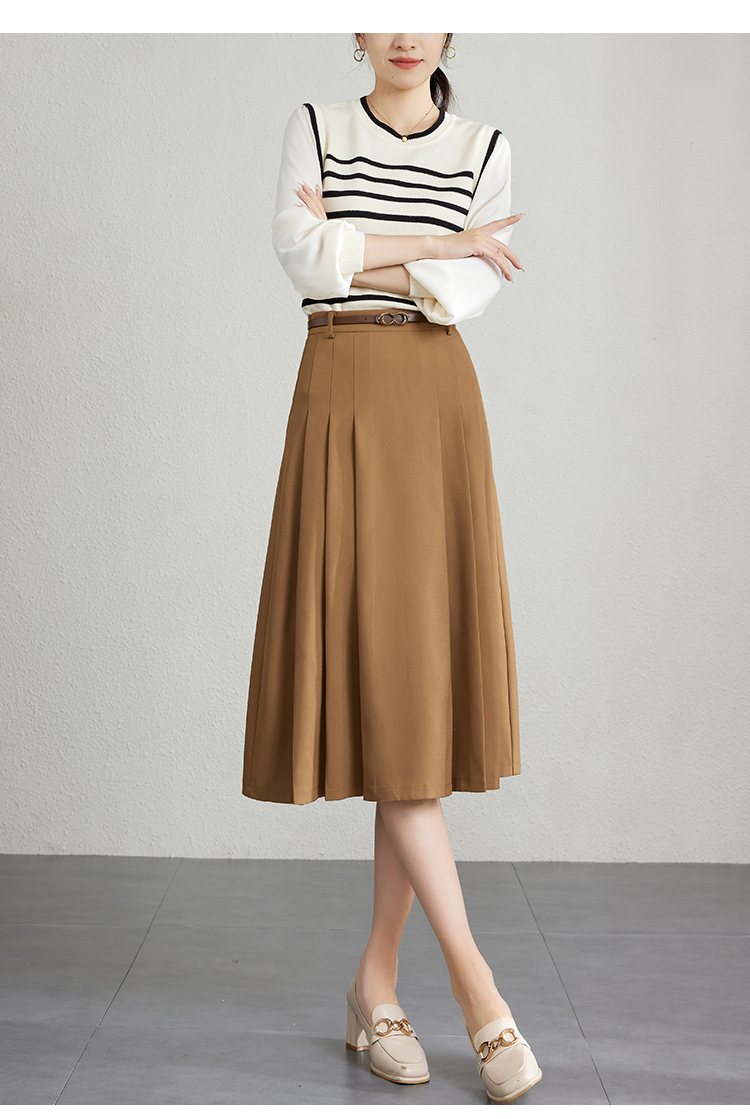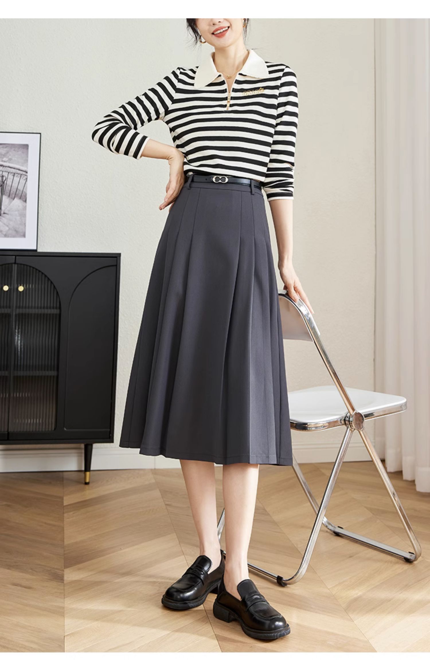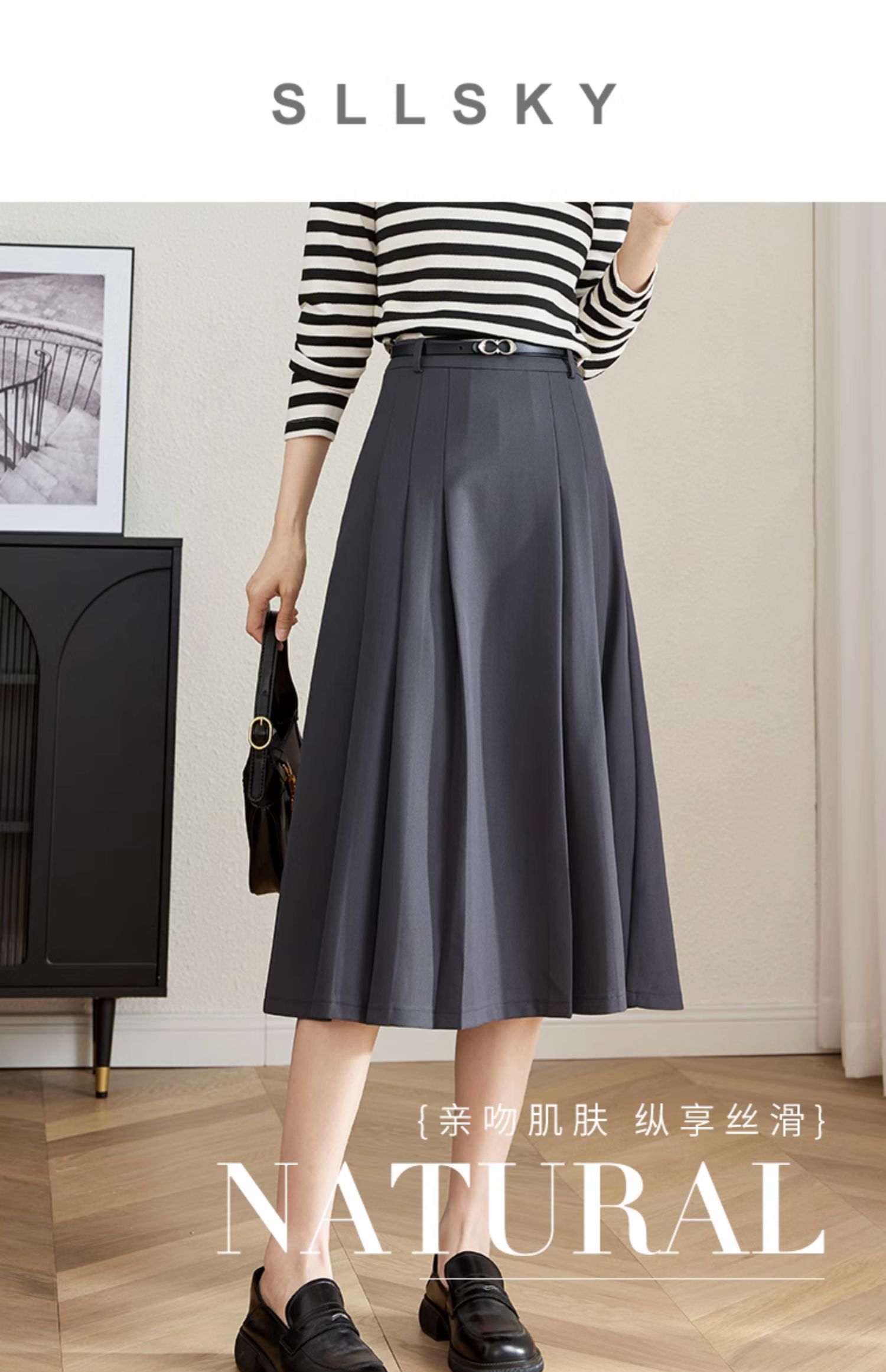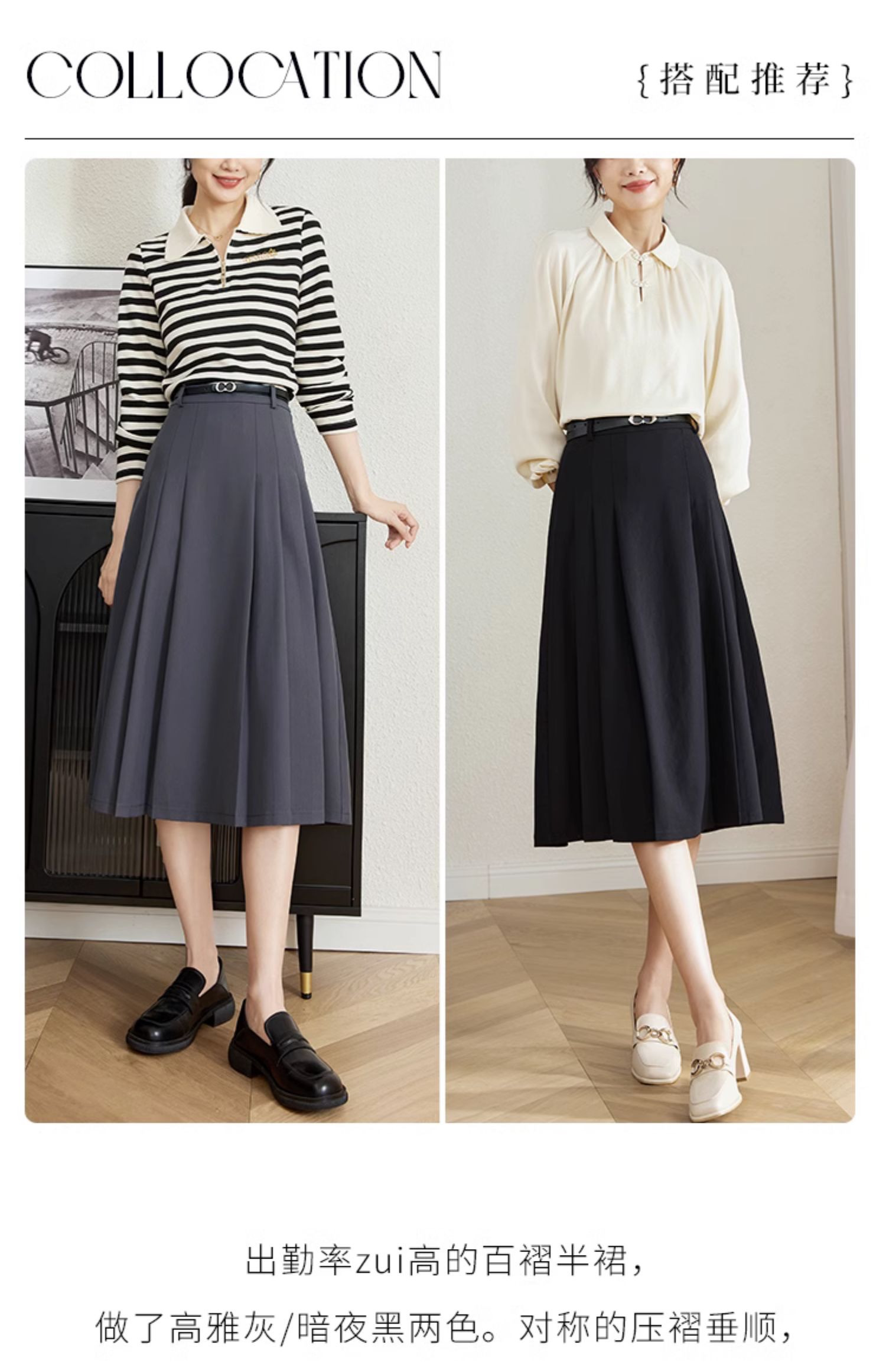 【专属特卖】熙世界灰色百褶半身裙子女秋2025年新款高腰显瘦垂感a字西装半裙