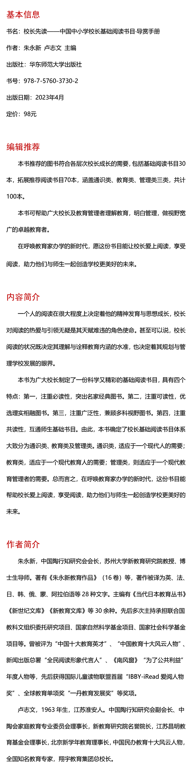 校长先读 中国中小学校长基础阅读书目 导赏手册 大夏书系 学校领导力