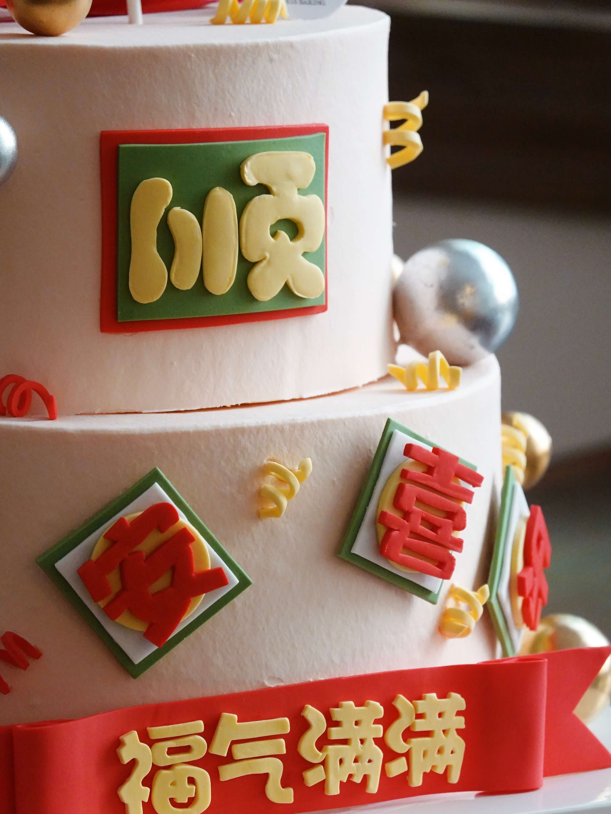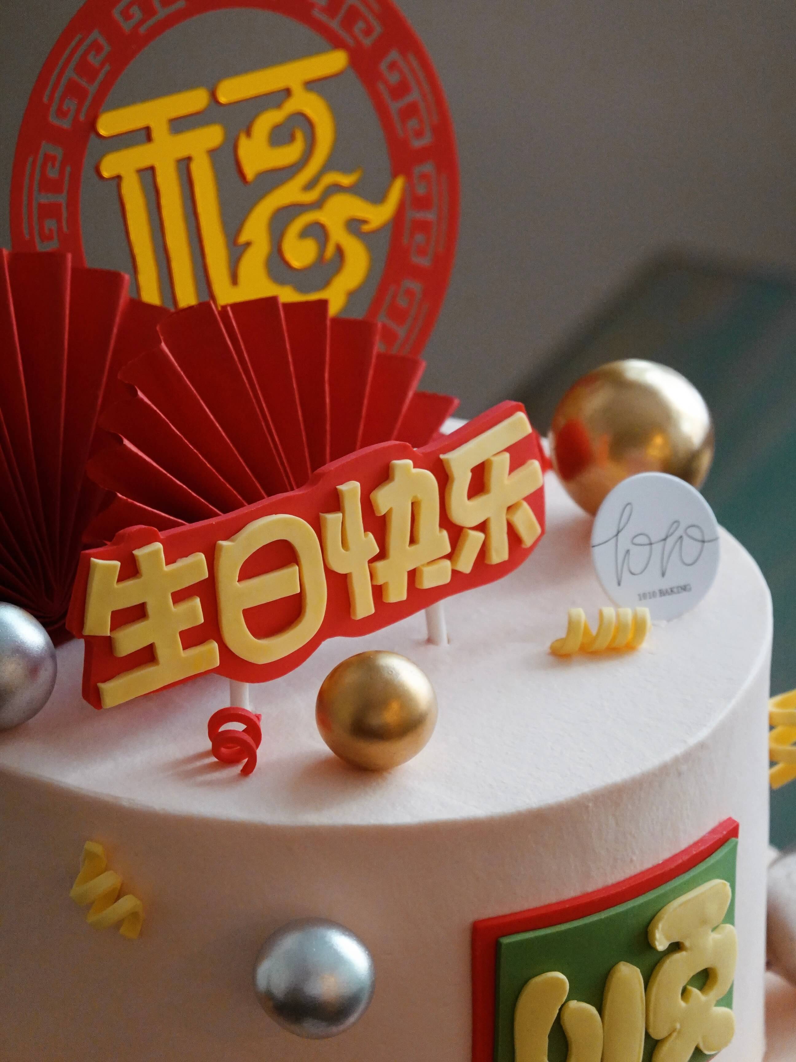 「大福大顺·平安喜乐·福气满满·生日快乐」翻糖巧克力·发财暴富祝寿·100%动物奶油(附图6+8寸双层·提前5天预订)