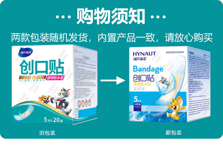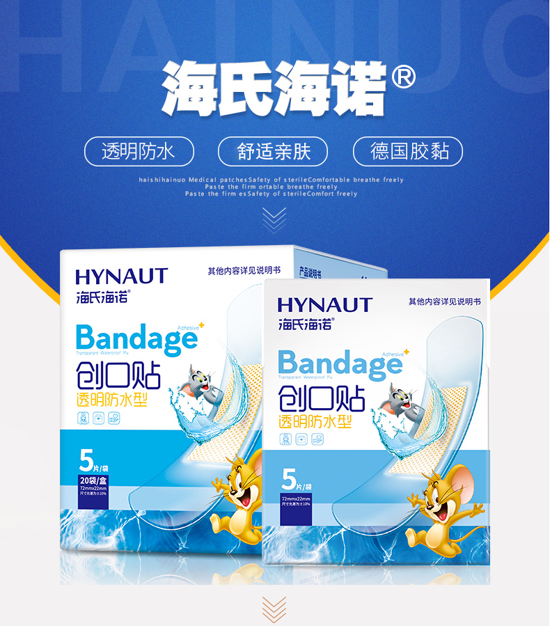 【ZY25】海氏海诺透明防水型创可贴 5片*20袋/盒
