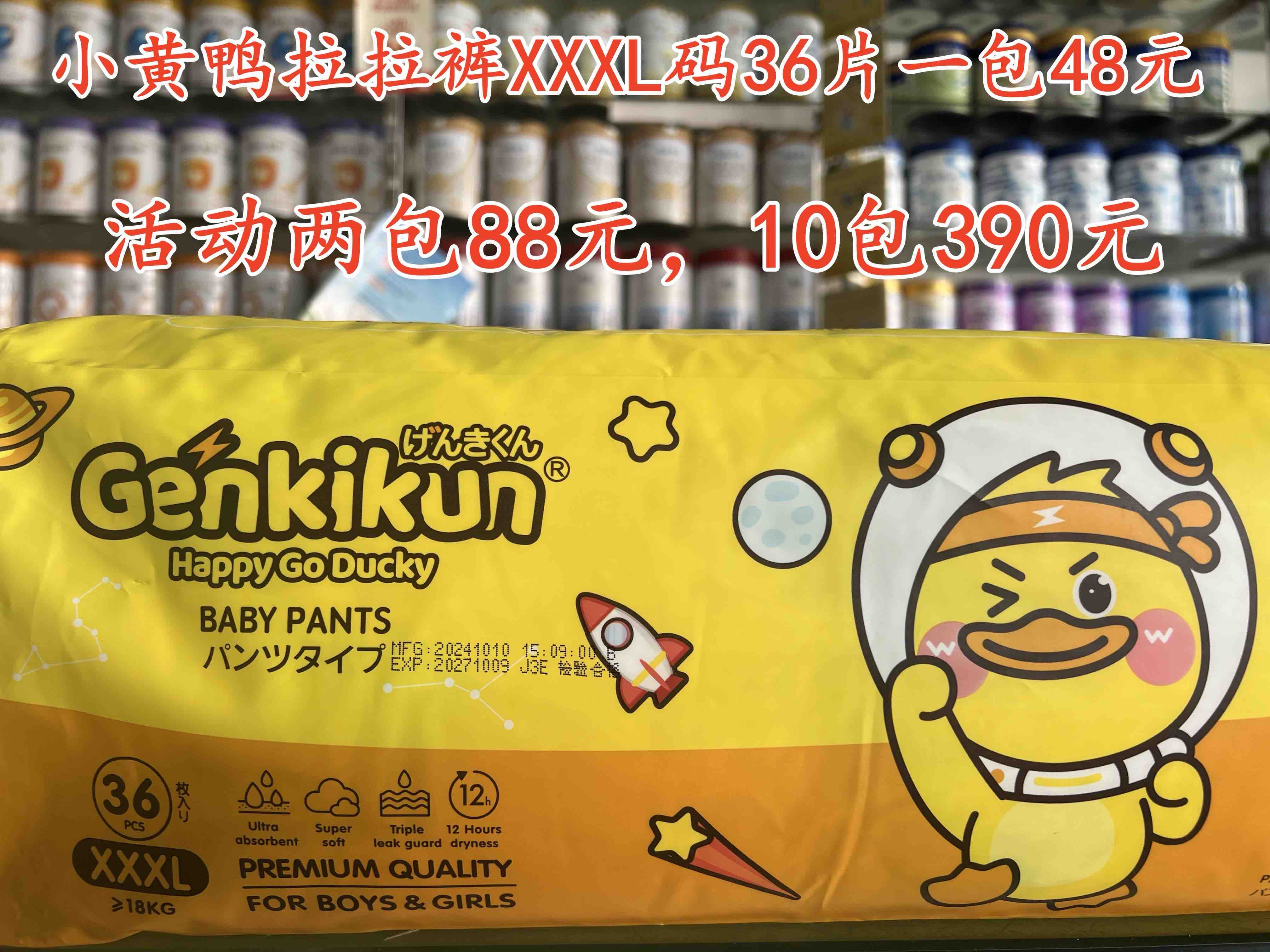 小黄鸭拉拉裤一包48元. 活动两包88元,10包390元.