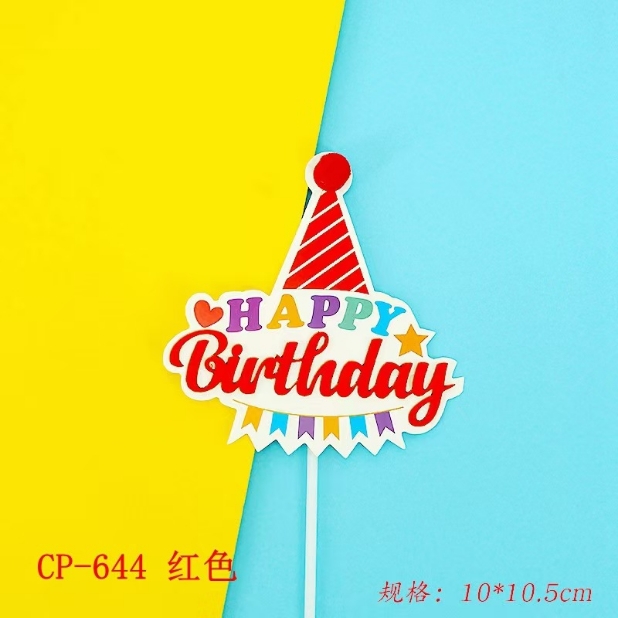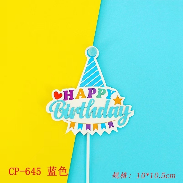 双层插件 斜纹礼帽英文HAPPY Birthday插件 生日快乐装饰纸插件 1支