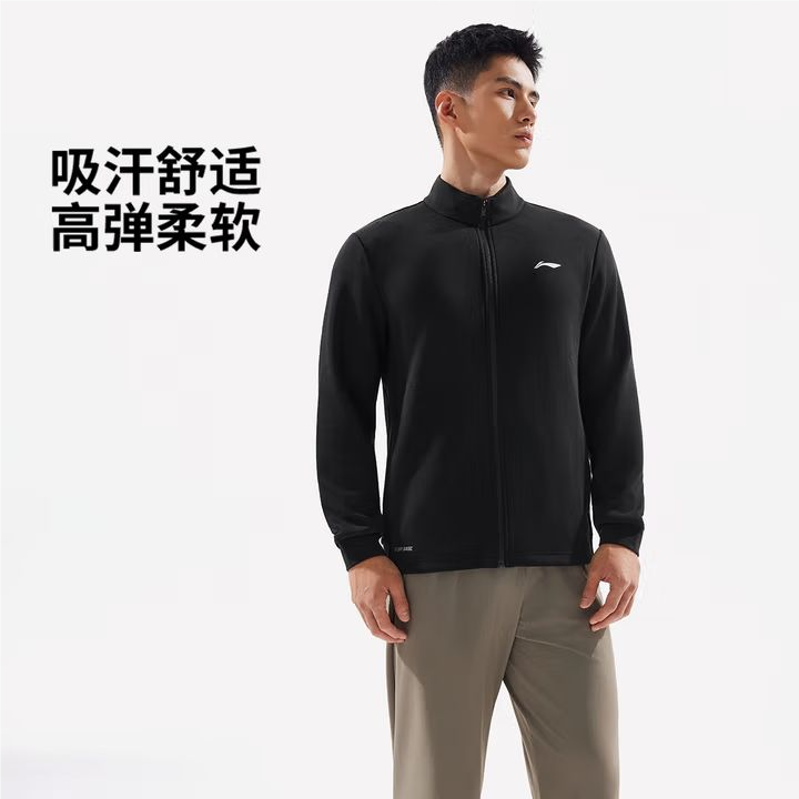 李宁男子2025秋季弹力吸汗开衫运动上衣健身外套AWDV935-3