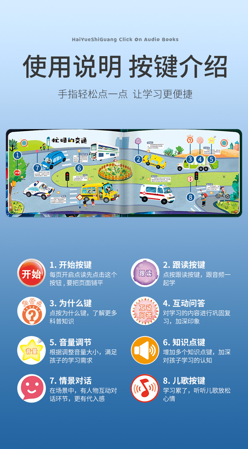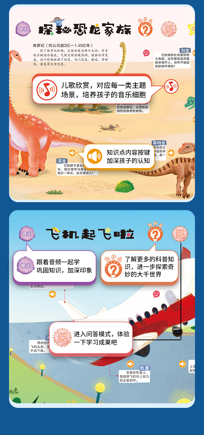 每个科普知识都经过反复查证和商讨,在保证知识点合理性的基础上,做到每个知识点具有科学性、准确性。本书画面精美,语言简洁、活泼。孩子通过手指点读书本,既可以调动孩子的学习兴趣,增长科普知识,也满足了孩子的求知欲和好奇心。丰富多彩的编辑方式充分考虑儿童的知识基础,找到孩子兴趣点和知识点的结合,充分尊重儿童求知天性,满足儿童阅读需求。全新的阅读体验帮助孩子们激发求知的渴望,培养探索意识和科学精神,让孩子们在快乐中轻松学习,全面发展。