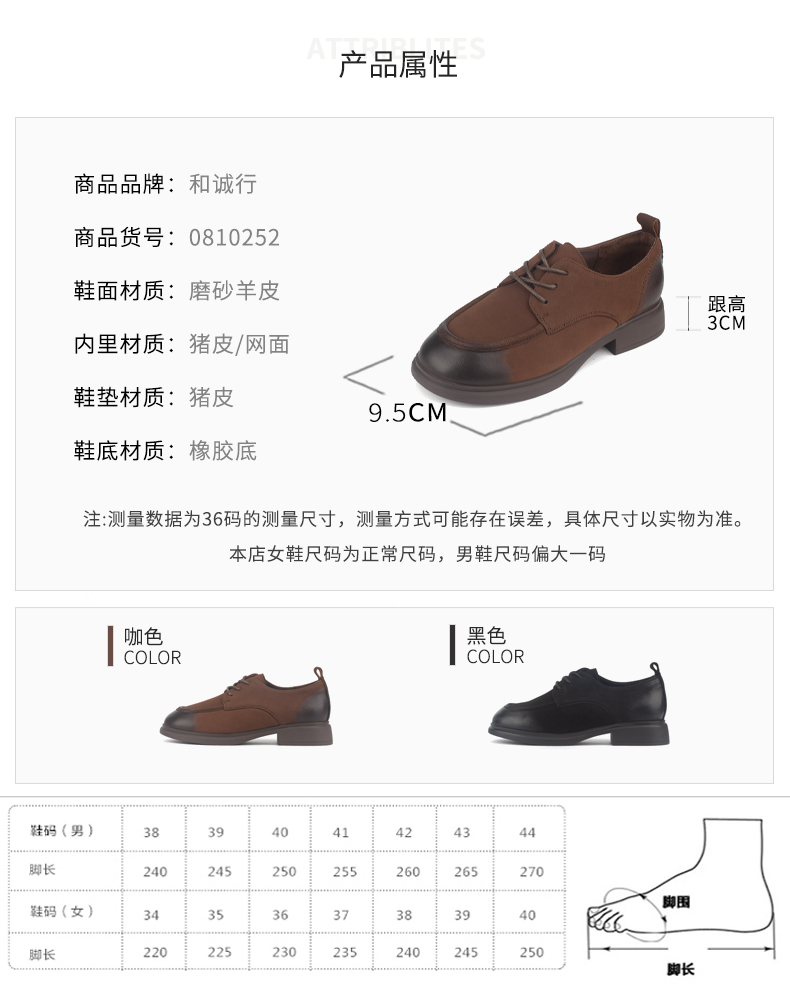 和诚行 2024秋冬新款复古时尚美拉德皮鞋女通勤百搭休闲鞋0810252