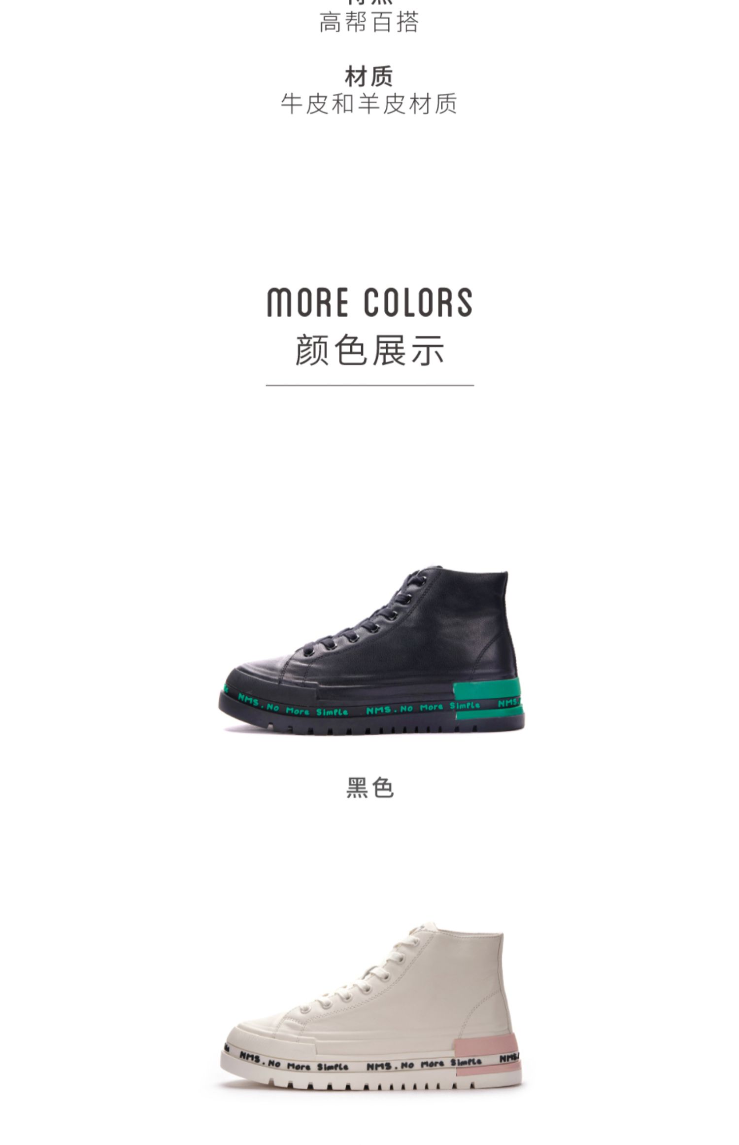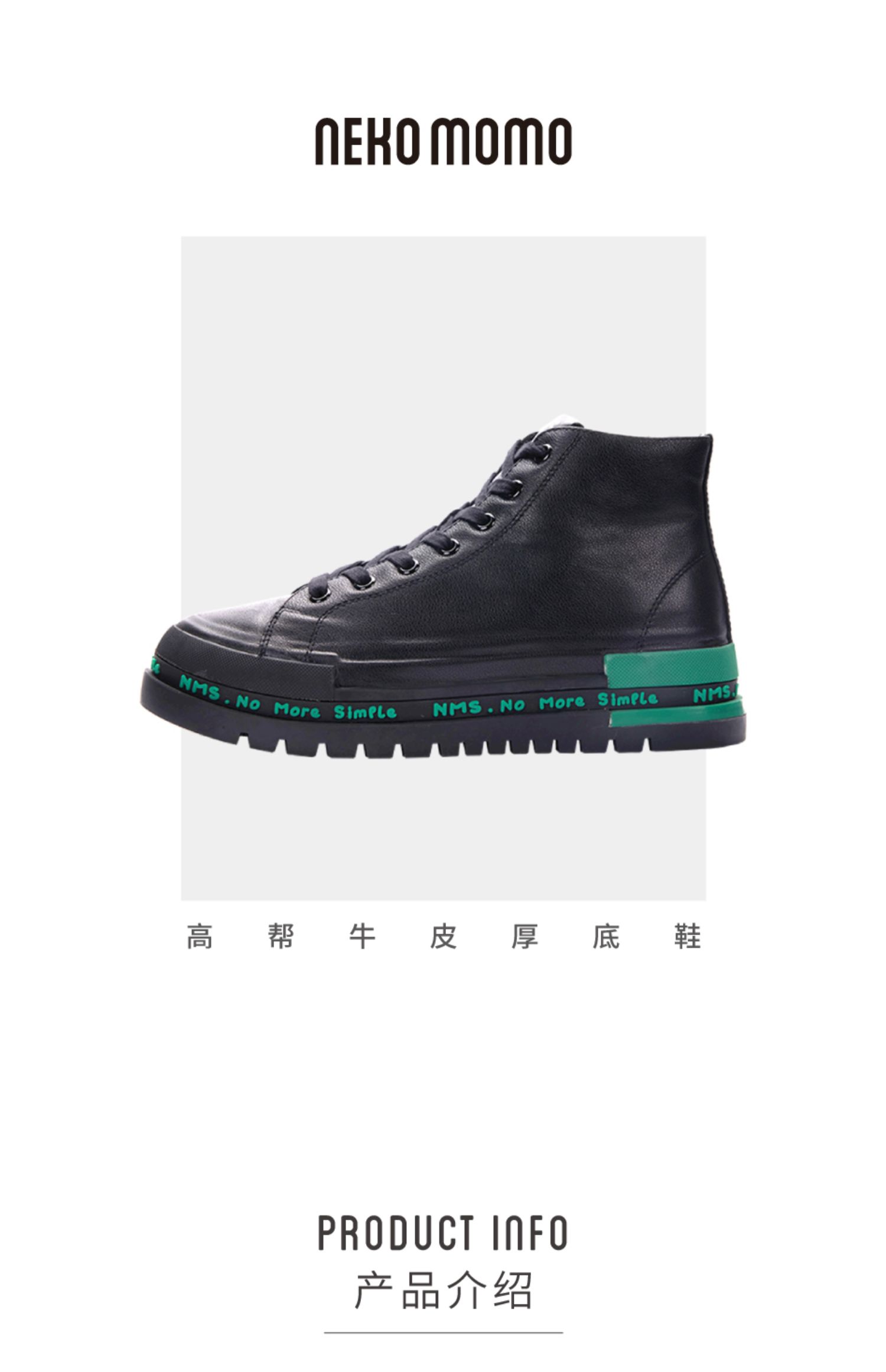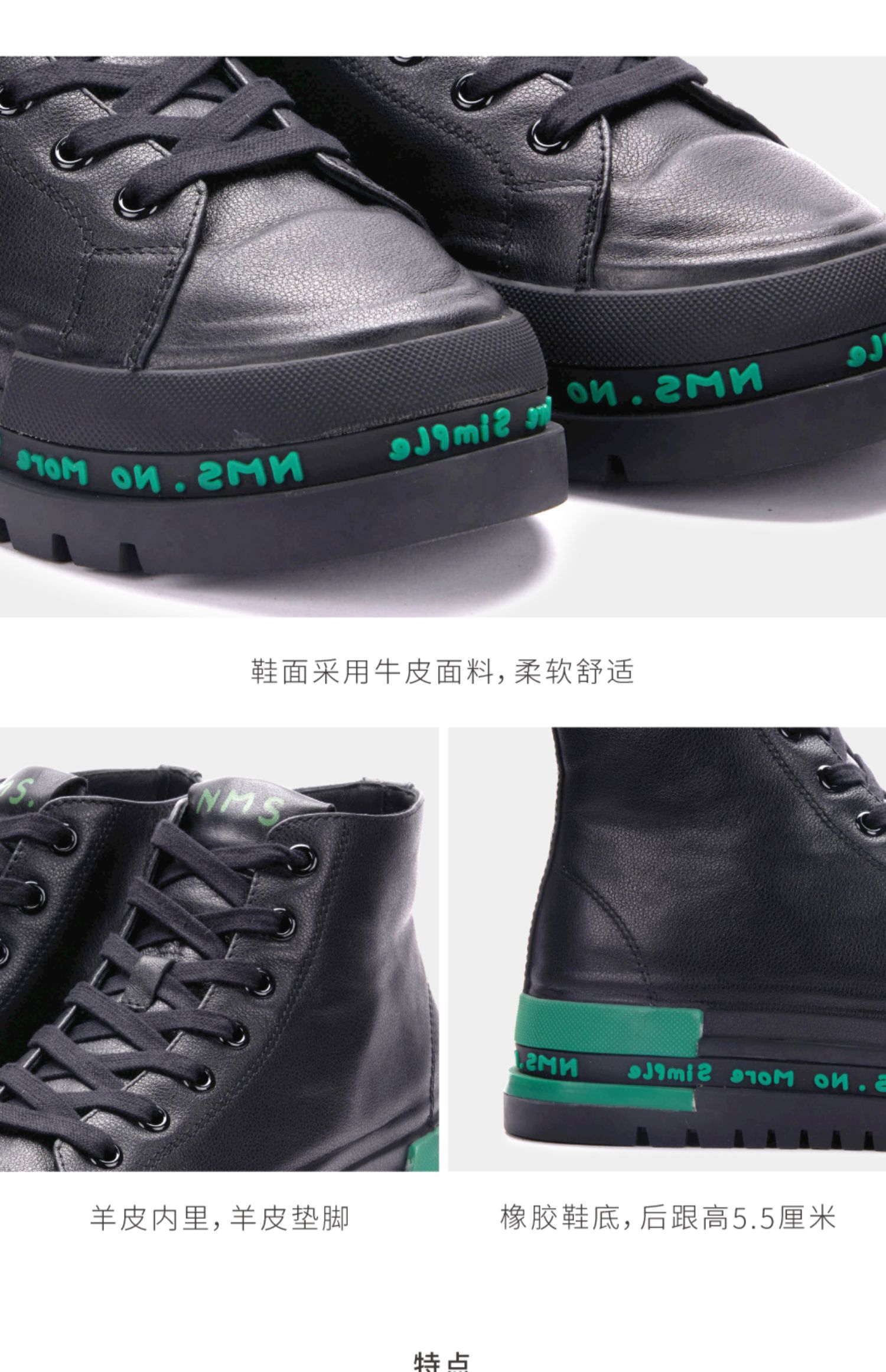 nekomomo2023年春季新款商场同款牛皮厚底高帮黑色板鞋女老爹鞋M20DS40151