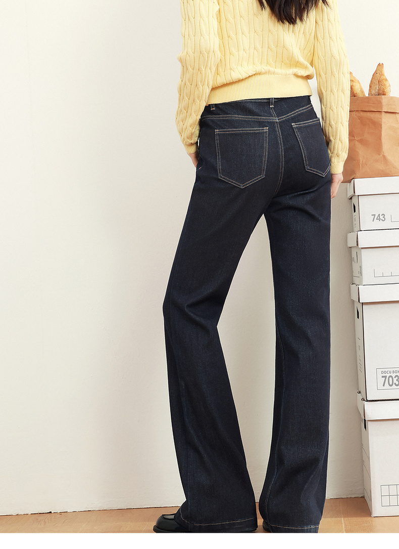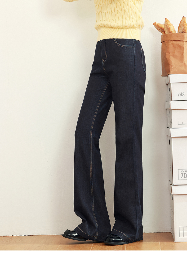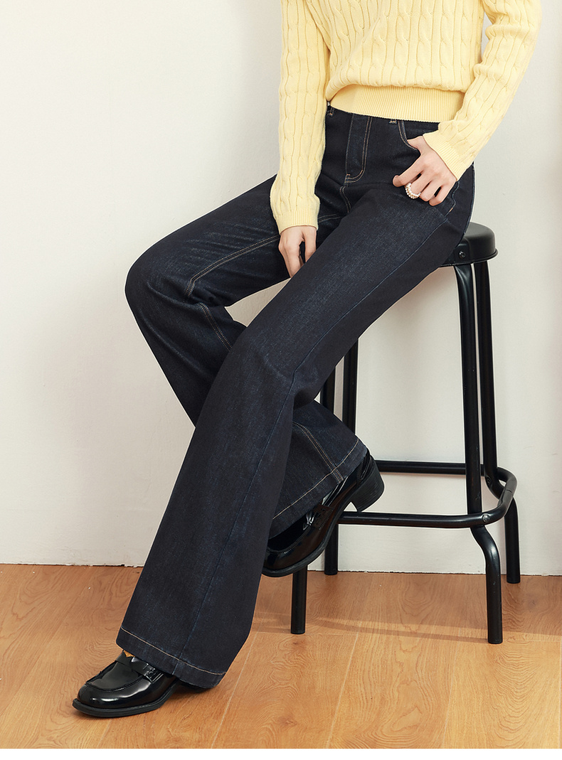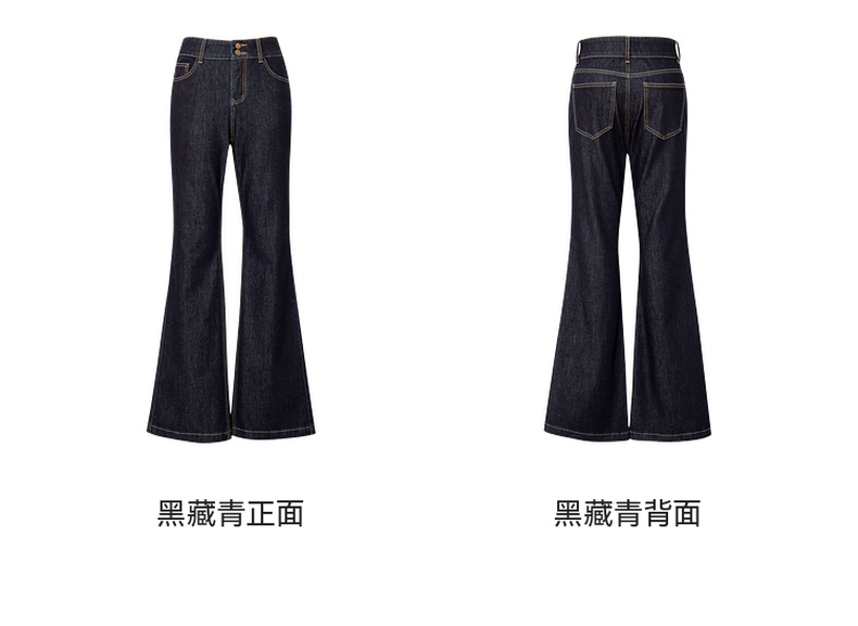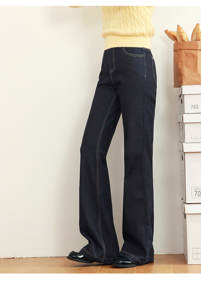 【严选】诗凡黎黑藏青微喇牛仔裤2025年春新款高腰显瘦百搭设计感休闲长裤7G2250131
