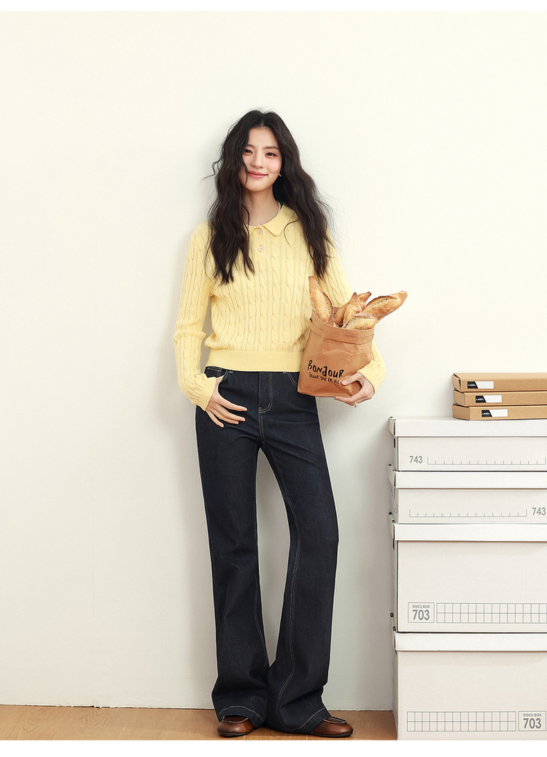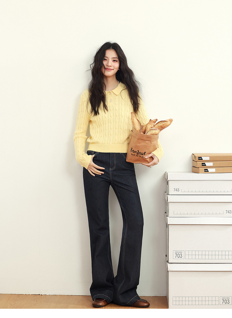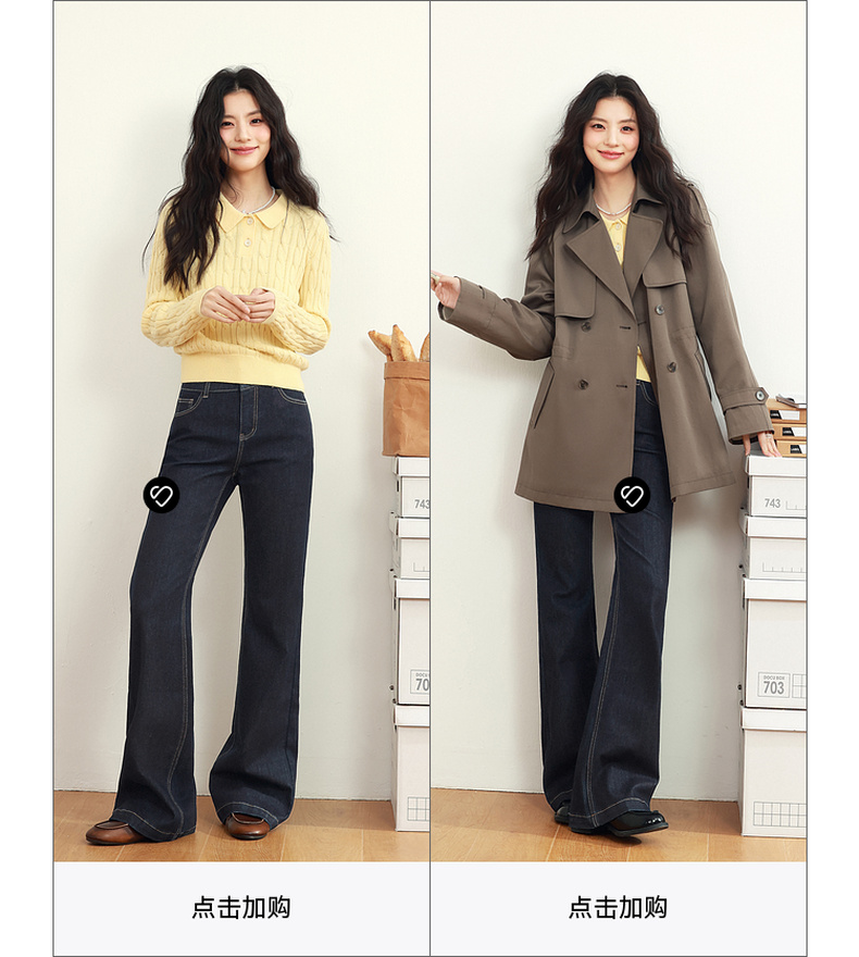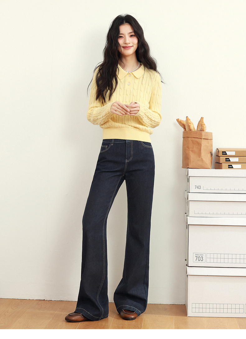 【严选】诗凡黎黑藏青微喇牛仔裤2025年春新款高腰显瘦百搭设计感休闲长裤7G2250131