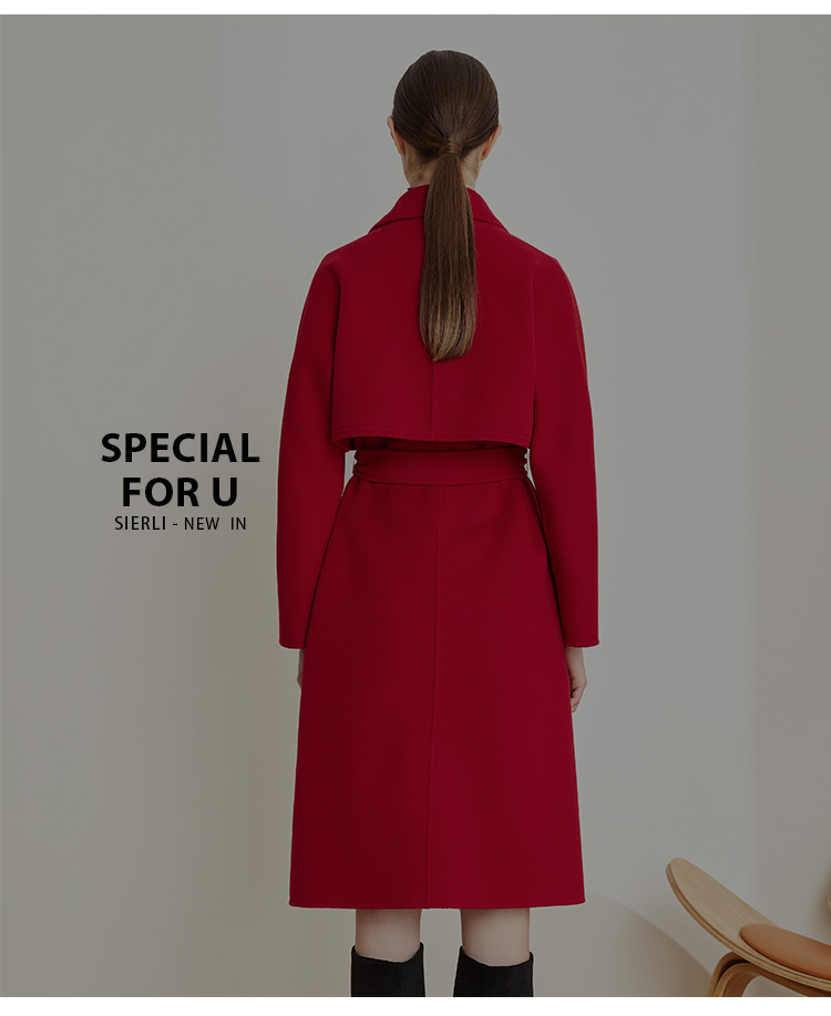 LD930斯尔丽[两件套]瑟俪2021秋冬新款可脱卸长袖外套高品质羊毛大衣
