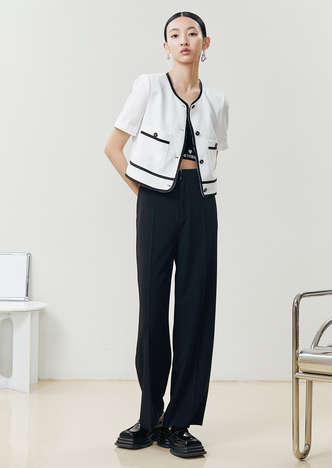 NEELLY纳俪商场同款个性黑白格子高腰休闲裤女宽松舒适百搭直筒裤N23044H03330
