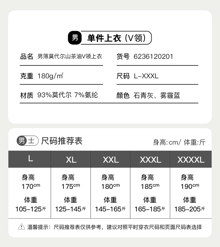 爱帝男士莫代尔山茶油打底上衣单件秋衣