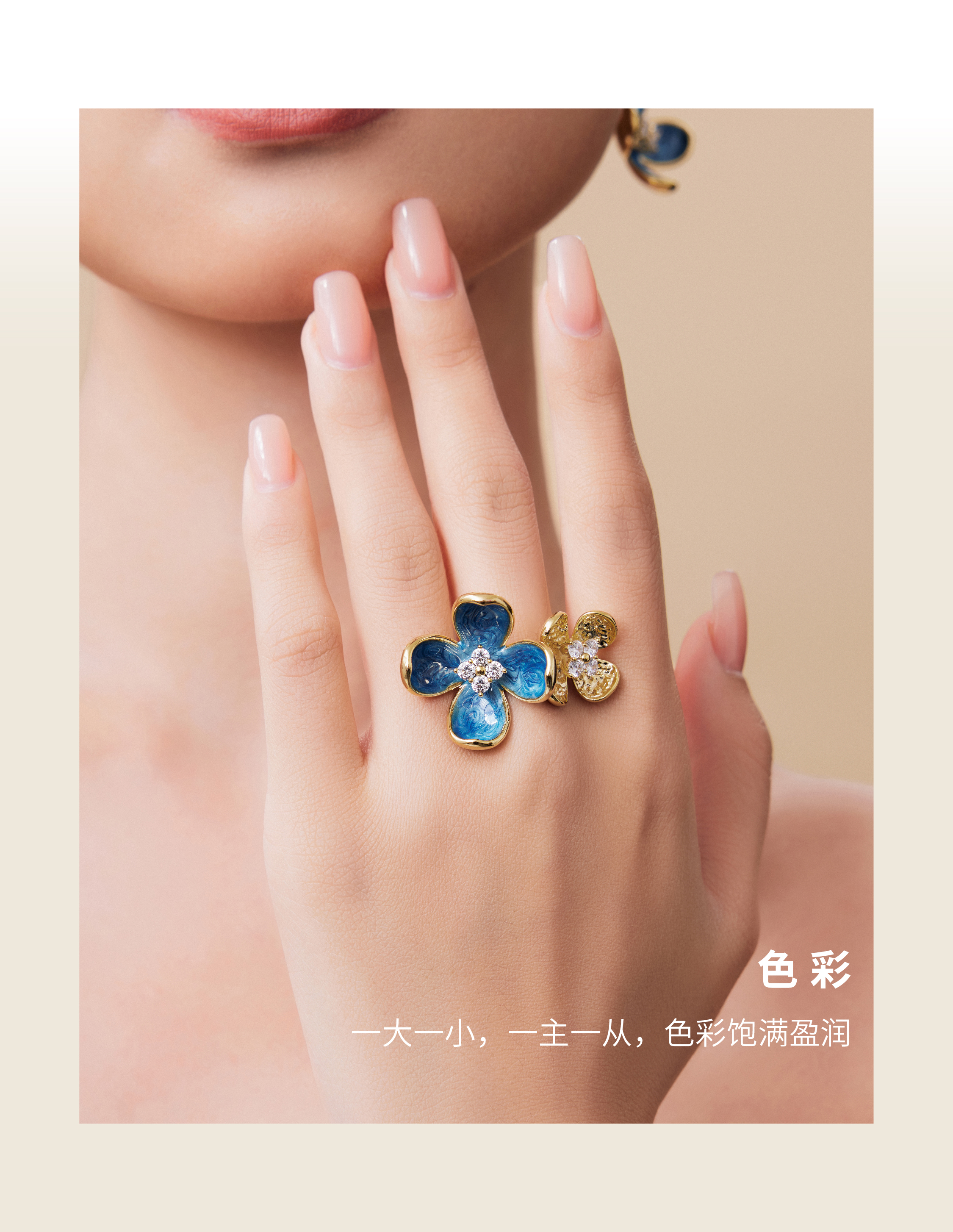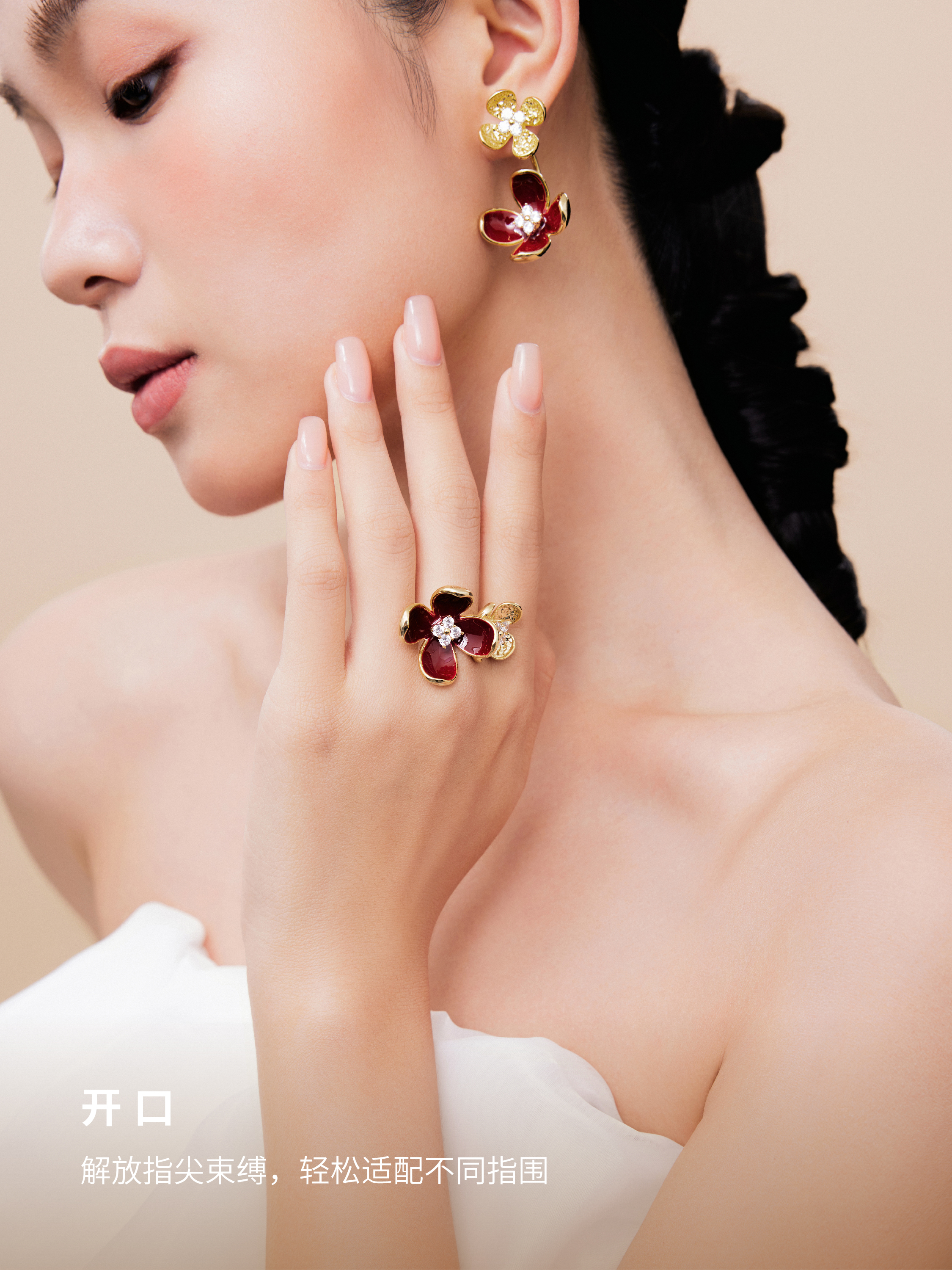 『灼灼桃花』和田白玉珐琅釉戒指