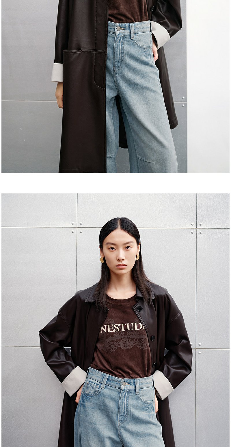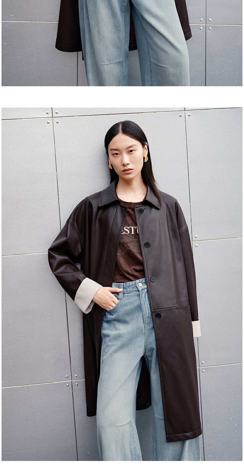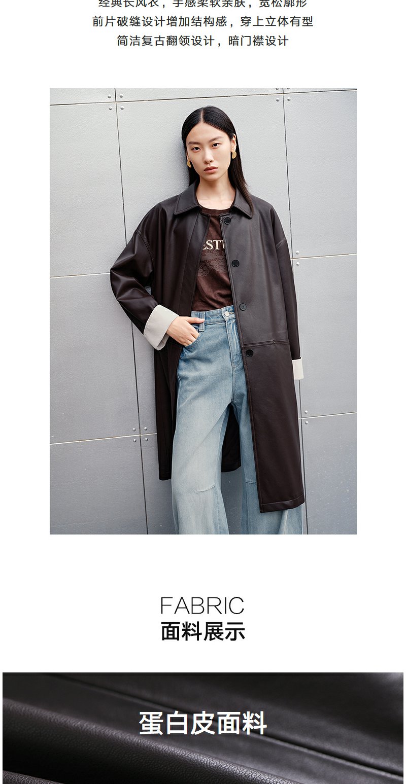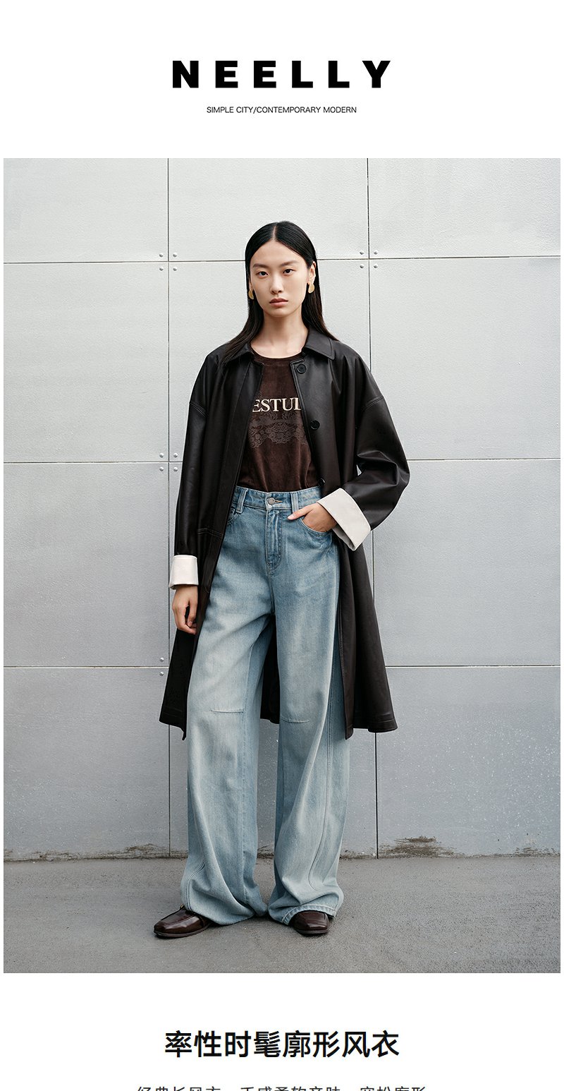 NEELLY纳俪商场同款秋冬新款经典时髦长风衣女复古翻领廓形外套N25091F01145