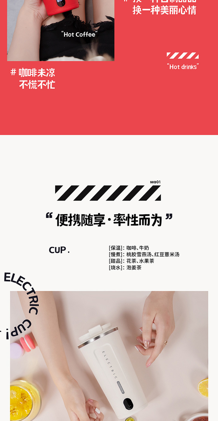 北欧欧慕电热水杯便携式旅行烧水壶小型随身迷你保温加热养生杯