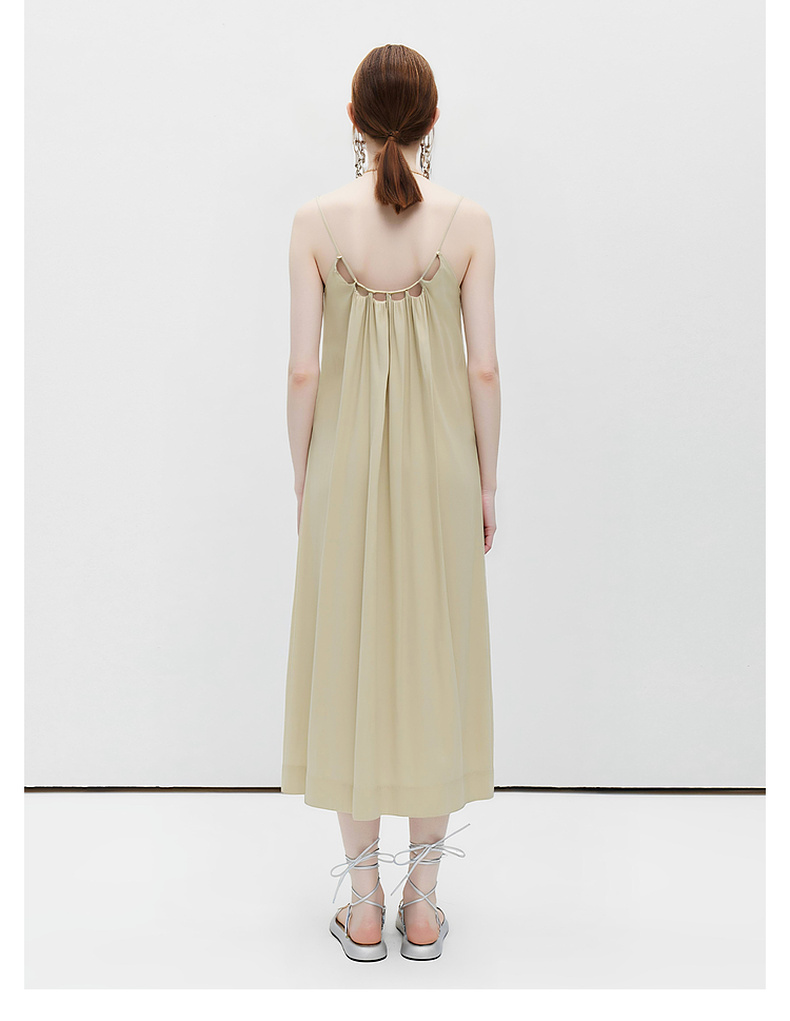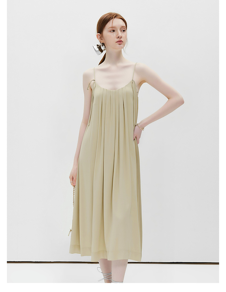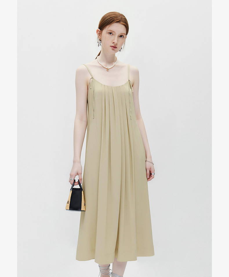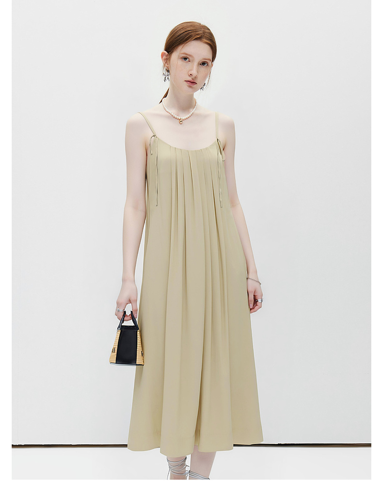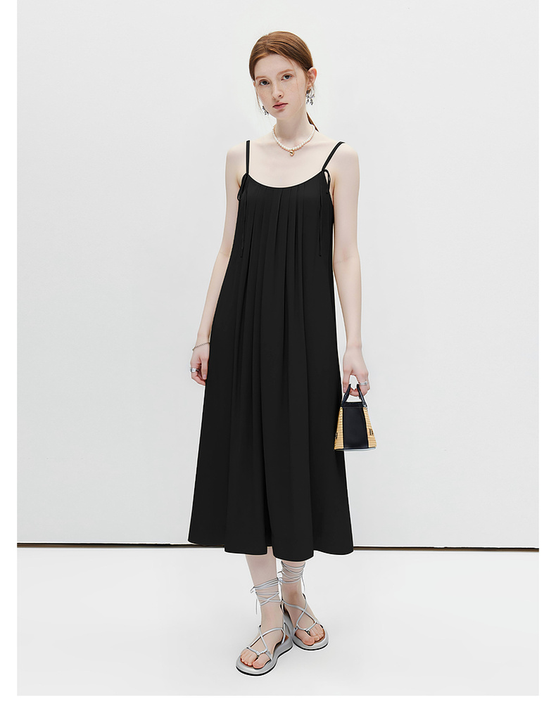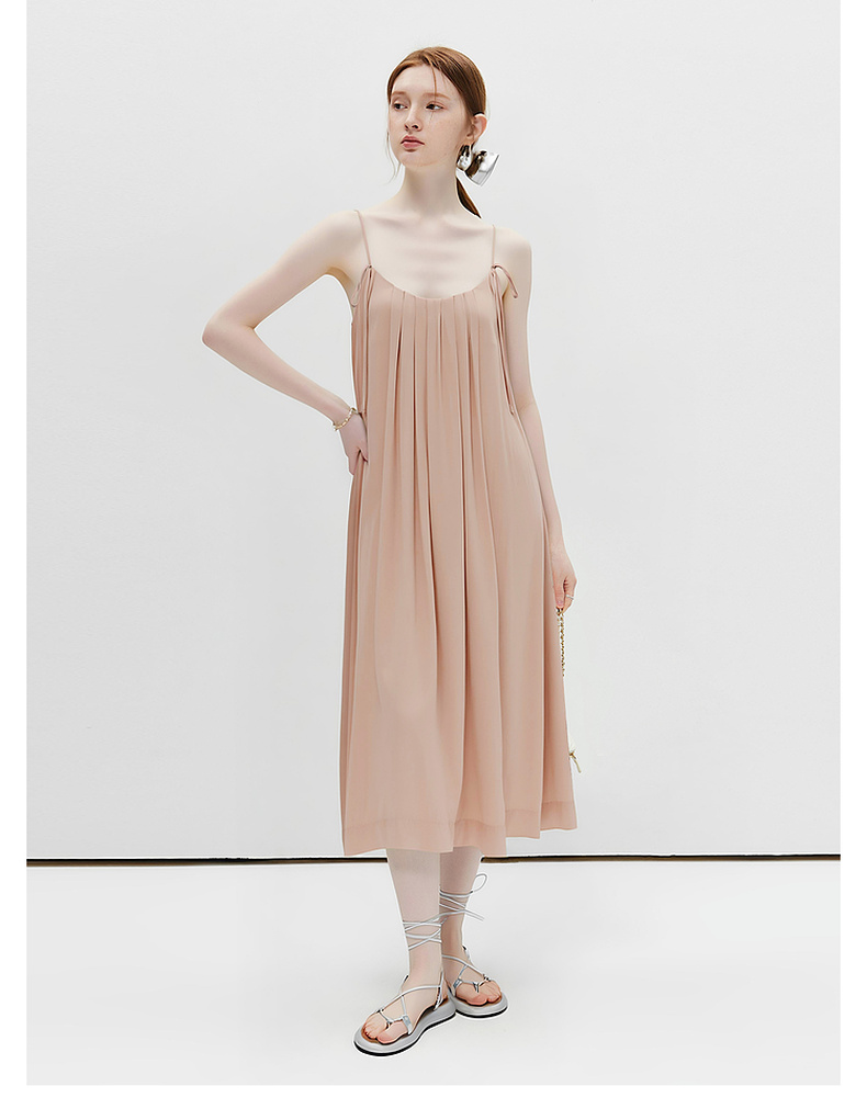 天猫同步【重工立体压褶】拉夏贝尔/La Chapelle设计感小众宽松气质V领百褶吊带裙女吊带压褶连衣裙★