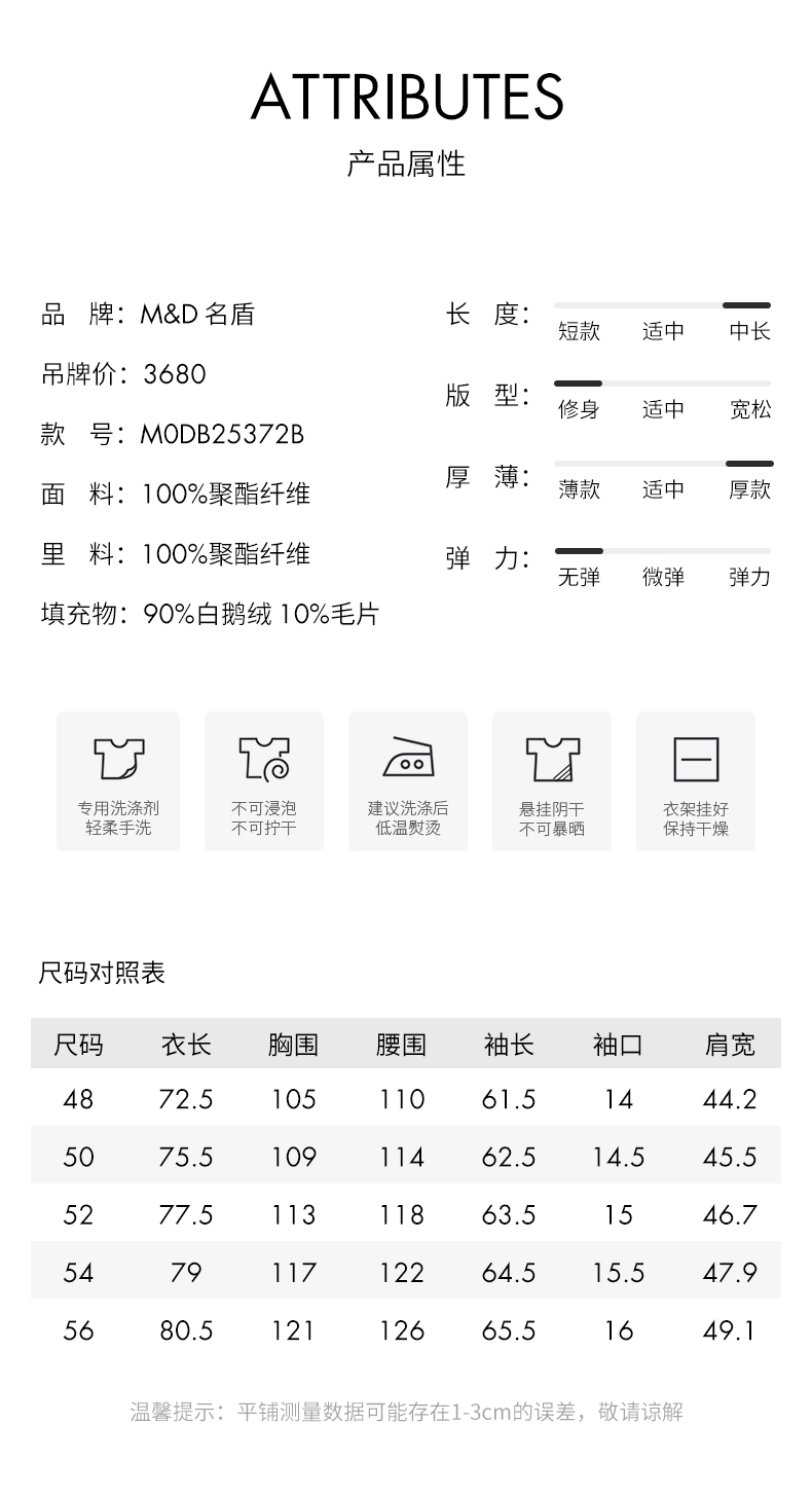 | 填充物: 白鹅绒 | 货号: M0DB25372B |