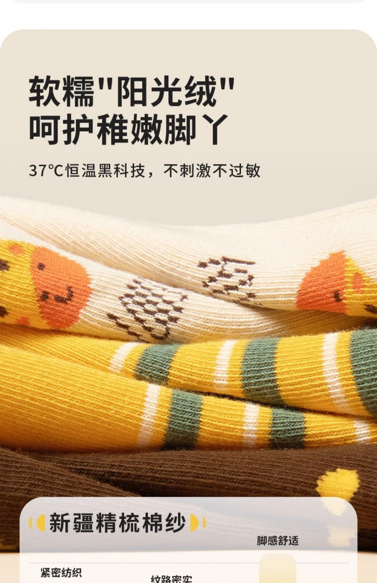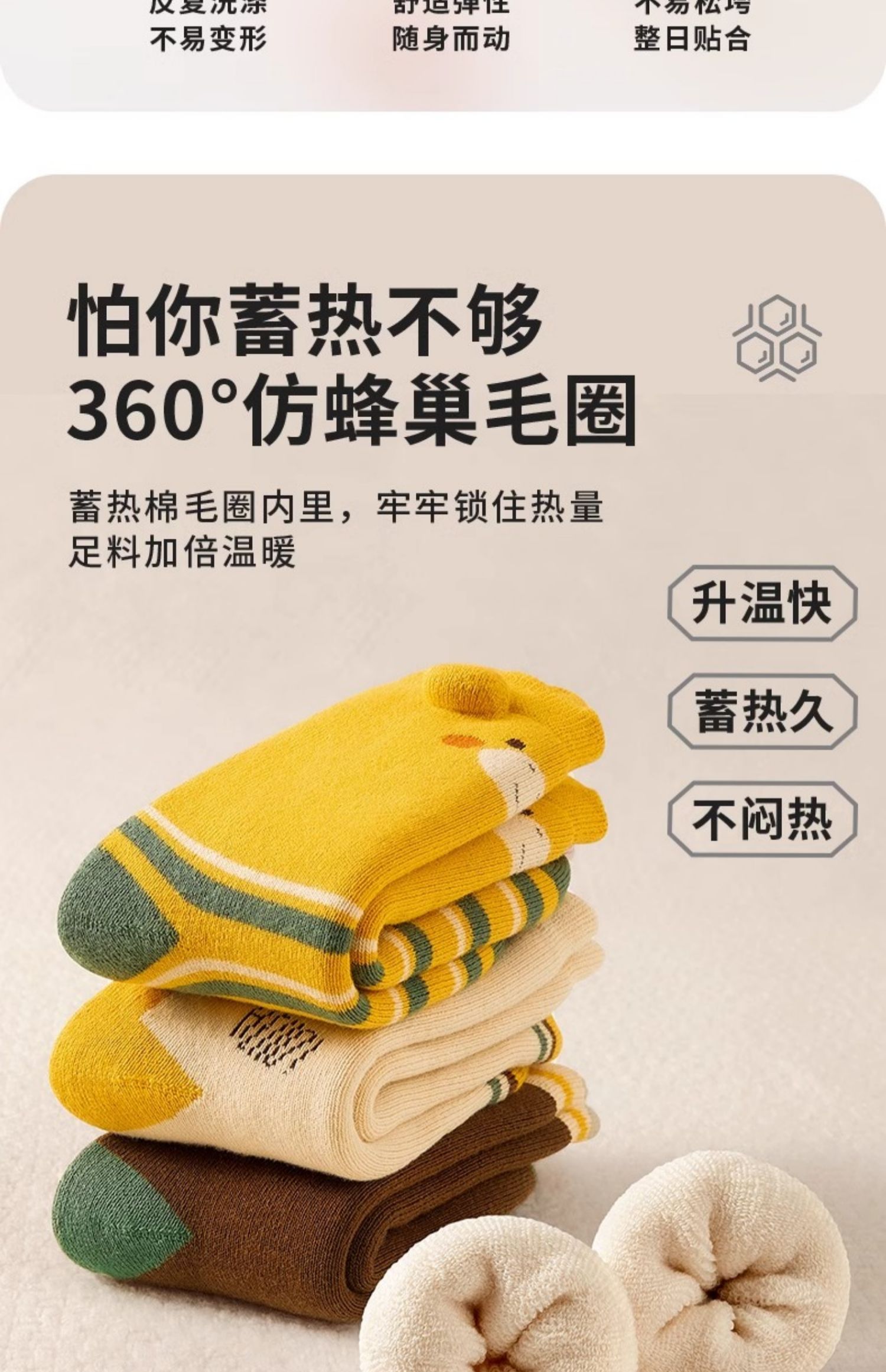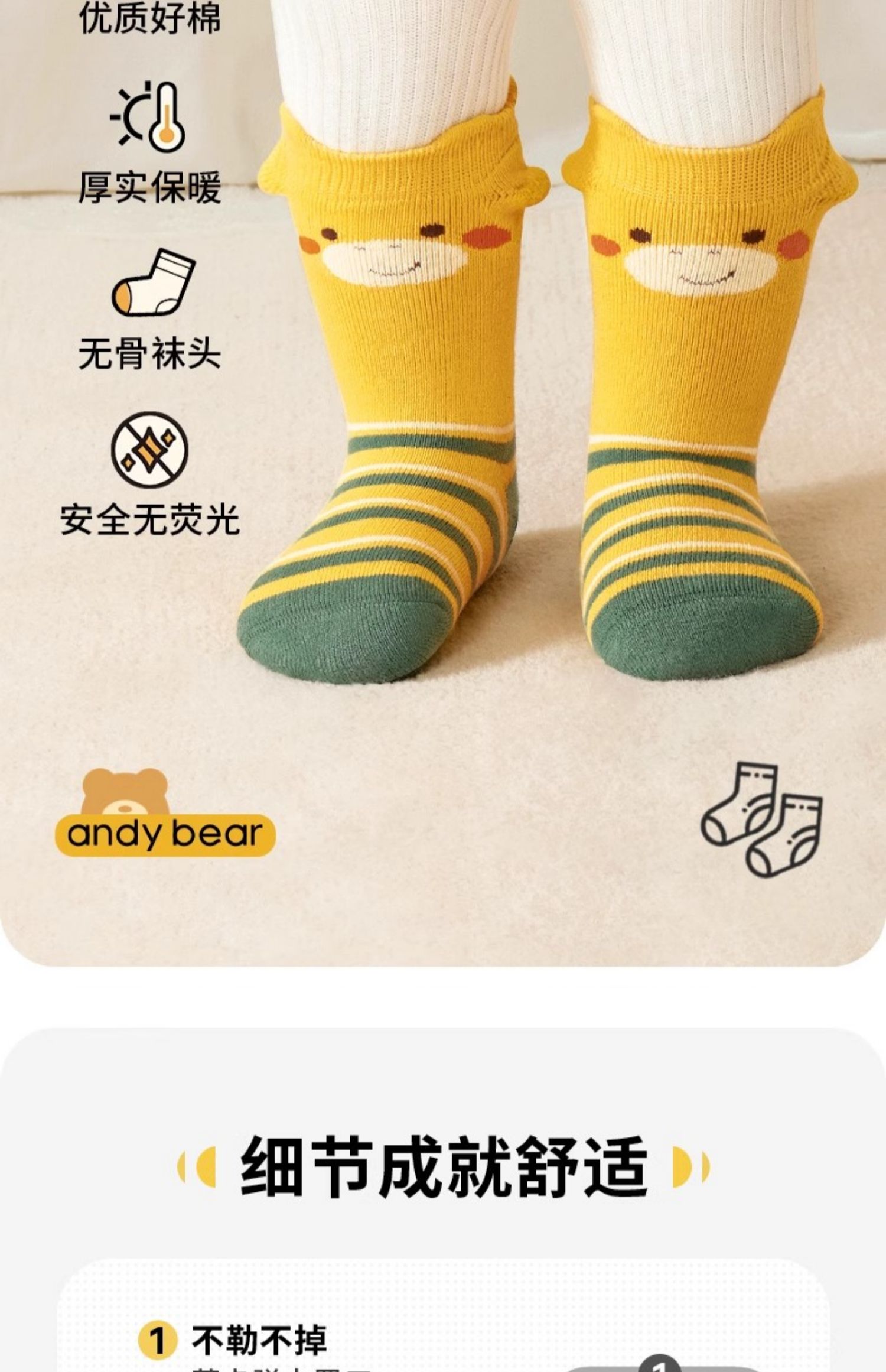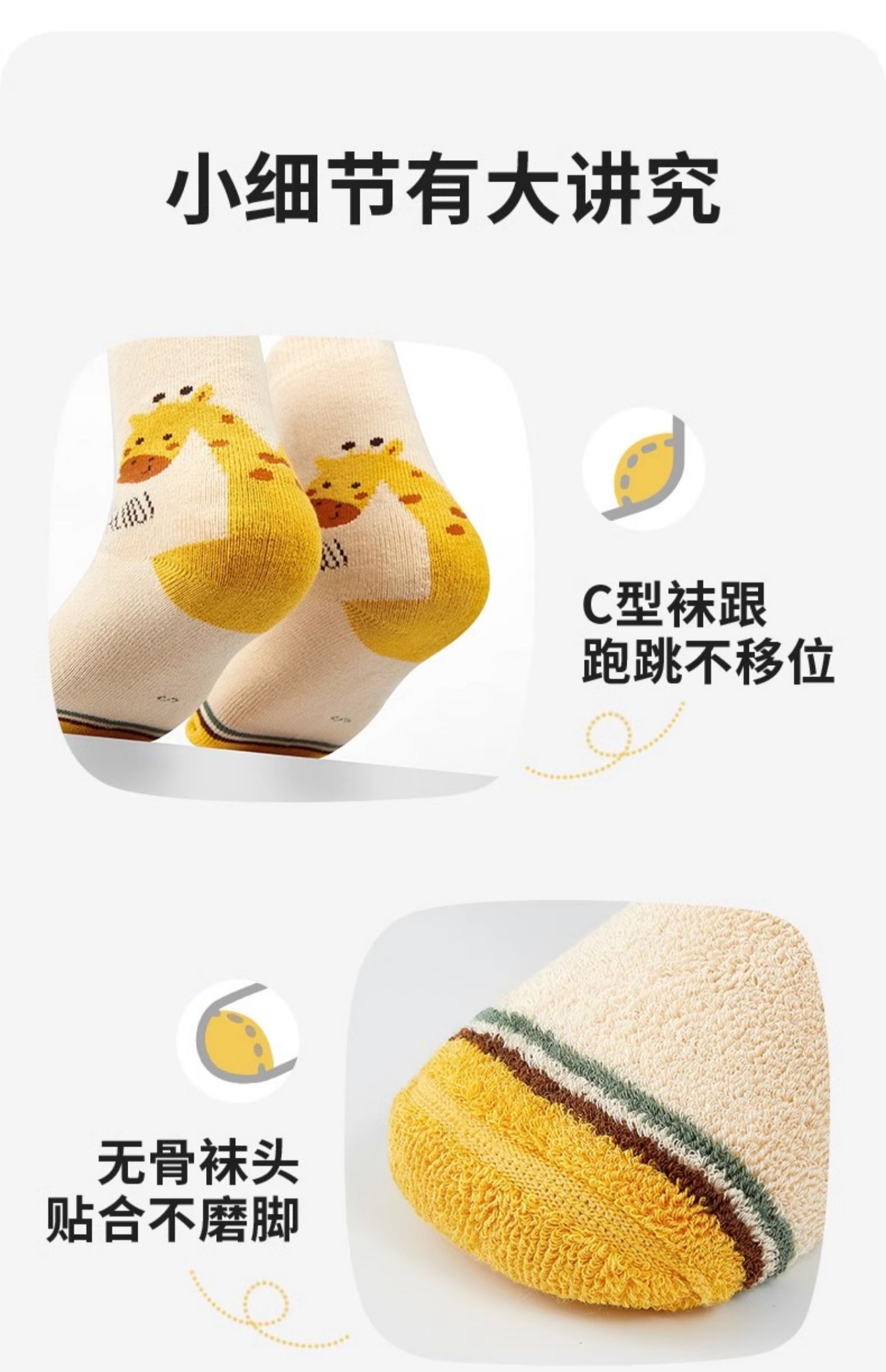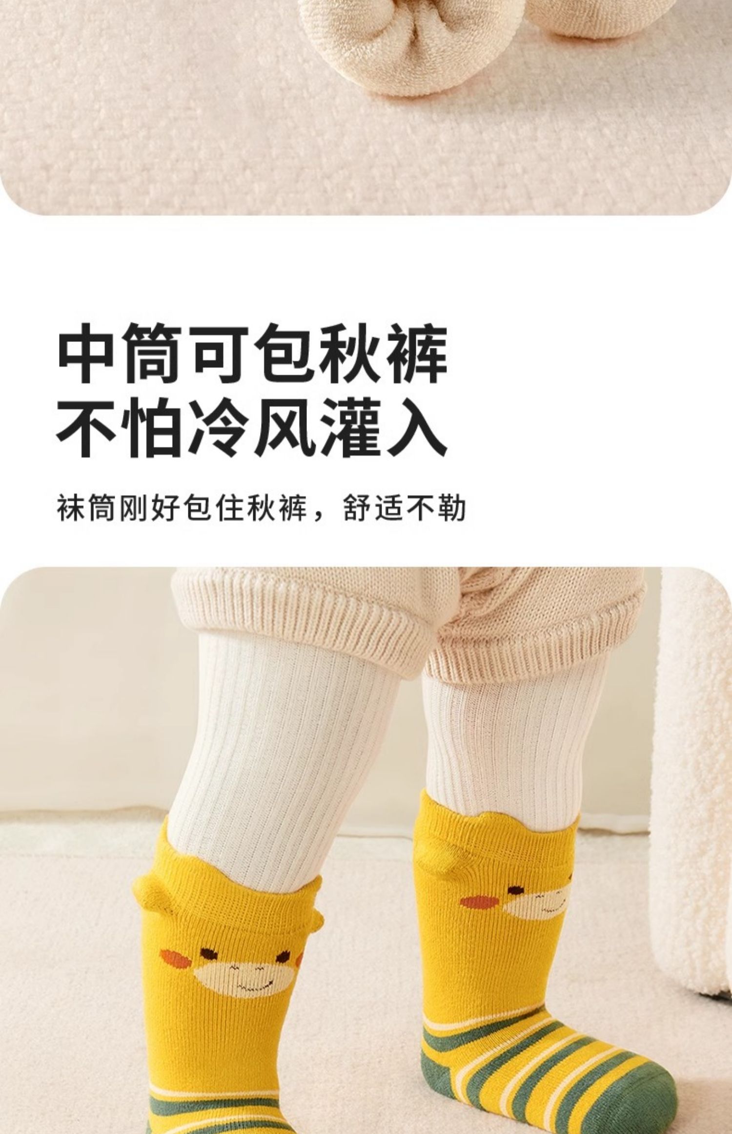 宝宝袜子秋冬婴儿纯棉加厚儿童加绒毛圈袜男宝女童冬季保暖中筒袜