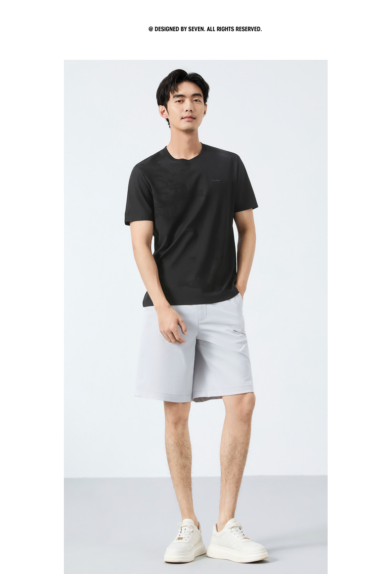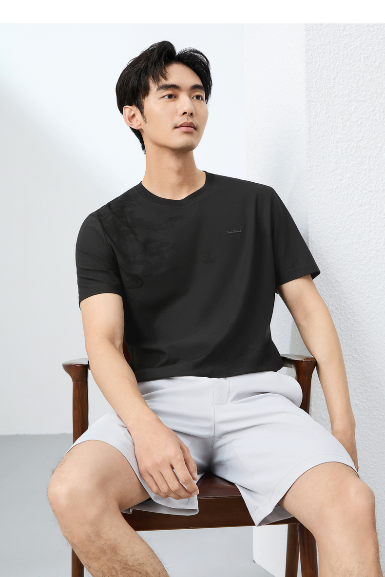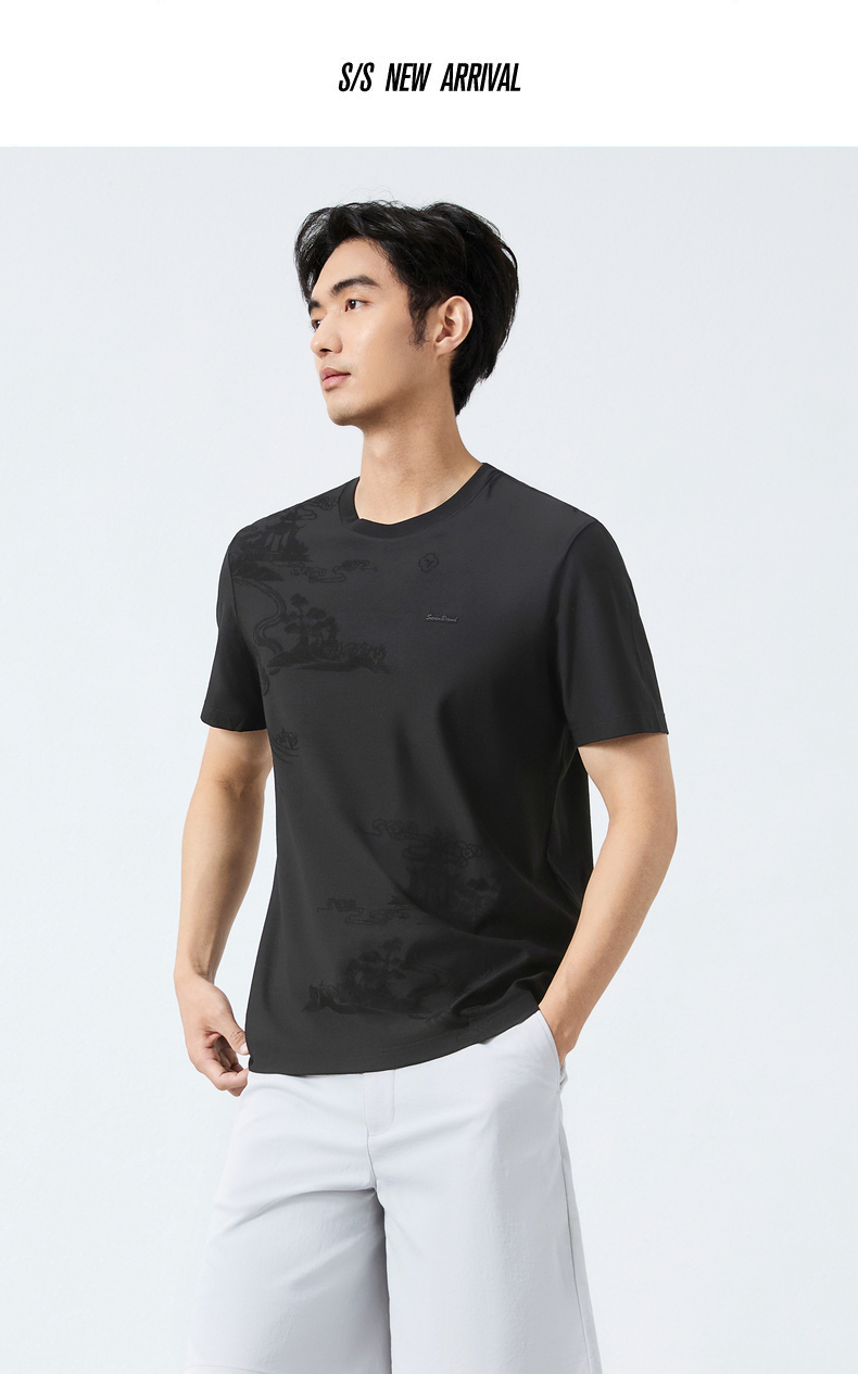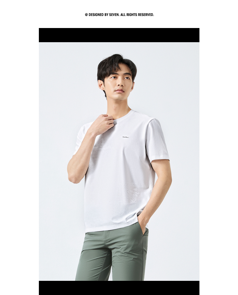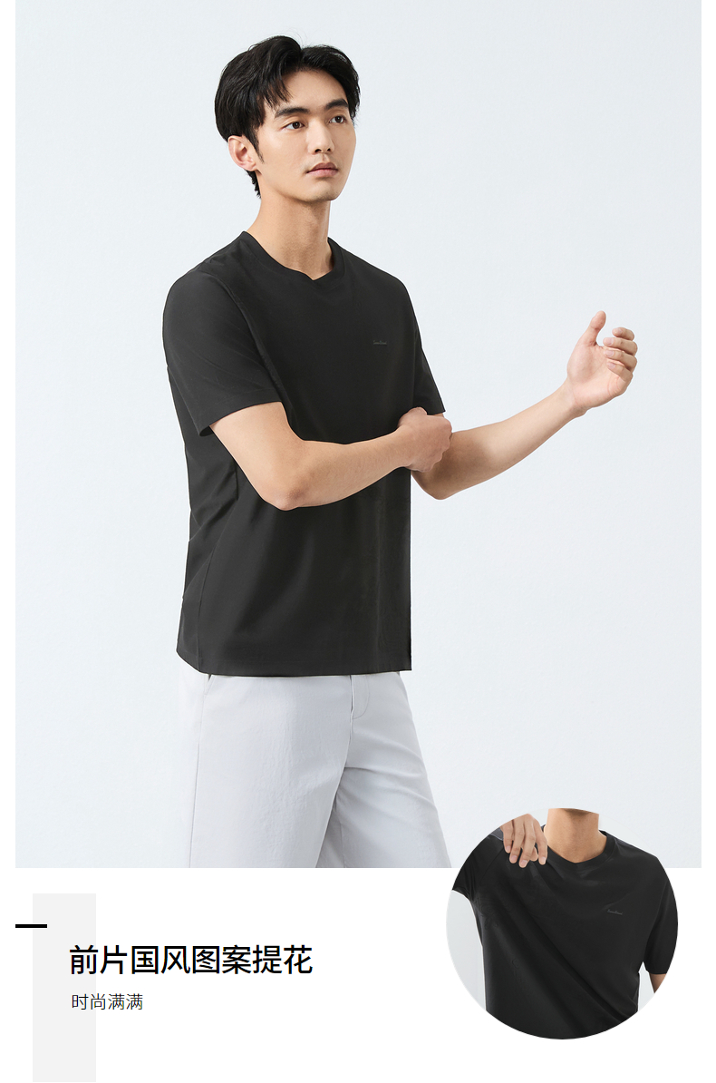 【国风图案T恤】柒牌短袖T恤男夏季2025新款暗纹提花休闲圆领上衣128T70540