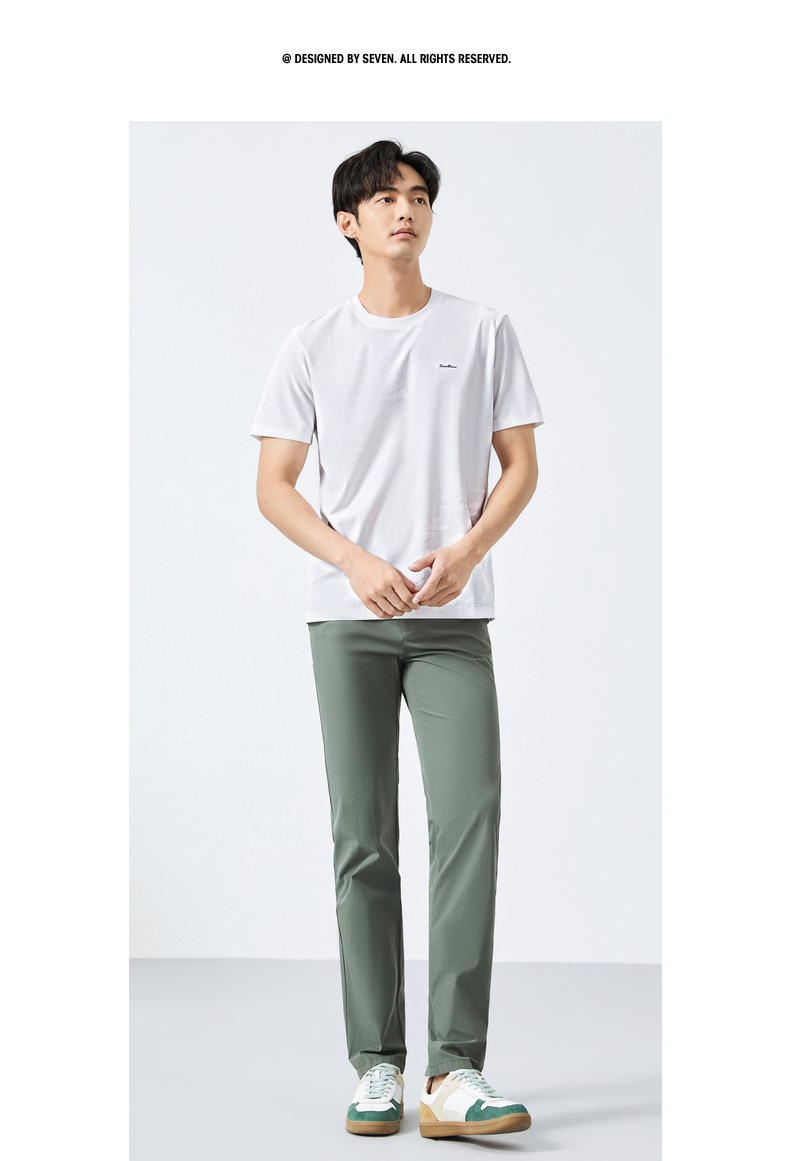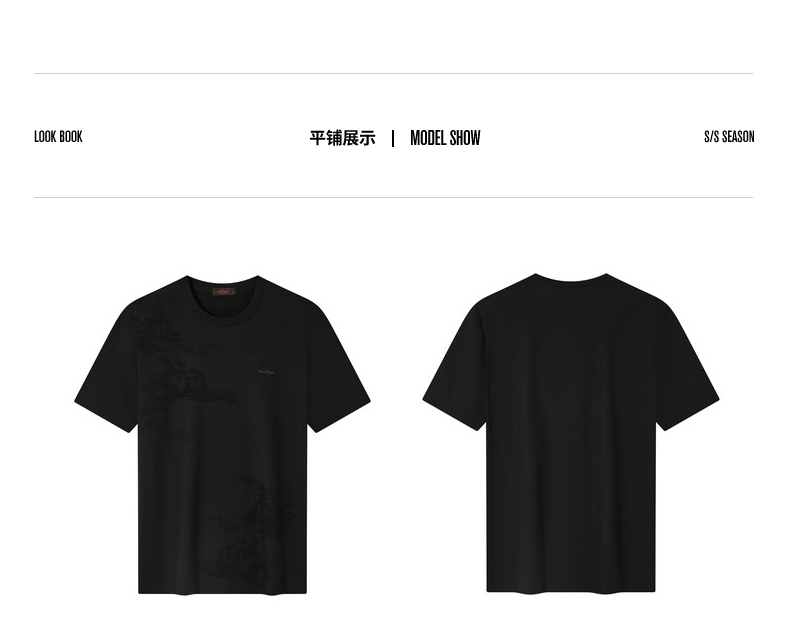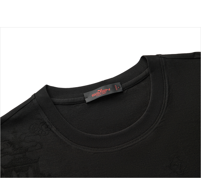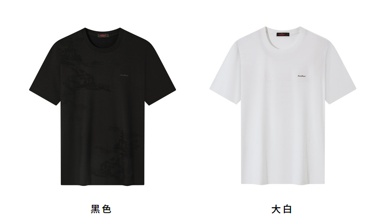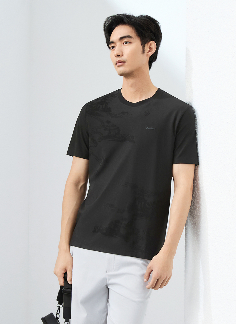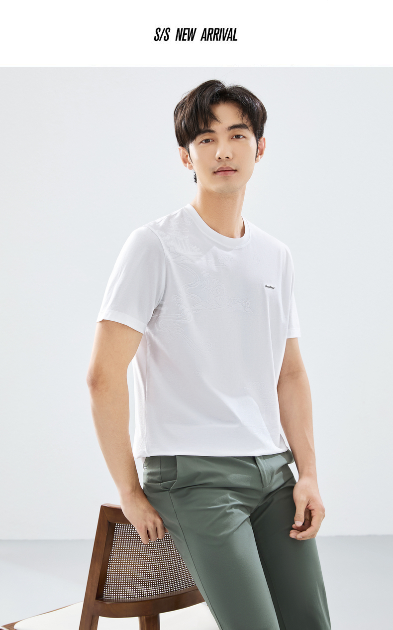 【国风图案T恤】柒牌短袖T恤男夏季2025新款暗纹提花休闲圆领上衣128T70540