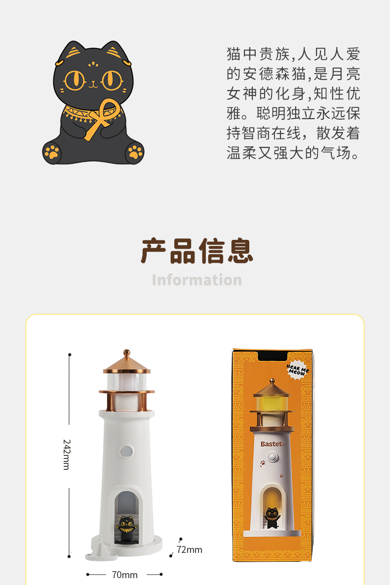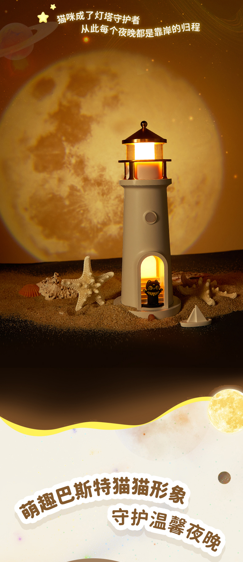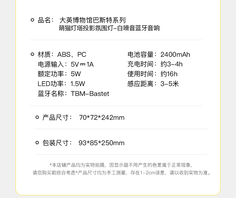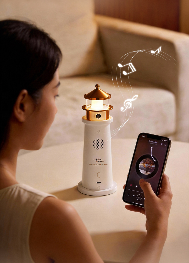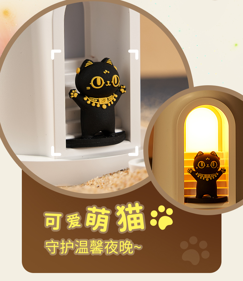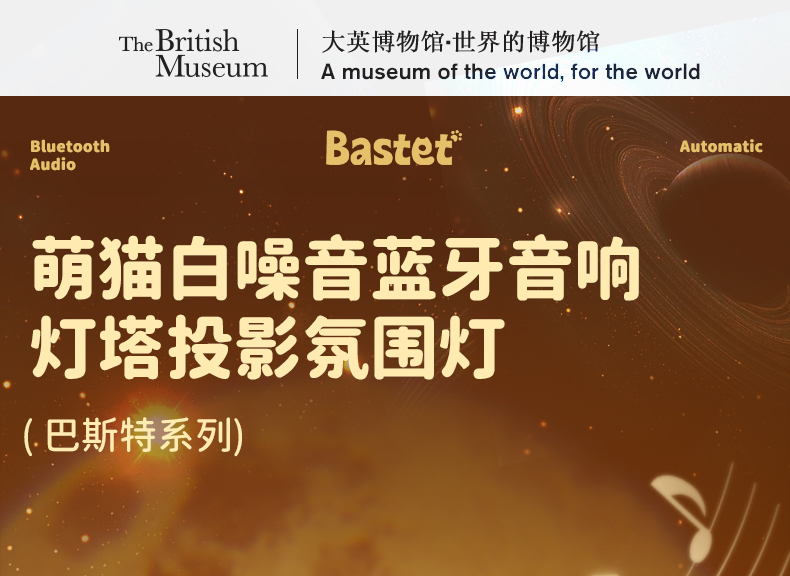 大英博物馆 盖亚·巴斯特系列 萌猫灯塔投影氛围灯-白噪音蓝牙音响