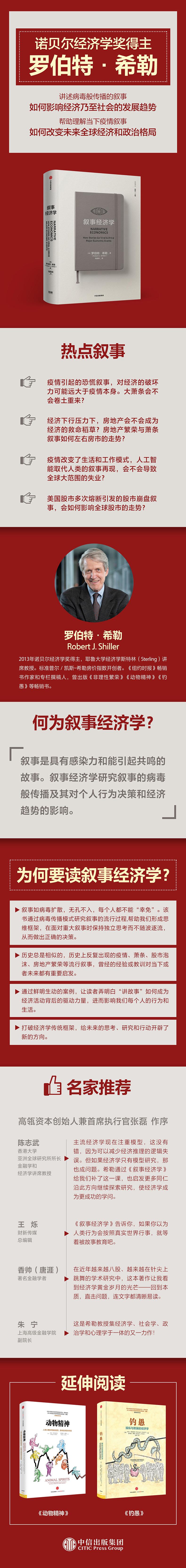 每个人都是听故事长大的。在当下高度联通的小世界中,通过口述、新闻媒体和社交网络传播的流行叙事,无论是关于经济信心或恐慌、房地产繁荣与萧条,还是关于网红、比特币、健康养生,也无论流行的是真相还是谣言,都在影响人们的决策,乃至改变整个经济和社会的走向。然而,固守理性行为人和完全信息假说的经济学家此前却视而不见,远远落后于历史学家、人类学家以及高度敏感的媒体和商界。《叙事经济学》试图填补这一空白。在该书中,诺贝尔经济学奖得主罗伯特·希勒借鉴了流行病学模型,为读者提供了思考流行叙事影响经济和社会生活的全新视角。通过诸多重大事件的回顾,辅以数据分析,希勒展示了流行叙事对历史进程及其中的个体人生的深刻影响,表明对这些流行叙事的经济学思考,可以提高对金融危机、衰退、萧条和其他经济事件的预测能力,帮助我们未雨绸缪,将各种负面冲击的危害降到更低。