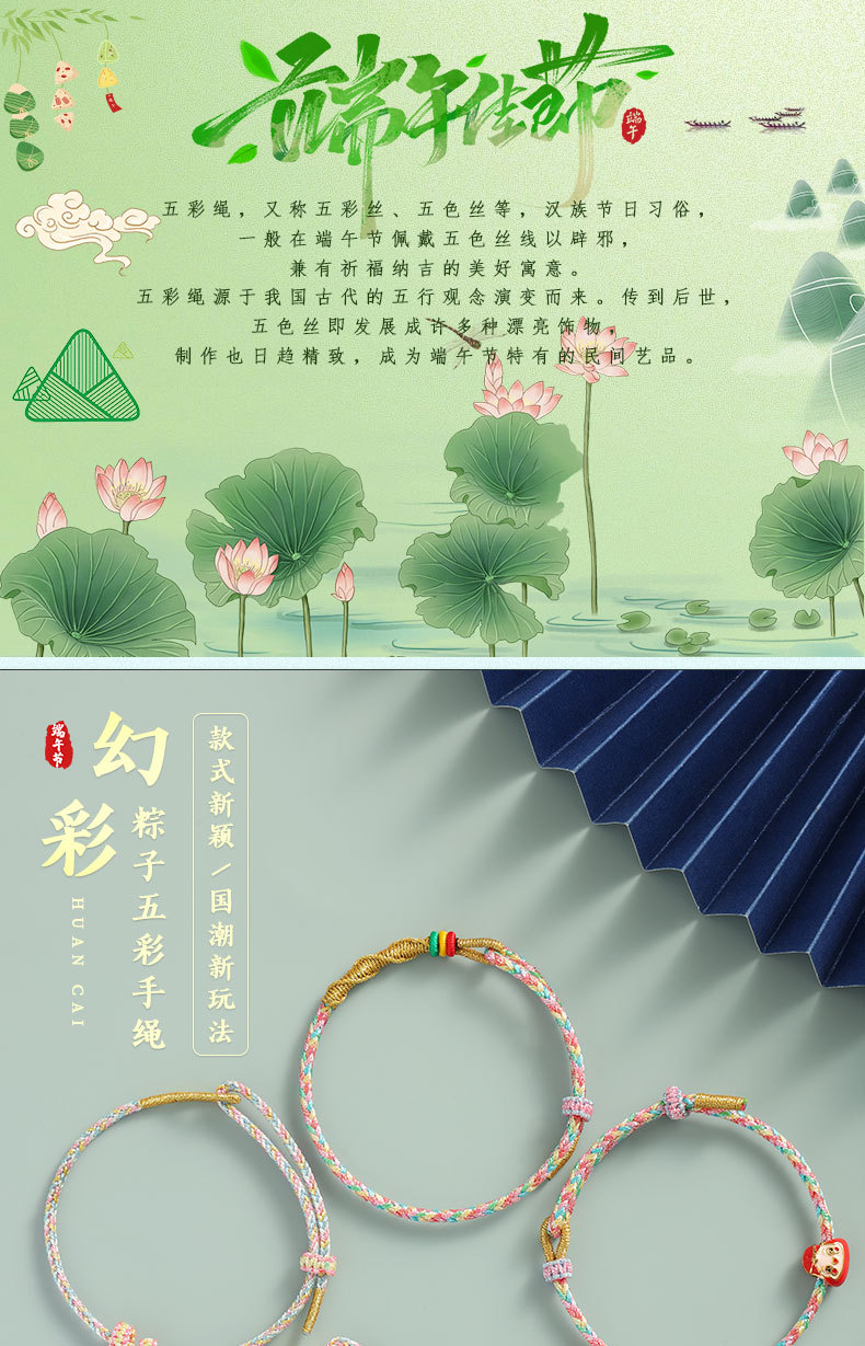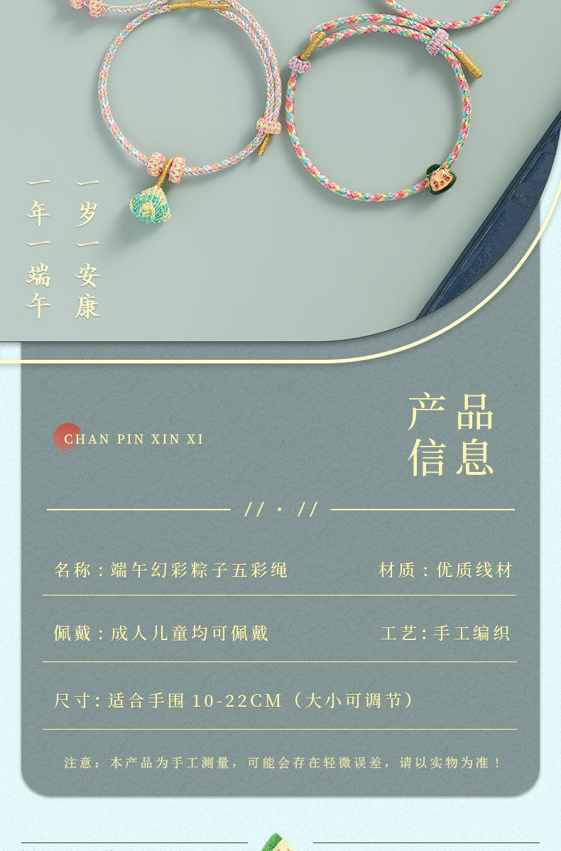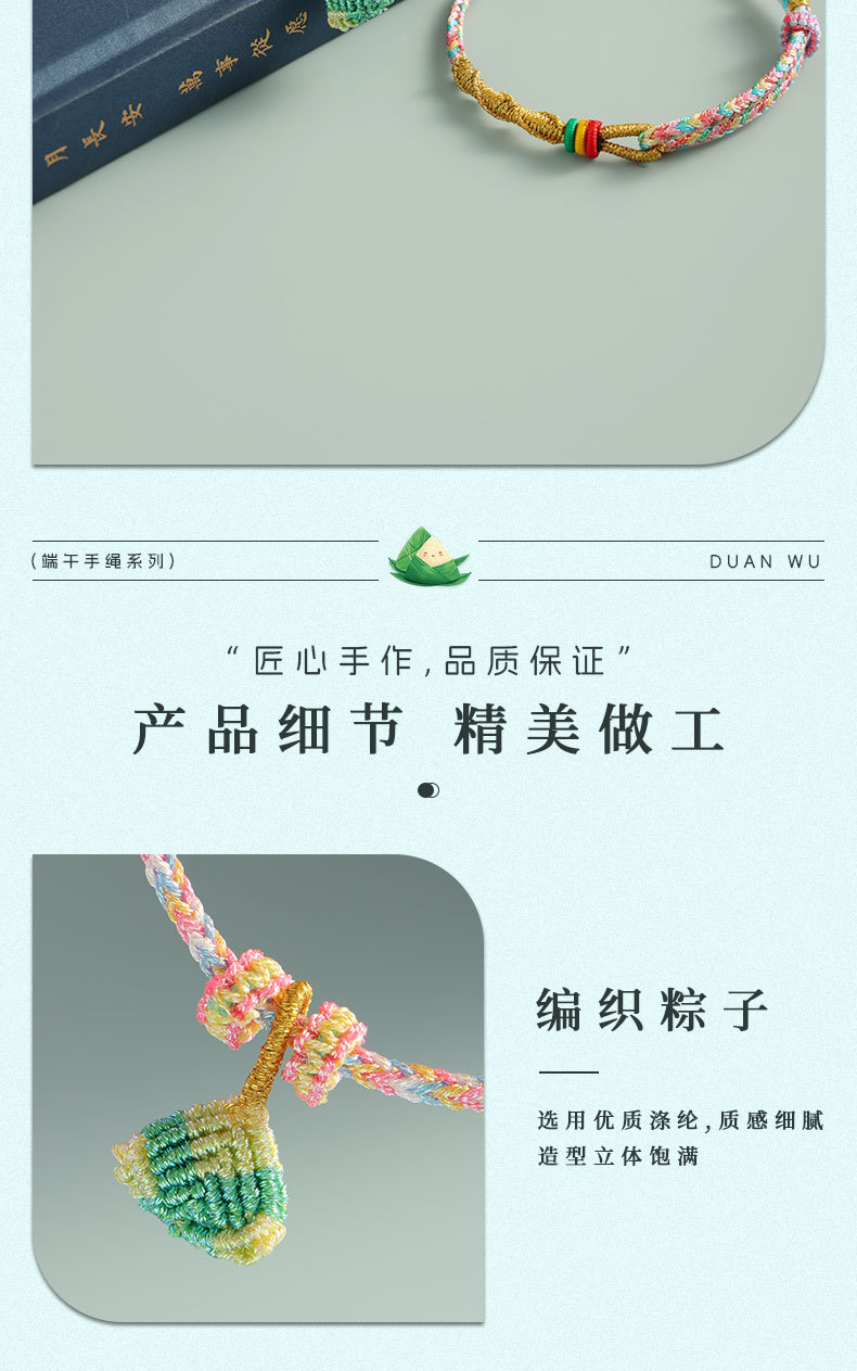 2只装!【端午节五彩绳手链】儿童宝宝幻彩粽子手绳 手工编织五月节五彩线