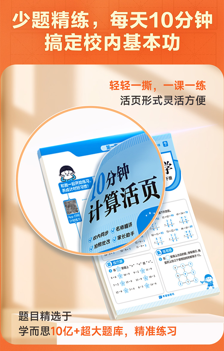 【10分钟活页系列下册】一课一撕,智能陪练,10分钟练透校内基础