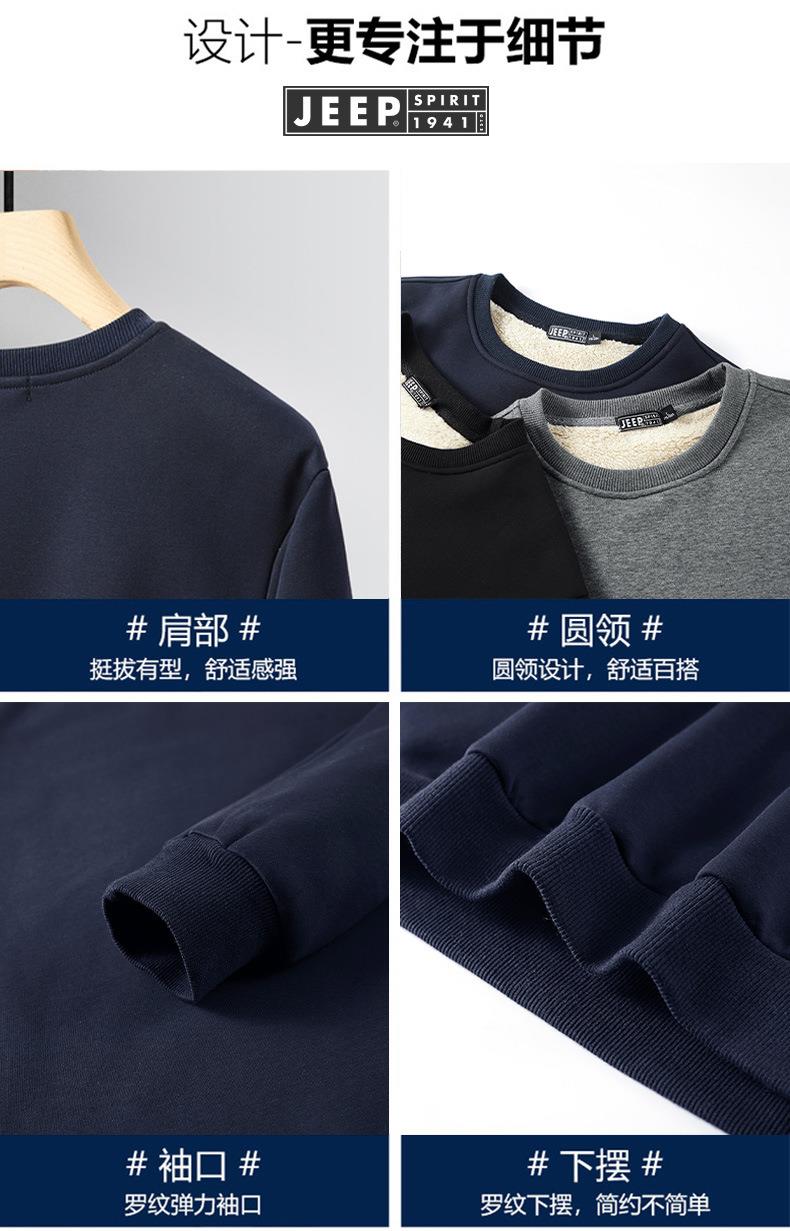 JEEP SPIRIT秋冬绒加厚圆领长袖羊羔绒卫衣宽松羊羔绒卫衣HL6501D