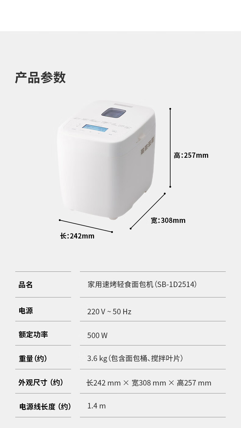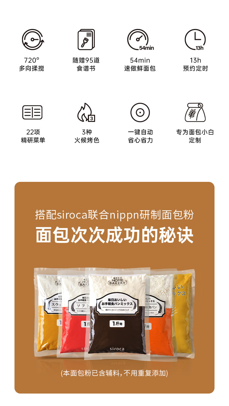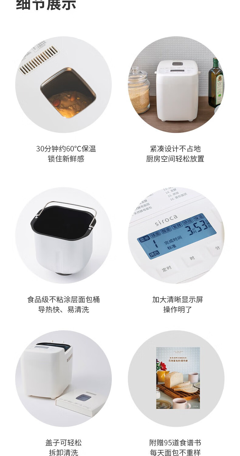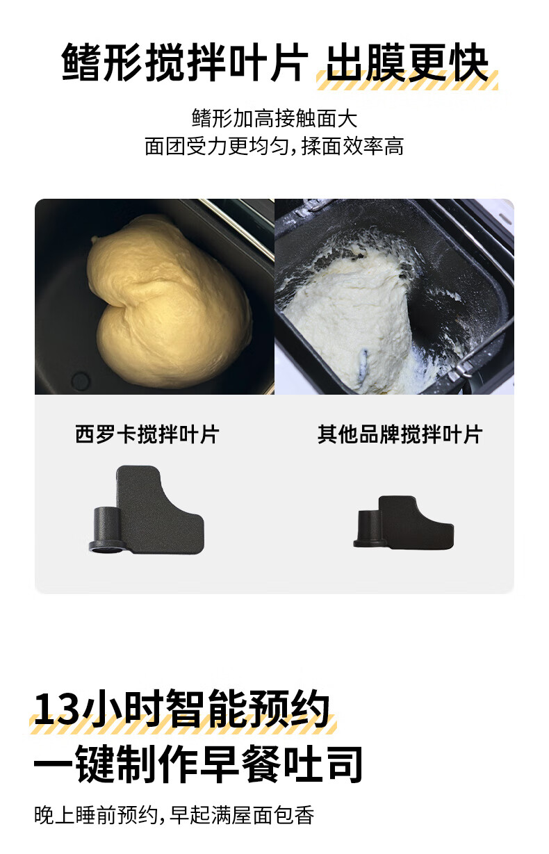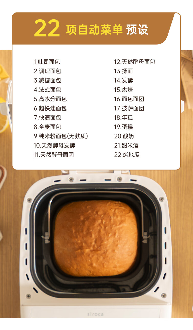 西罗卡面包机全自动烤面包机一体家用多功能揉面机和面发面机吐司机发酵烘焙小型智能早餐机 方小白SB-1D2514