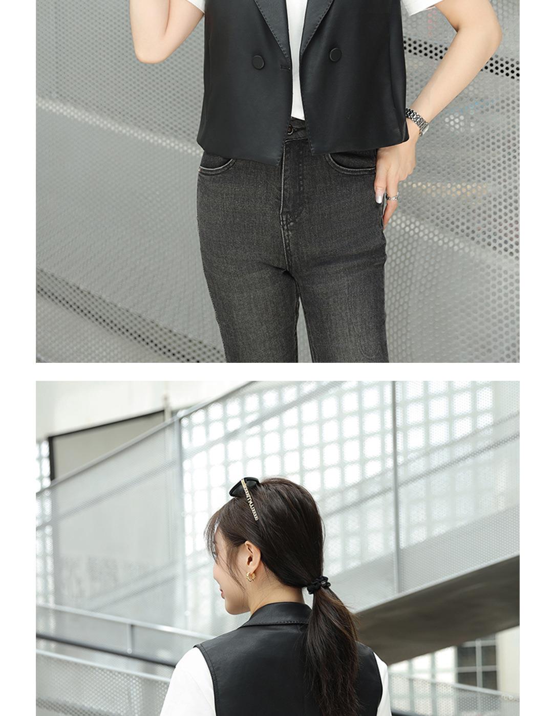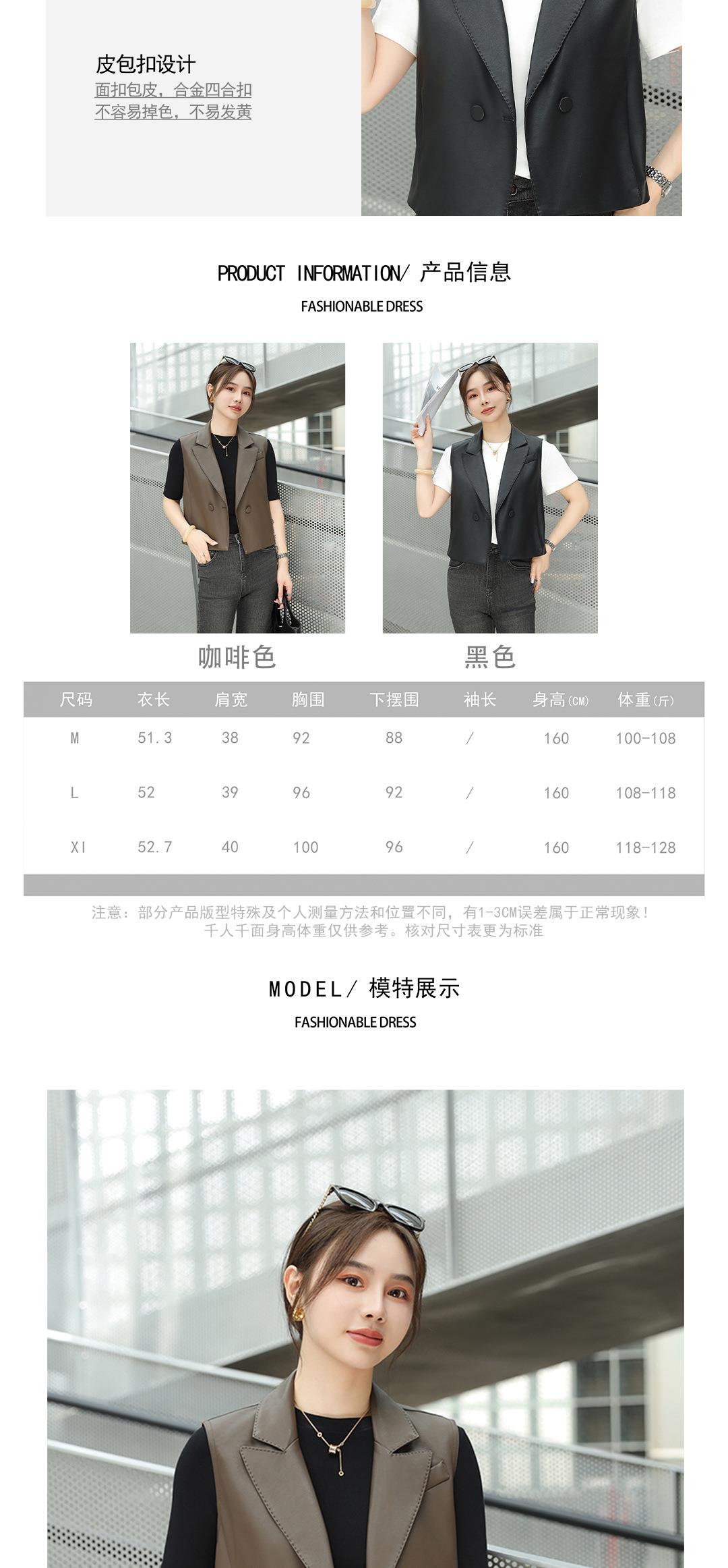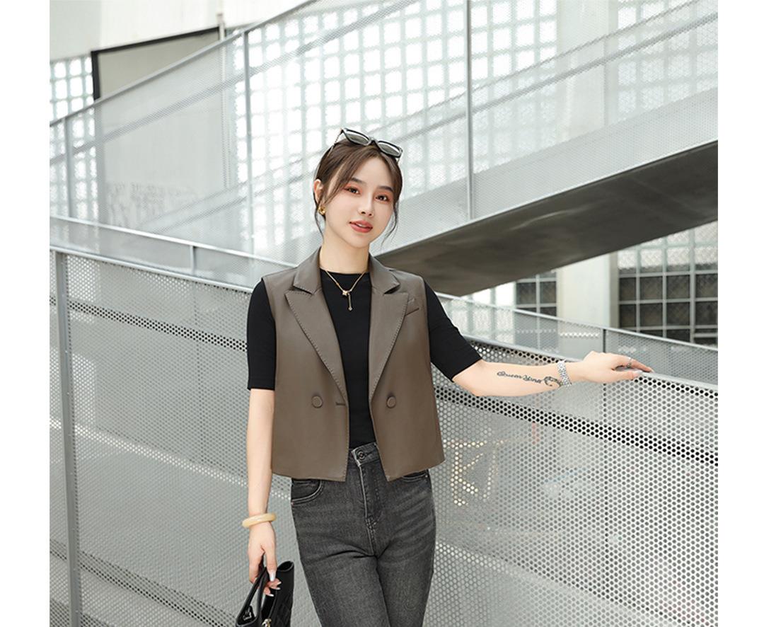 韩版短款皮衣马甲外套女2023秋季新款翻领水洗PU皮衣马夹修身