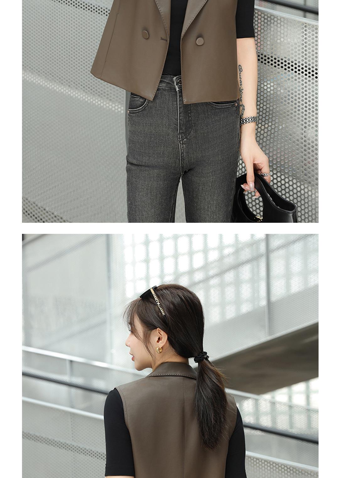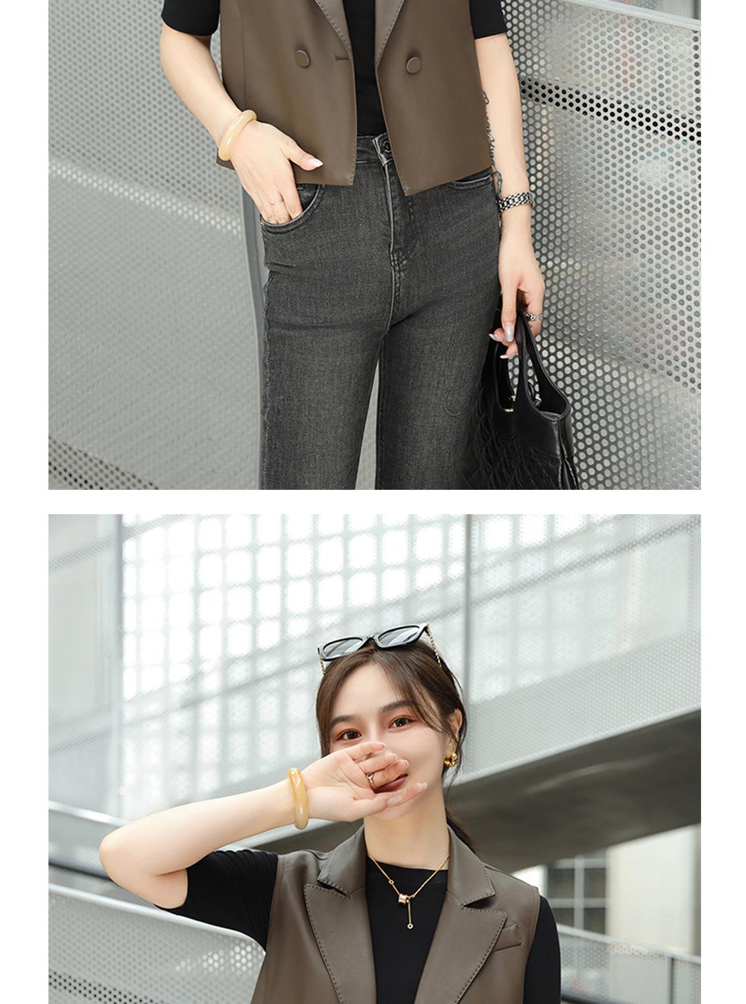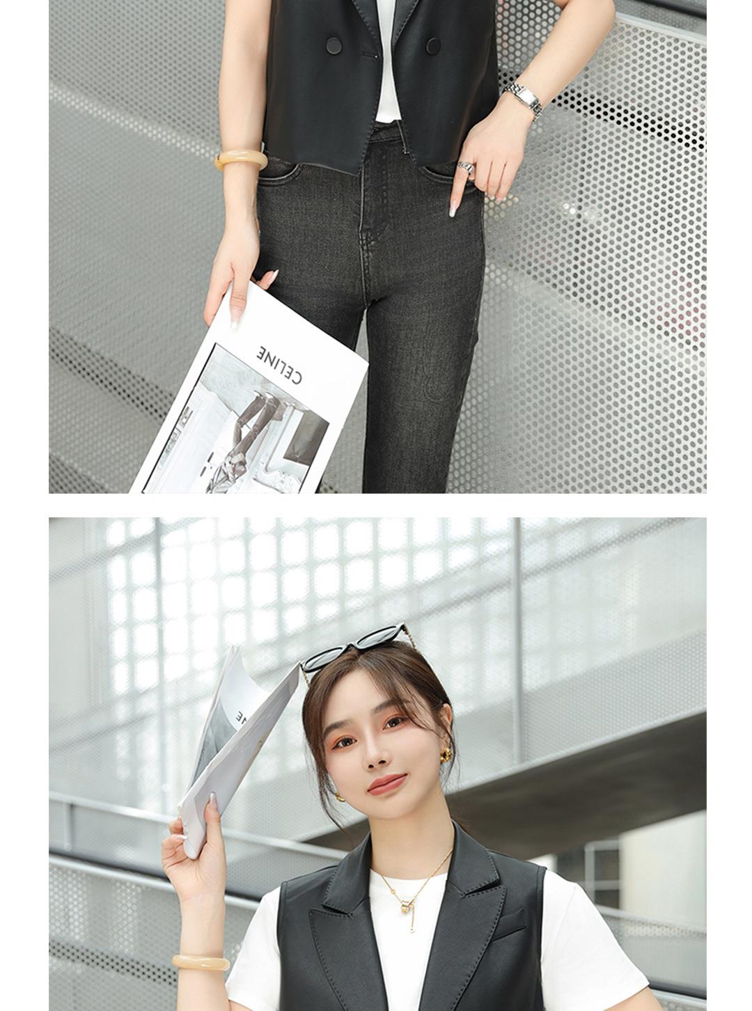 韩版短款皮衣马甲外套女2023秋季新款翻领水洗PU皮衣马夹修身
