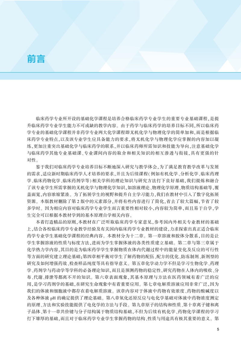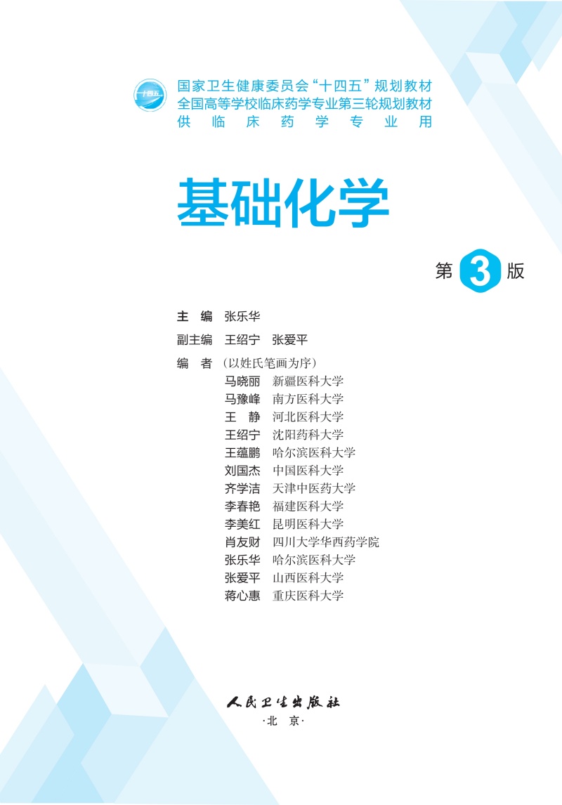 基础化学 第3三版 张乐华 主编 十四五规划教材 全国高等学校临床药学专业第三轮规划教材 供临床药学专业用 人民卫生出版社