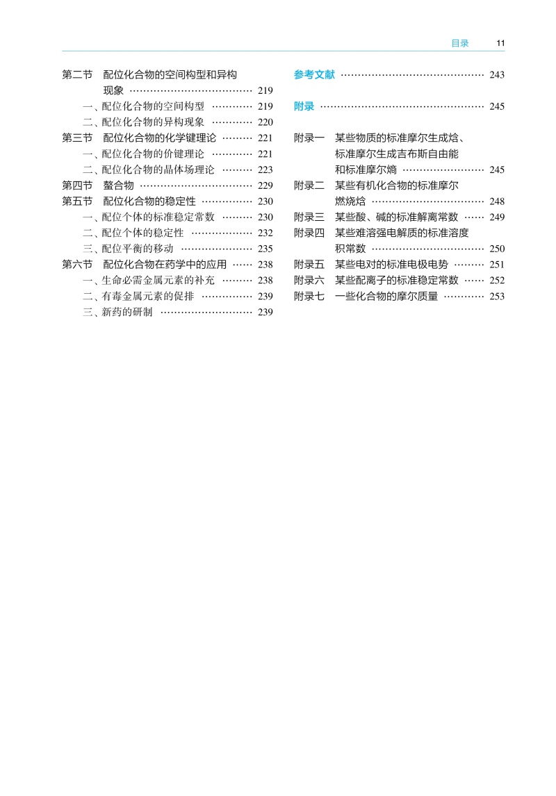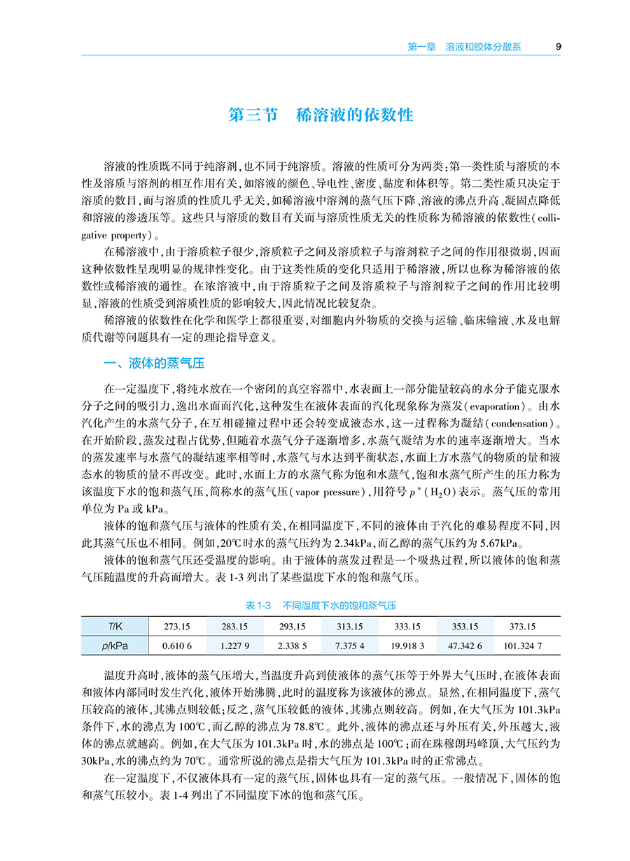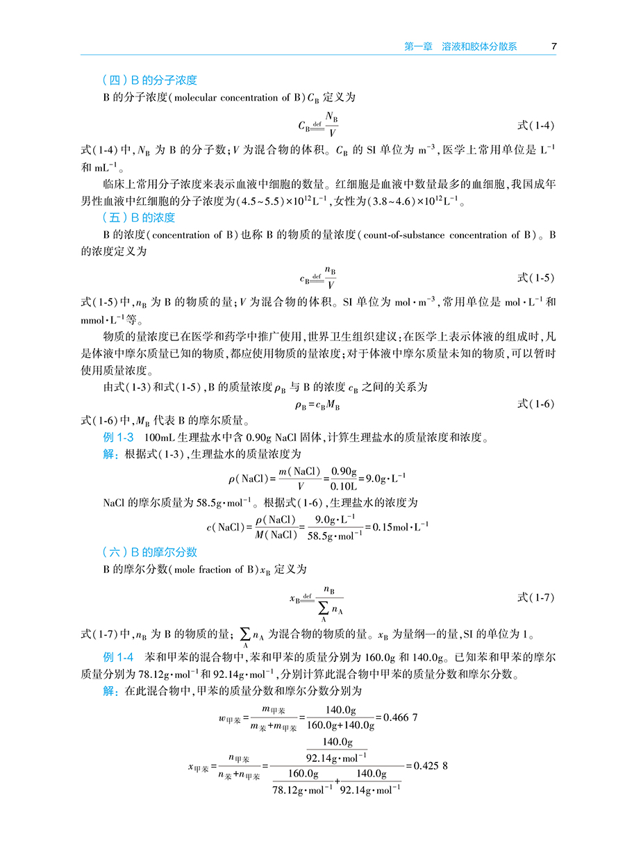 绪论 / 1 一、 化学在临床药学中的地位与作用 / 1 二、 基础化学学习方法 / 1 三、 物理量的表示与运算 / 2 第一章溶液和胶体分散系/ 4 第一节分散系 / 4 一、 分散系的基本概念 / 4 二、 分散系的分类 / 4 第二节混合物和溶液组成的表示方法 / 6 一、 混合物常用的组成表示方法 / 6 二、 溶液组成的表示方法 / 8 第三节稀溶液的依数性 / 9 一、 液体的蒸气压 / 9 二、难挥发非电解质稀溶液的蒸气压下降/ 10 三、难挥发非电解质稀溶液的沸点升高/ 10 四、 非电解质稀溶液的凝固点降低/ 11 五、 稀溶液的渗透压/ 12 第四节溶胶/ 17 一、 溶胶的性质/ 17 二、 溶胶的稳定性与聚沉/ 20 三、 溶胶的制备和净化/ 21 第五节高分子溶液/ 22 一、 高分子溶液的盐析/ 22 二、高分子对溶胶的絮凝作用和保护作用/ 22 三、 高分子溶液的渗透压/ 23 四、 唐南平衡/ 23 第六节凝胶/ 24 一、 凝胶的分类/ 24 二、 凝胶的性质/ 24 第二章化学热力学基础 / 27 第一节热力学第一定律/ 27 一、 热力学的基本概念/ 27 二、热力学能与热力学第一定律的数学表达式/ 30 三、 焓/ 31 第二节热化学/ 31 一、 反应进度/ 31 二、 热力学标准状态/ 33 三、化学反应的摩尔热力学能变和摩尔焓变/ 33 四、 热化学方程式/ 35 五、 赫斯定律/ 36 六、化学反应的标准摩尔焓变的计算/ 37 第三节热力学第二定律/ 39 一、 自发过程/ 40 二、 影响化学反应方向的因素/ 40 三、 热力学第二定律的数学表达式/ 42 第四节化学反应的摩尔吉布斯自由能变/ 42 一、利用反应的吉布斯自由能变判断化学反应的方向/ 42 二、化学反应的摩尔吉布斯自由能变的计算/ 43 三、温度对化学反应的摩尔吉布斯自由能变的影响/ 46 第五节热力学在生物化学中的应用/ 47 一、 生化标准状态/ 47 二、 生物体内的耦合反应/ 47 第三章化学平衡 / 51 第一节可逆反应与化学平衡/ 51 一、 可逆反应/ 51 二、 化学平衡/ 52 第二节标准平衡常数/ 52 一、 标准平衡常数的定义/ 52 二、 标准平衡常数表达式/ 53 第三节标准平衡常数的测定与计算/ 54 一、 标准平衡常数的测定/ 54 二、 标准平衡常数的计算/ 54 第四节标准平衡常数的应用/ 56 一、 计算平衡组成/ 56 二、 判断反应进行的限度/ 57 三、 预测化学反应的方向/ 58 第五节化学平衡的移动/ 59 一、 浓度对化学平衡的影响/ 59 二、压力和惰性气体对化学平衡的影响/ 59 三、 温度对化学平衡的影响/ 61 第四章相平衡 / 65 第一节相律/ 65 一、 基本概念/ 65 二、 相律的数学表达式/ 66 第二节单组分系统的相平衡/ 67 一、 水的相图/ 67 二、 CO2的相图 / 68 第三节二组分液体混合物的相平衡/ 68 一、理想液体混合物的蒸气压 ̄组成相图/ 69 二、理想液体混合物的温度 ̄组成相图/ 70 三、 杠杆规则/ 70 四、 精馏原理/ 72 第四节二组分液体混合物的相图/ 72 一、 蒸气压 ̄液相组成相图 / 72 二、 压力 ̄组成相图 / 73 三、 温度 ̄组成相图 / 74 第五章化学动力学/ 77 第一节化学反应速率及其表示方法/ 78 一、化学反应速率的定义和表示方法/ 78 二、 消耗速率和生成速率/ 79 第二节化学反应速率理论简介/ 79 一、 碰撞理论/ 79 二、 过渡状态理论/ 80 第三节浓度对化学反应速率的影响/ 82 一、 元反应和复合反应/ 82 二、 质量作用定律/ 82 三、 反应级数和反应分子数/ 83 四、 简单级数反应/ 83 第四节温度对化学反应速率的影响/ 88 一、 范托夫定律/ 88 二、 阿伦尼乌斯方程/ 88 第五节催化剂对化学反应速率的影响/ 90 一、 催化剂与催化作用/ 90 二、 酶催化反应/ 91 第六章表面现象 / 93 第一节表面吉布斯自由能和表面张力/ 93 一、 表面吉布斯自由能/ 93 二、 表面张力/ 94 第二节弯曲液面的表面现象/ 95 一、 弯曲液面的附加压力/ 95 二、 弯曲液面的蒸气压/ 96 三、 液体的润湿作用/ 97 四、 毛细管现象/ 98 第三节溶液表面的吸附/ 99 一、 溶液表面的吸附现象/ 99 二、 吉布斯吸附等温式/ 99 三、 分子在溶液表面的定向排列 / 100 第四节表面活性剂 / 100 一、 表面活性剂的分类 / 100 二、 胶束和临界胶束浓度 / 101 三、 表面活性剂的作用 / 101 第七章电解质溶液 / 105 第一节强电解质溶液 / 105 一、离子平均活度和平均活度因子 / 105 二、 离子强度 / 107 三、德拜 ̄休克尔离子氛模型及极限公式 / 107 第二节酸碱理论 / 109 一、 酸碱电离理论 / 109 二、 酸碱质子理论 / 109 三、 酸碱电子理论 / 110 第三节水的解离平衡和水溶液的 pH / 111 一、 水的解离平衡 / 111 二、 水溶液的 pH / 112 第四节弱酸、弱碱的解离平衡 / 112 一、 一元弱酸的解离平衡 / 112 二、 一元弱碱的解离平衡 / 113 三、 多元酸的解离平衡 / 113 四、 多元碱的解离平衡 / 114 五、共轭酸碱对中弱酸的Ka 与其共轭碱的 Kb 的关系 / 114 第五节酸、碱溶液H3O+、OH-浓度的计算 / 115 一、一元弱酸溶液H3O+浓度的计算 / 115 二、一元弱碱溶液OH-浓度的计算 / 117 三、 多元酸溶液 H3O+浓度的计算/ 117 四、 多元碱溶液 OH-浓度的计算 / 118 五、两性物质溶液H3O+浓度的计算 / 119 六、 同离子效应和盐效应 / 122 第六节缓冲溶液 / 123 一 缓冲溶液的组成及作用机制 / 123 二、 缓冲溶液 pH 的计算 / 124 三、 缓冲容量和缓冲范围 / 125 四、 缓冲溶液的选择与配制 / 126 五、 标准缓冲溶液 / 128 六、 缓冲溶液在医学上的意义 / 128 第七节难溶强电解质的沉淀 ̄溶解平衡 / 129 一、难溶强电解质的